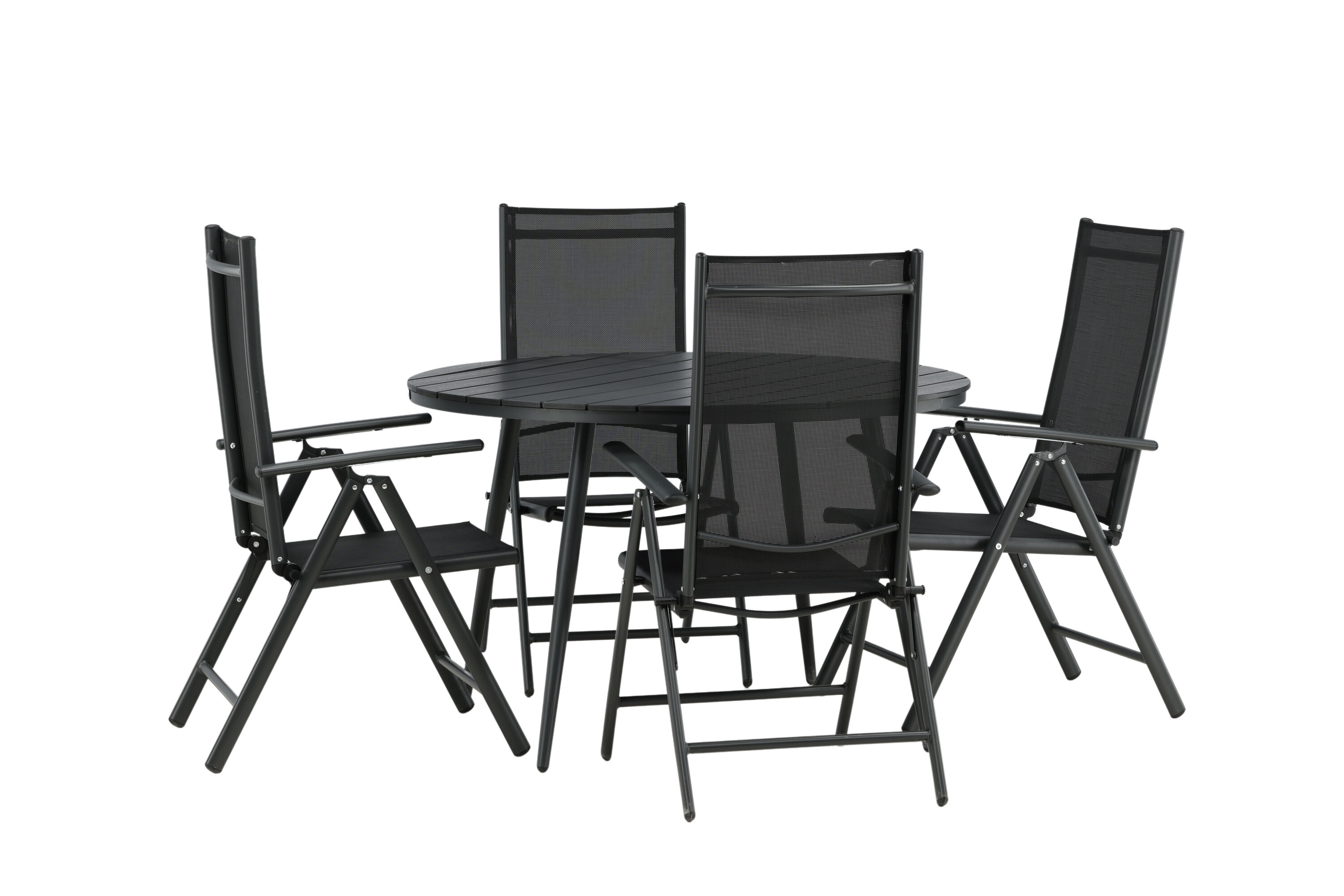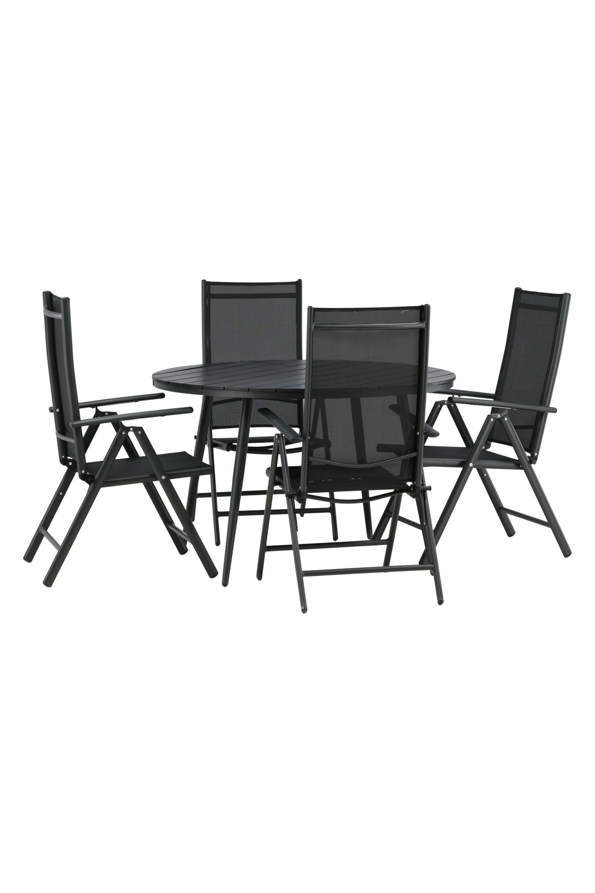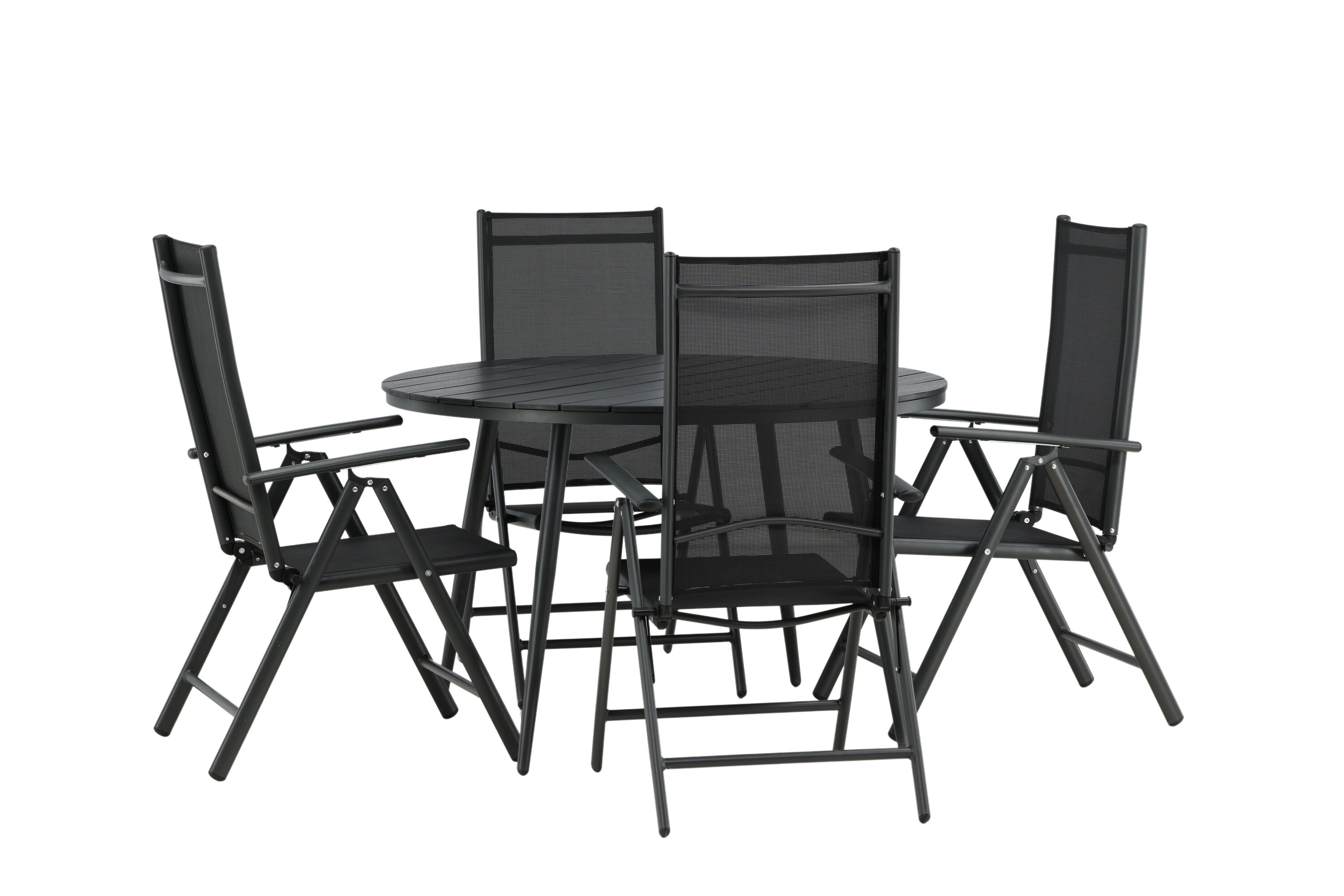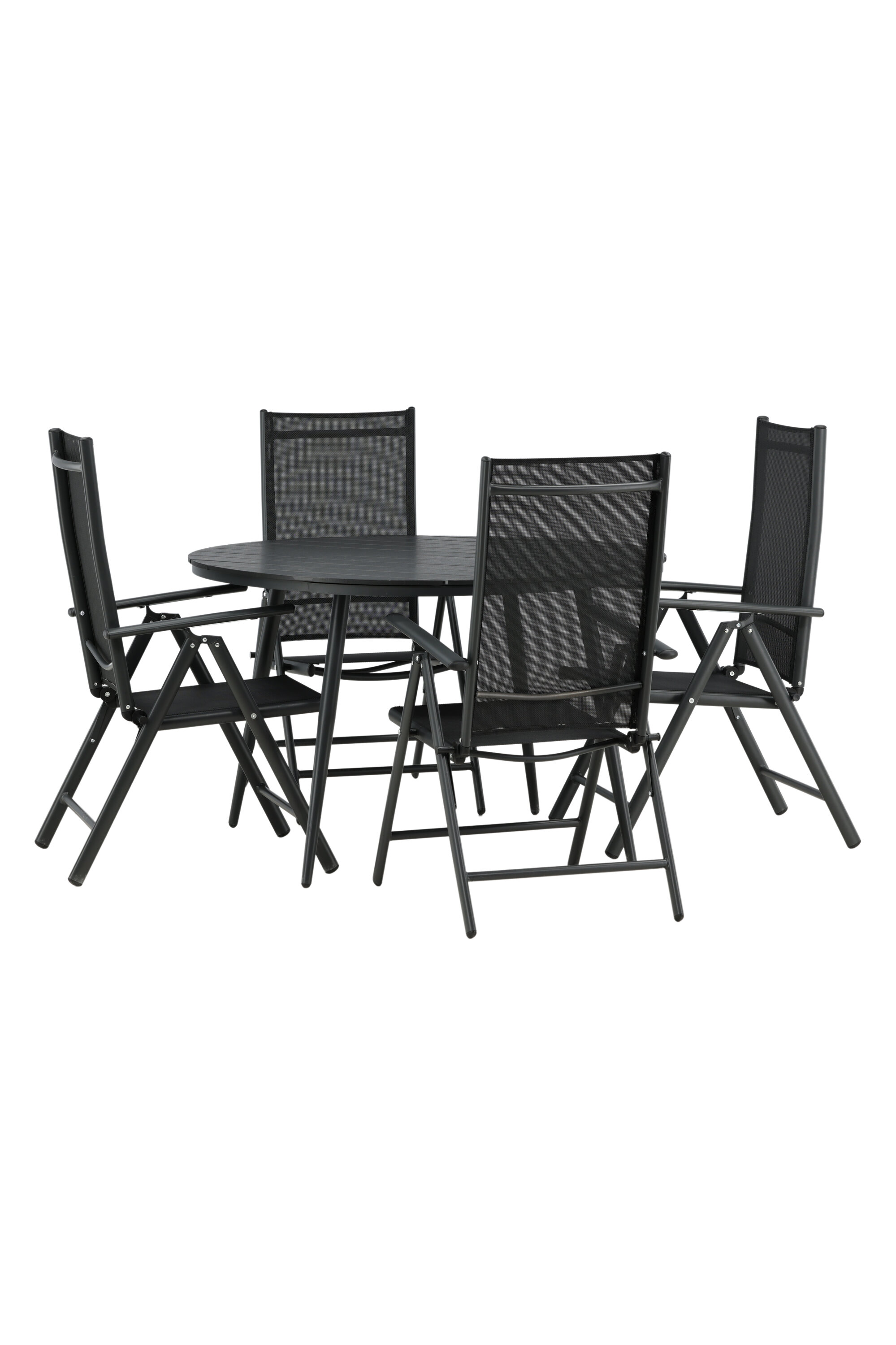 Moodsa disainiga ühtlane musta toidugrupp ei lähe kunagi ajast maha – lihtne sobitada ja oma disainilt ajatu! Laual Break on Aintwoodist ümar lauaplaat ja klassikaline mustast alumiiniumist veermik. Siin täiuslik kombinatsioon sama sarja kokkupandavate söögitoolidega. Mustast tekstiilist toolide seljatugesid saab reguleerida, et tagada optimaalne mugavus ja lõõgastus söögilaua ümber. Looge oma siseõue täiuslik keskpunkt!
