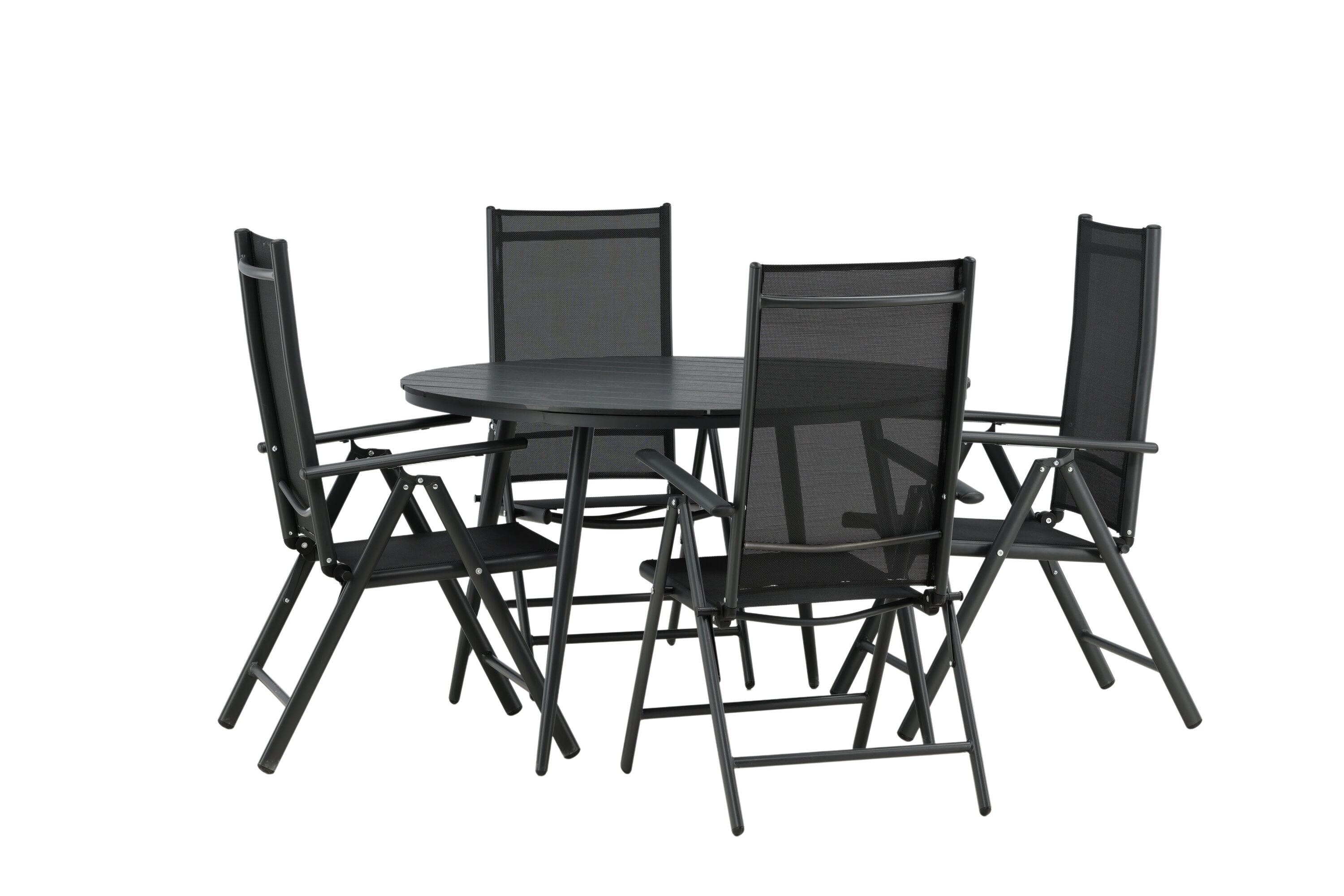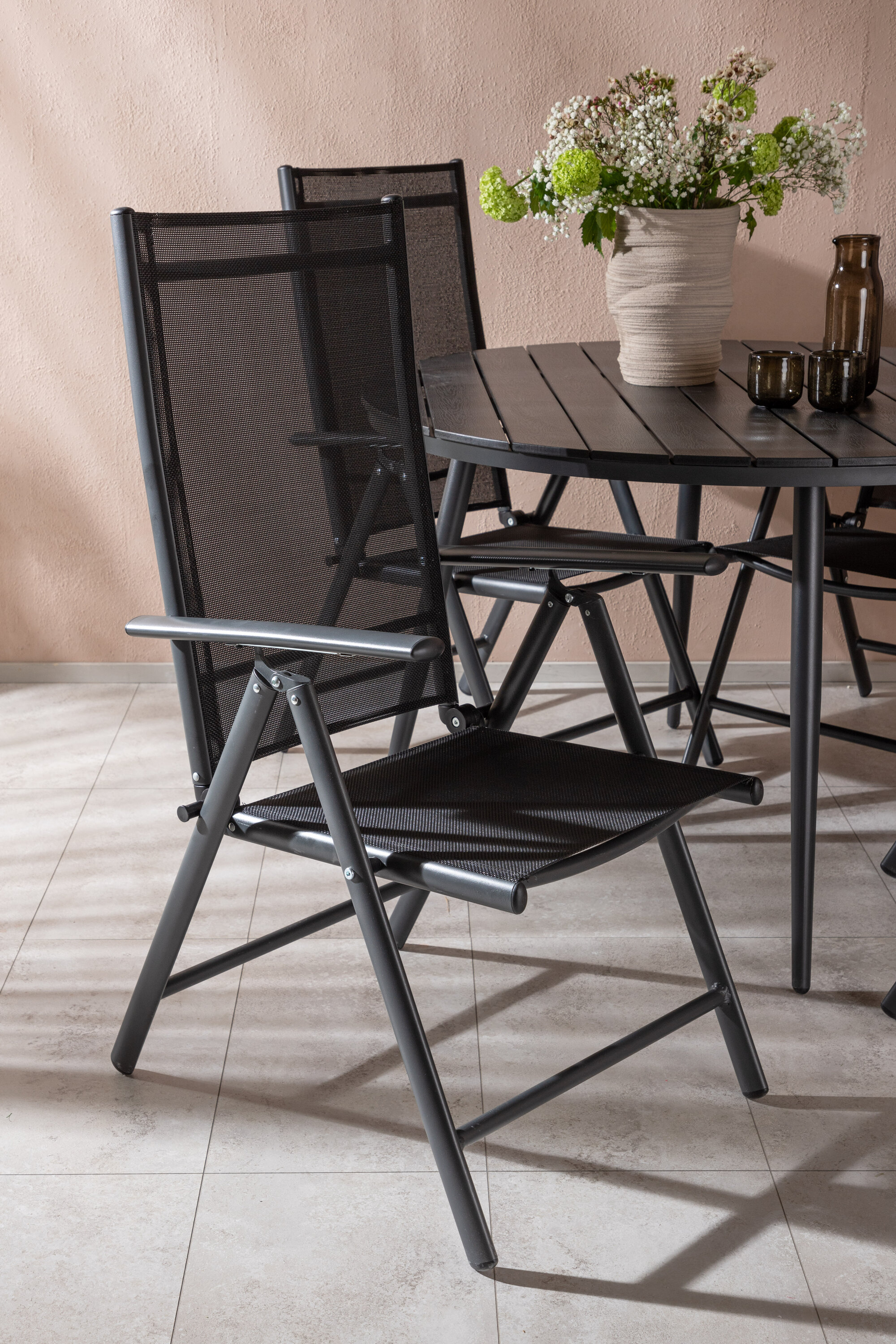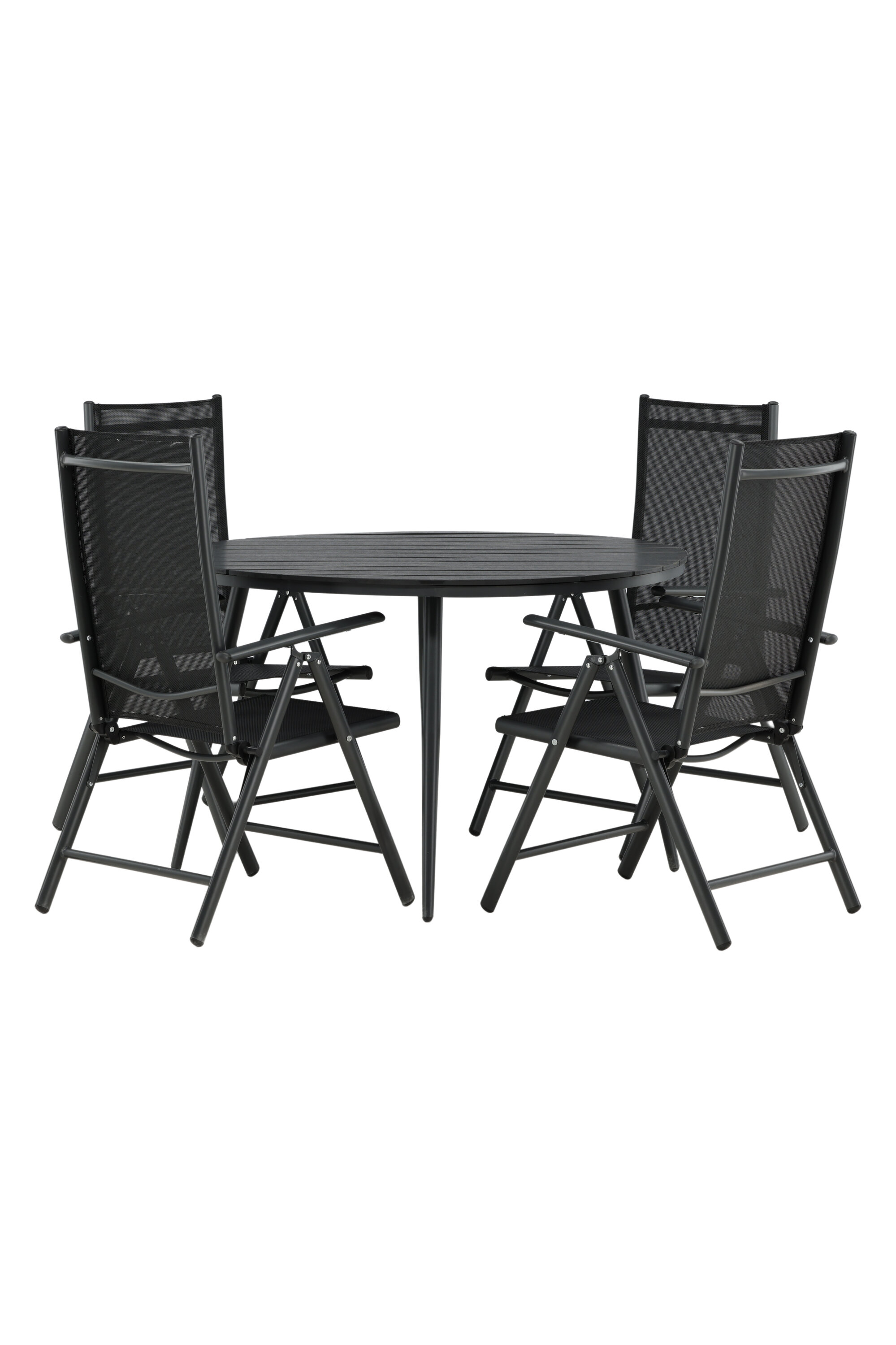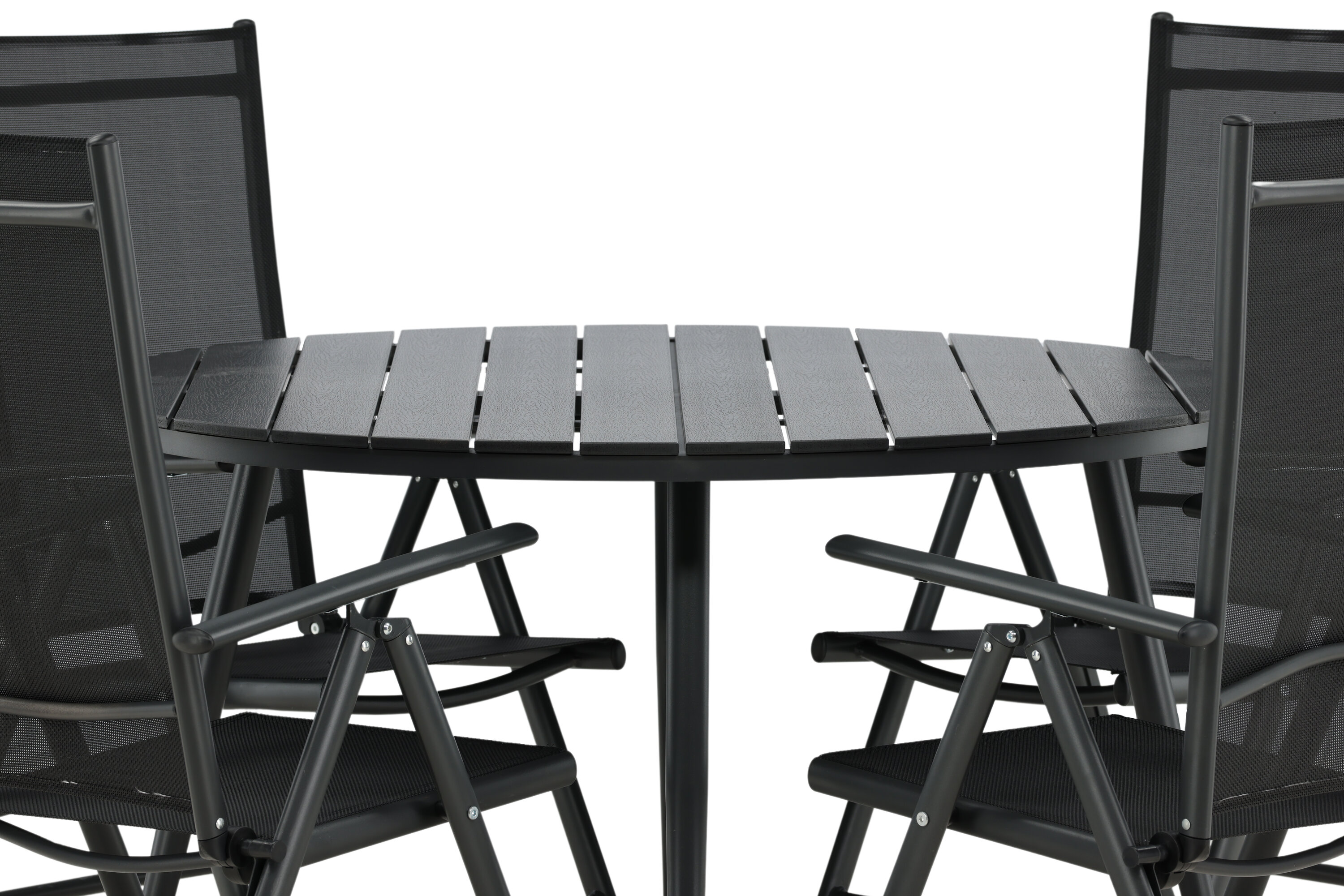 Moodsa disainiga ühtlane musta toidugrupp ei lähe kunagi ajast maha – lihtne sobitada ja oma disainilt ajatu! Laual Break on Aintwoodist ümar lauaplaat ja klassikaline mustast alumiiniumist veermik. Siin täiuslik kombinatsioon sama sarja kokkupandavate söögitoolidega. Mustast tekstiilist toolide seljatugesid saab reguleerida, et tagada optimaalne mugavus ja lõõgastus söögilaua ümber. Looge oma siseõue täiuslik keskpunkt!