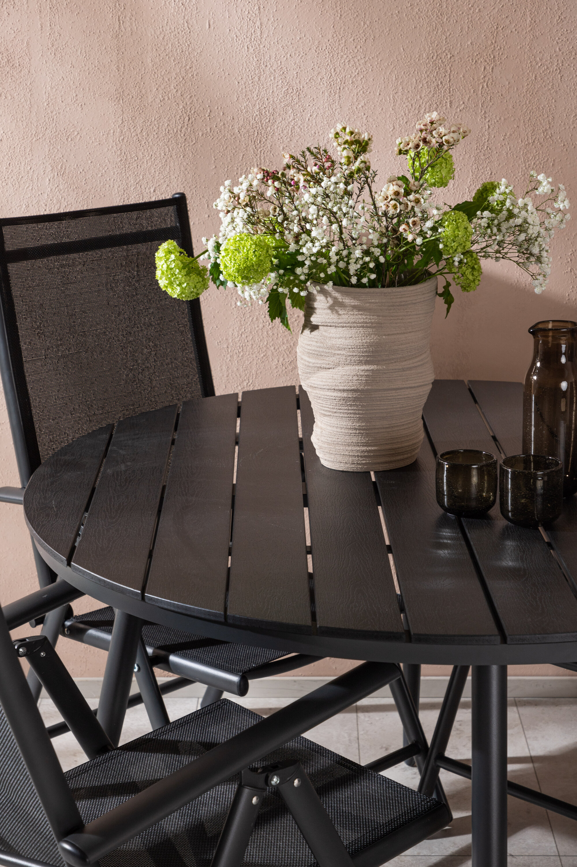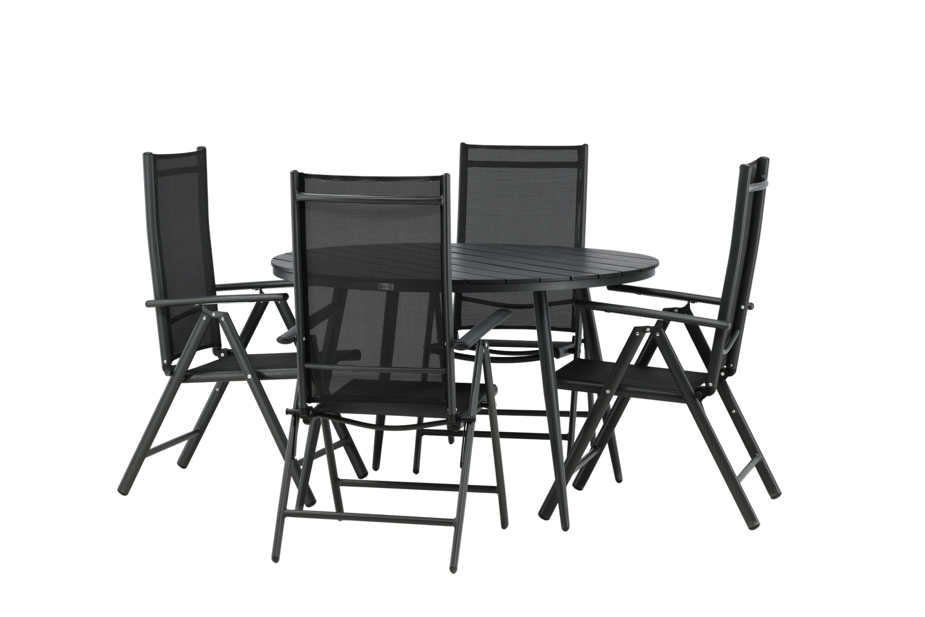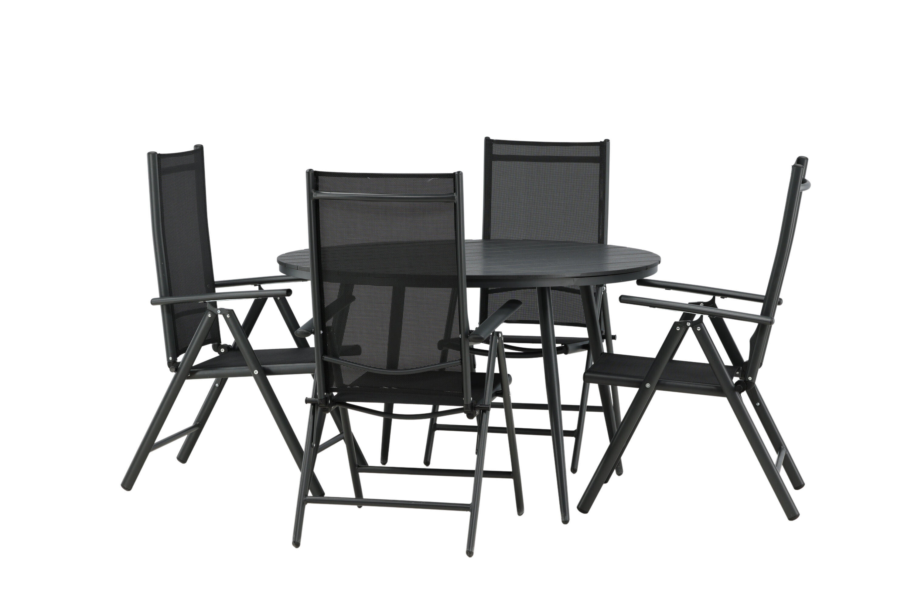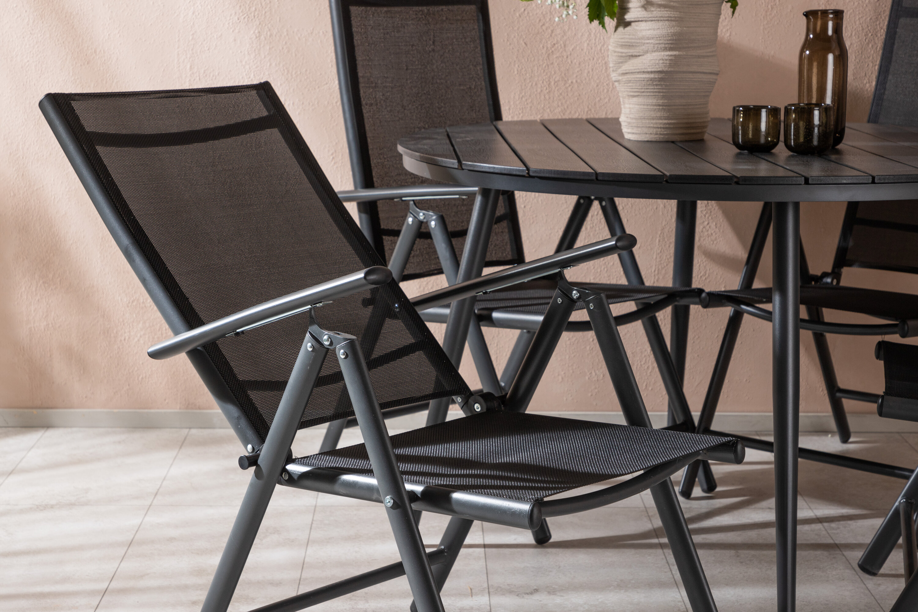 Moodsa disainiga ühtlane musta toidugrupp ei lähe kunagi ajast maha – lihtne sobitada ja oma disainilt ajatu! Laual Break on Aintwoodist ümar lauaplaat ja klassikaline mustast alumiiniumist veermik. Siin täiuslik kombinatsioon sama sarja kokkupandavate söögitoolidega. Mustast tekstiilist toolide seljatugesid saab reguleerida, et tagada optimaalne mugavus ja lõõgastus söögilaua ümber. Looge oma siseõue täiuslik keskpunkt!
