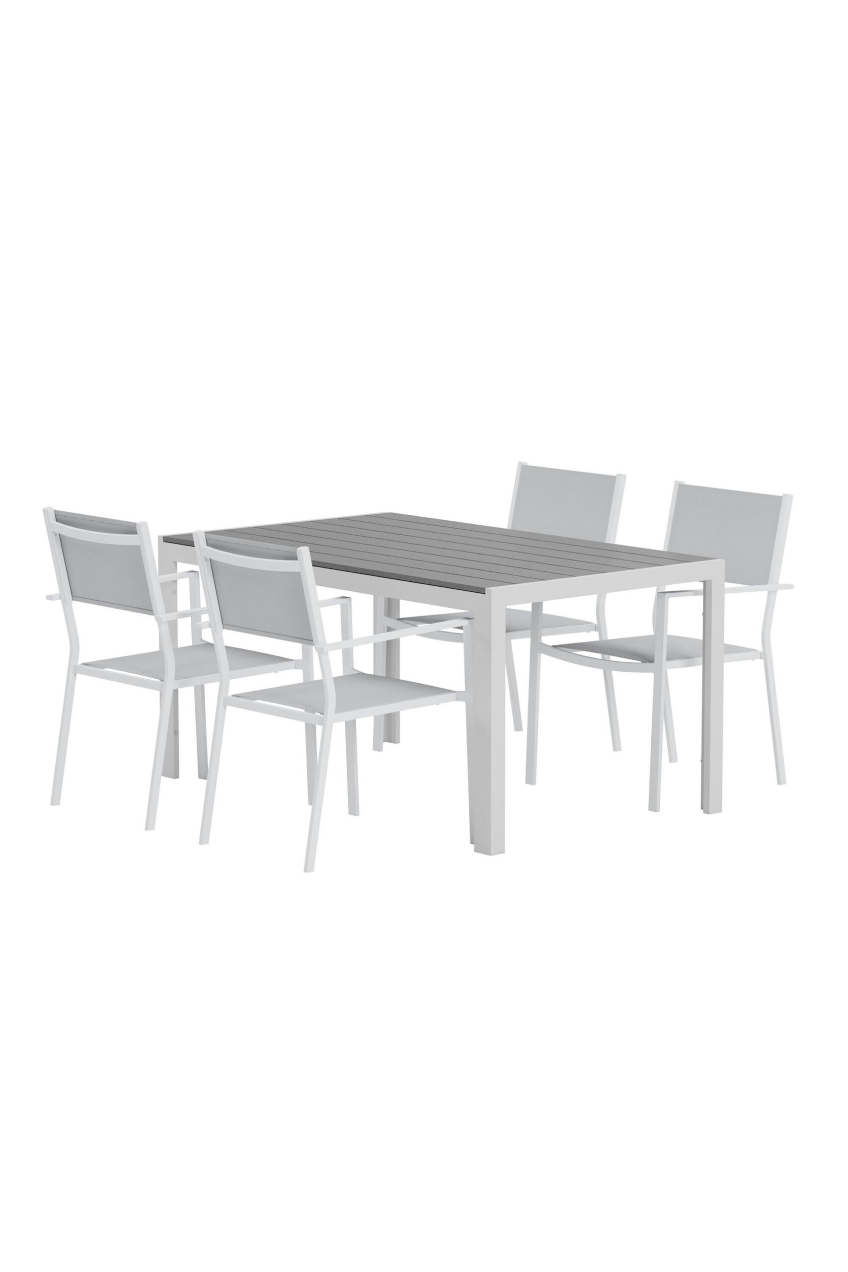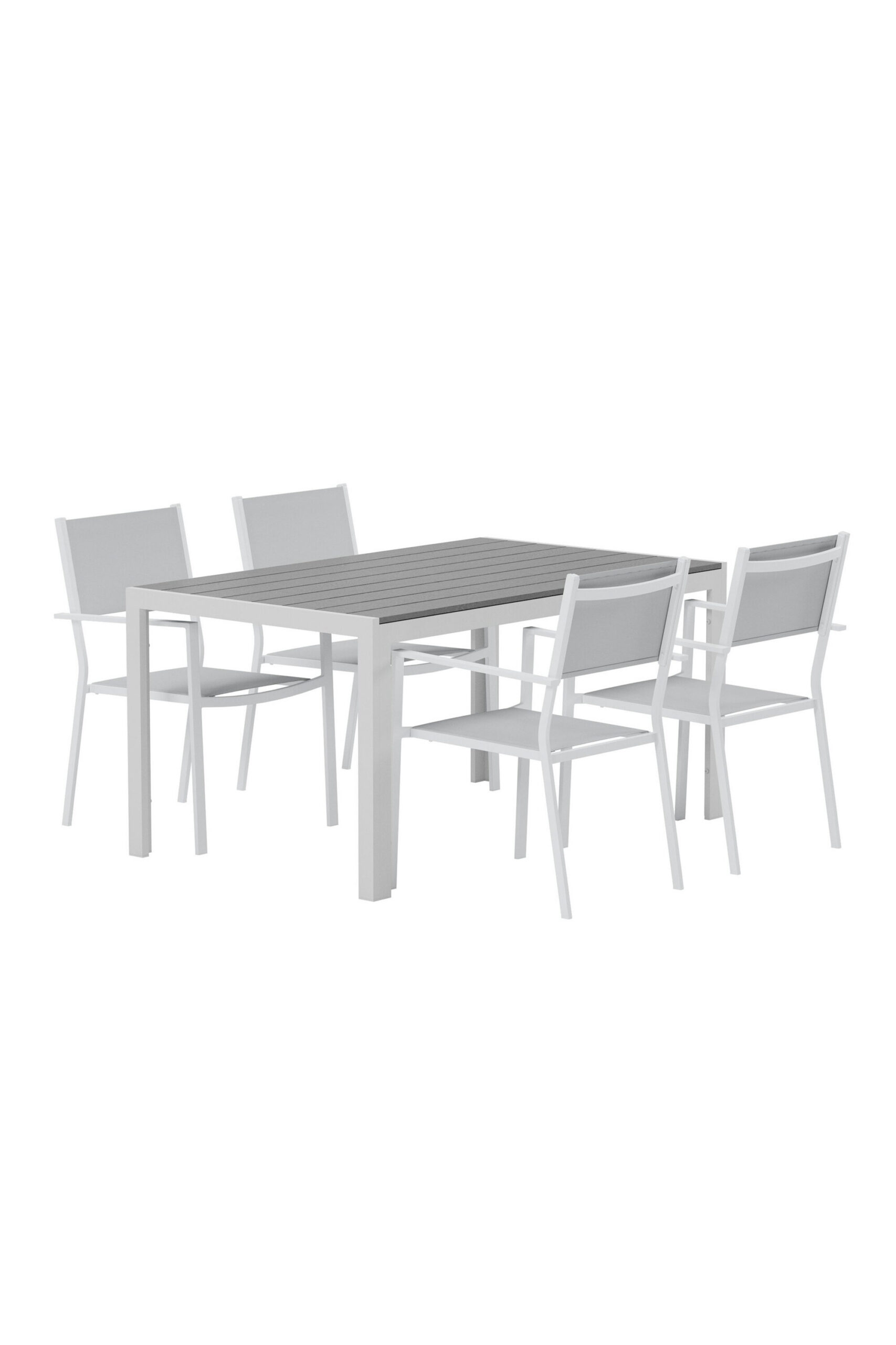 Break söögilaud on ristkülikukujuline õhuline laud halli polüpuidust plaadi ja valgete alumiiniumjalgadega. Selle läbimõeldud disain ja mahedad värvid loovad sooja ja moodsa tunde, mis sobivad ideaalselt nii aedadesse kui ka päikesetubadesse.