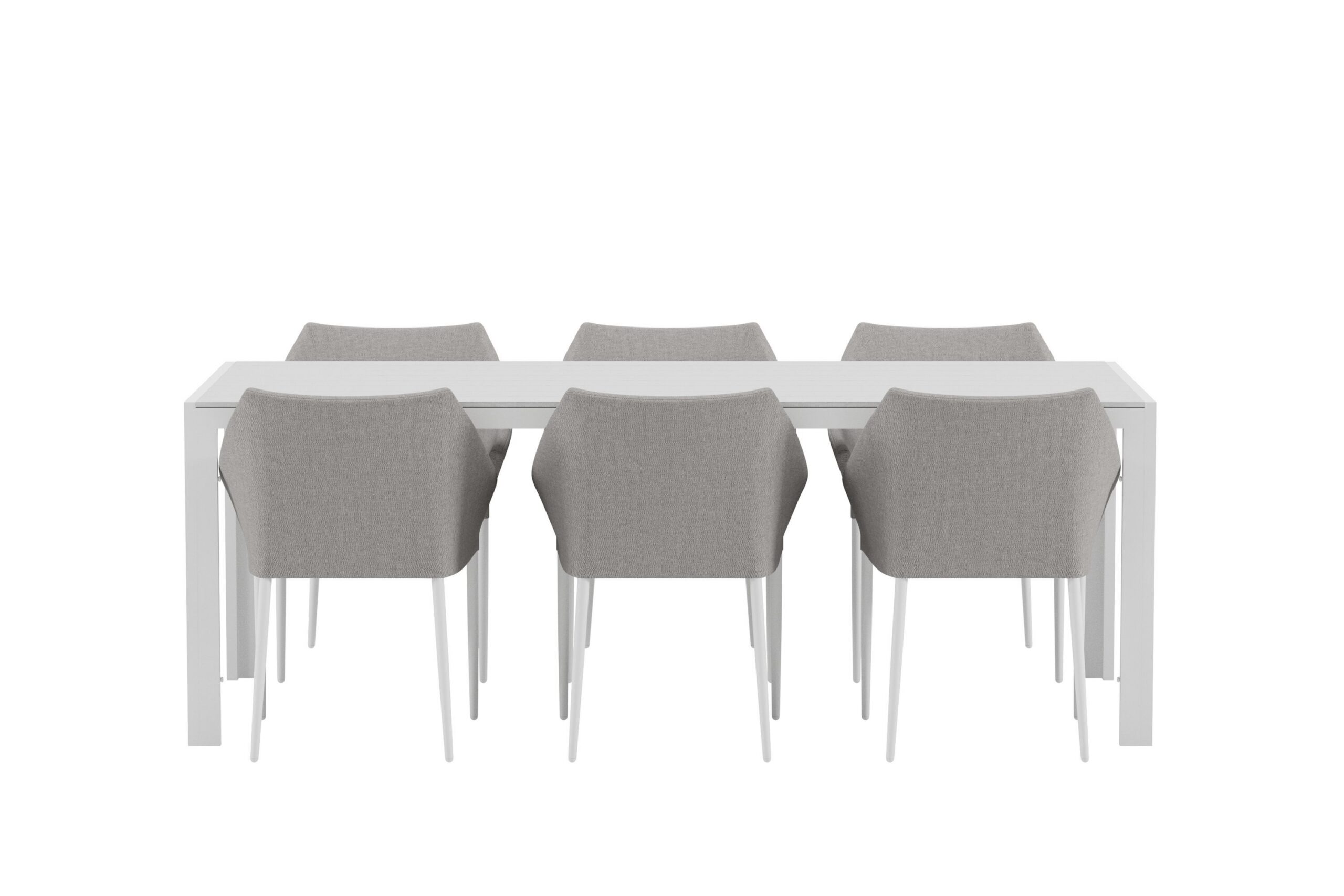 Looge moodne ja kutsuv välikeskkond selle stiilse söögikomplektiga, mis ühendab Break laua kuue Spoga tugitooliga. Spoga tugitool on mugav ja atraktiivne tool, millel on julge, täielikult polsterdatud halli polüesterkangast disain ja jalad on valge pulbervärvitud metallist. Integreeritud käetoed ja suur istme sügavus pakuvad meeldivat istumiskogemust – ideaalne pikkadeks lõõgastavateks einestamisteks terrassil või päikesetoas.