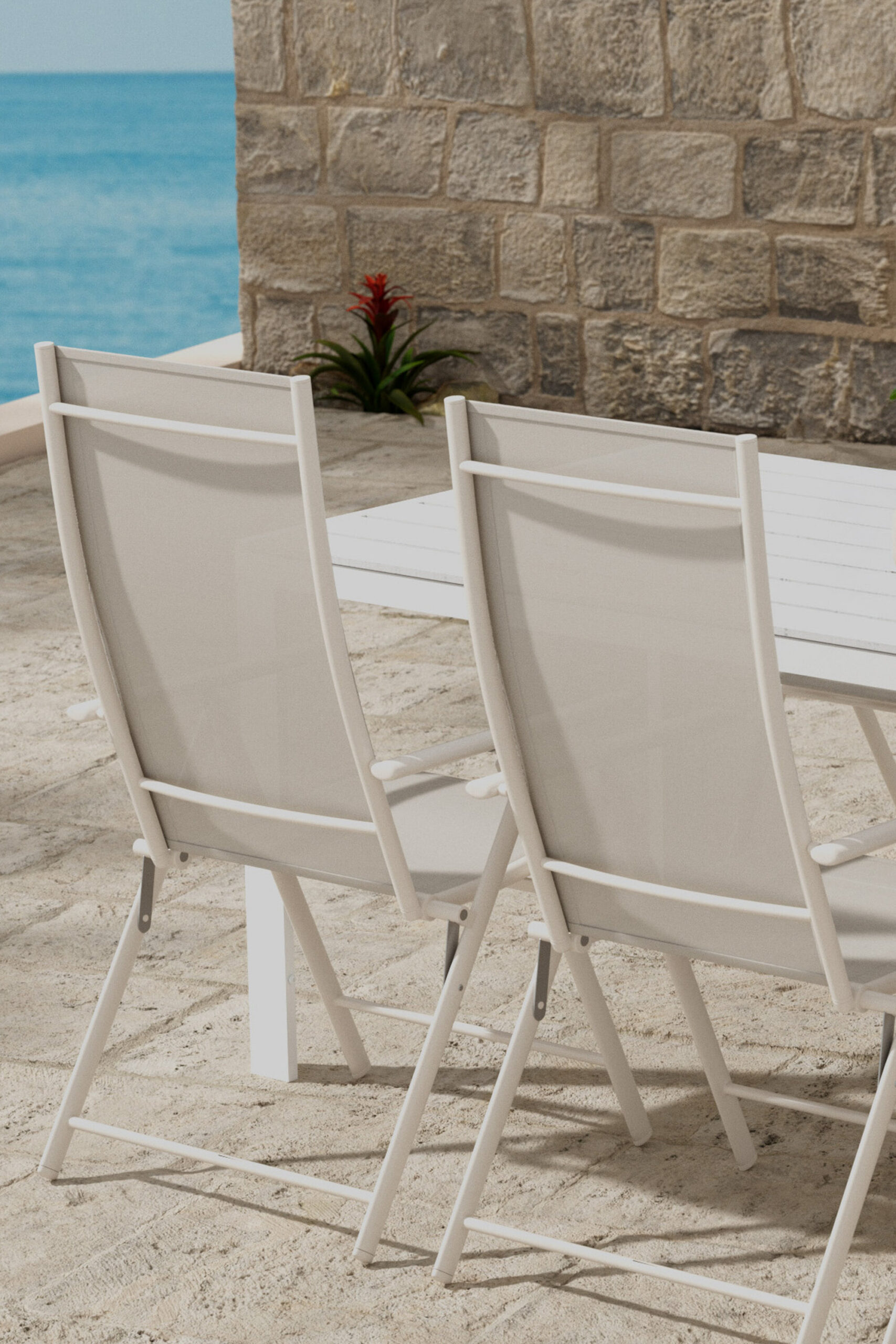 Söögilaud Break on puhta ja kaasaegse disainiga avara valge lauaplaadiga, mis sobib suurepäraselt nii igapäevaseks õhtusöögiks kui ka suuremateks koosviibimisteks. Toolid ja laud moodustavad koos stiilse ja praktilise söögikomplekti, mis sobib igale siseõuele – ideaalne kõigiks suvehetkedeks.