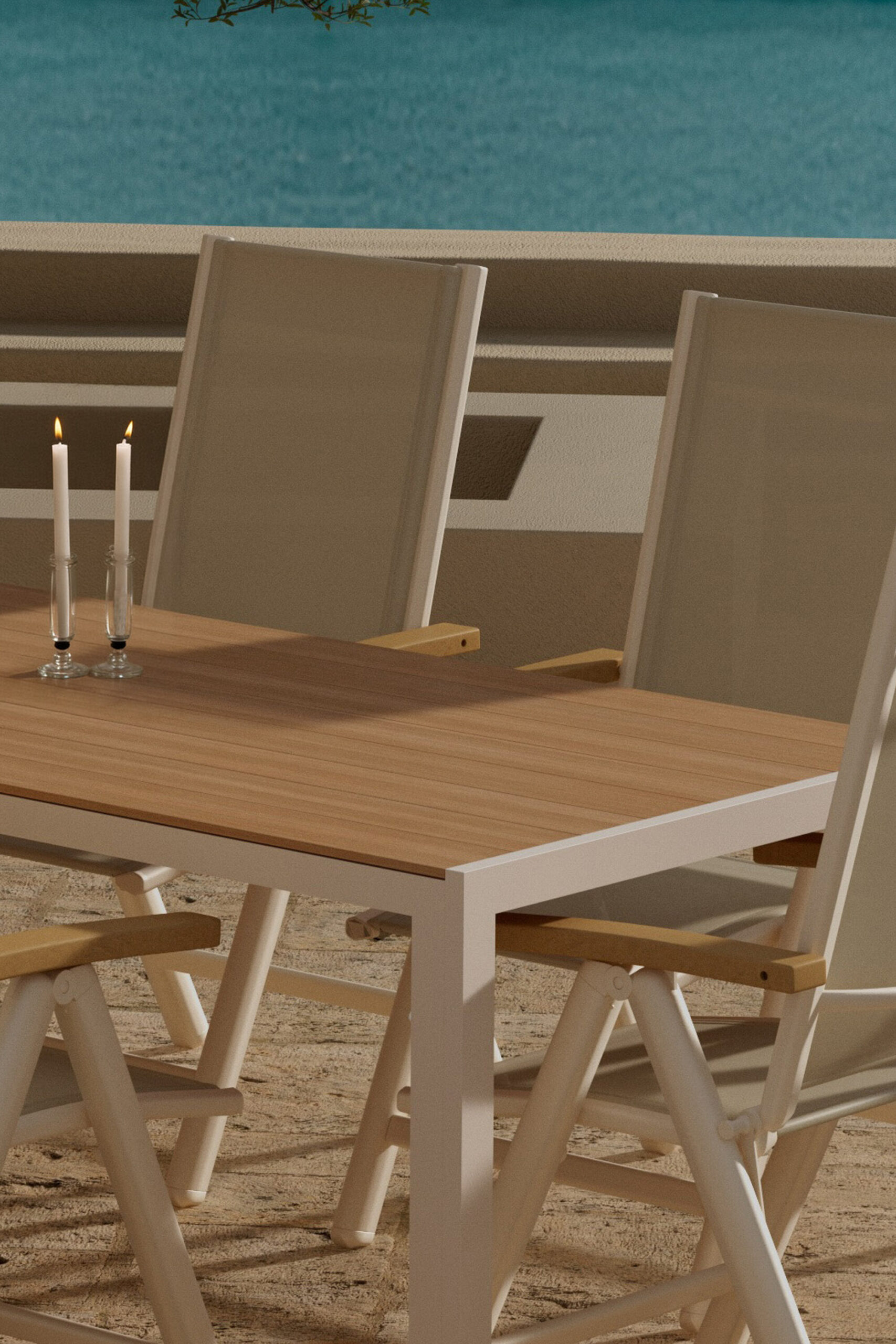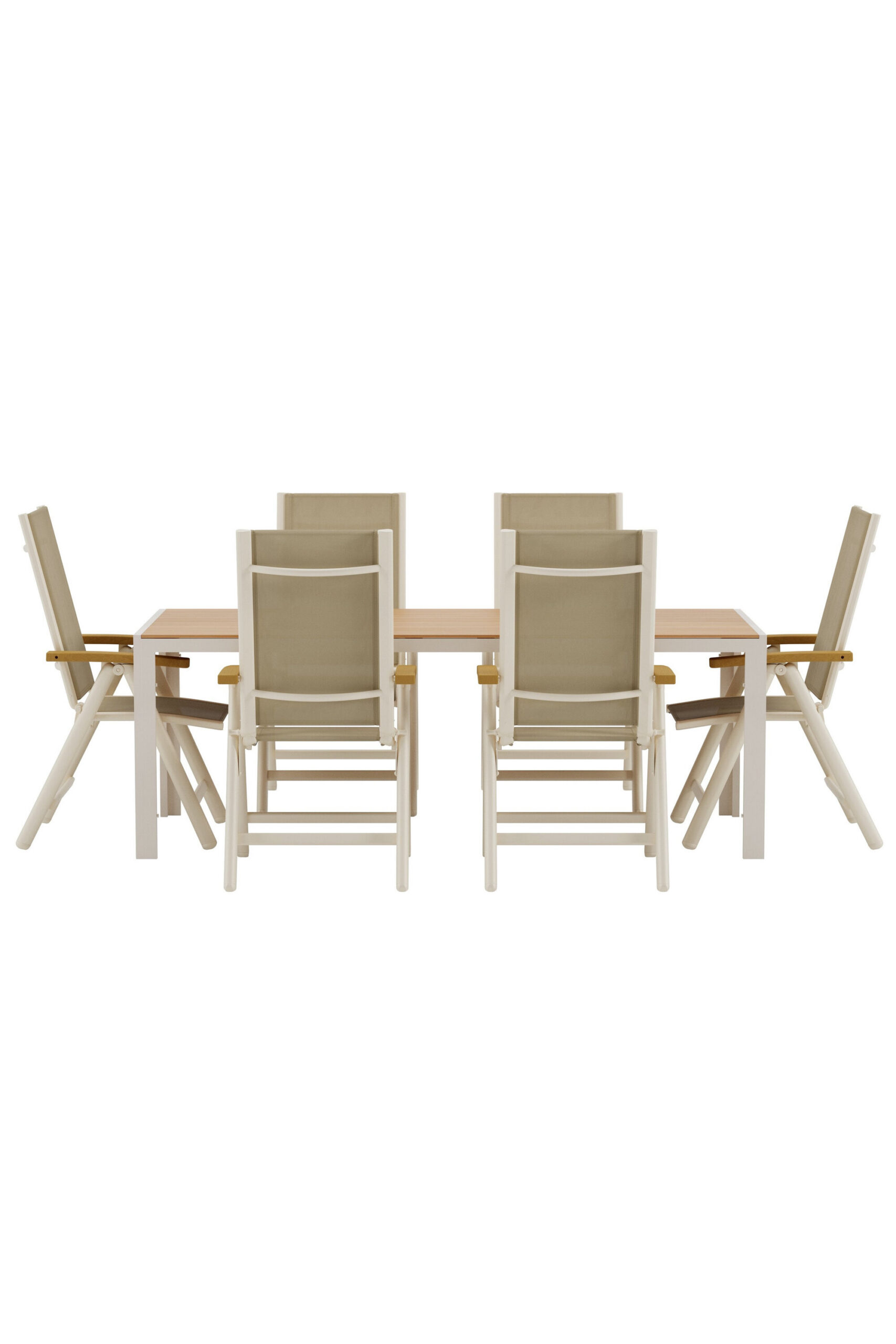 Kogege mugavat ja paindlikku välikeskkonda Panama lamamistoolidega koos elegantse Break lauaga. Panama lamamistool pakub viit reguleeritavat asendit, mistõttu on lihtne vahetada püstise istme ja lõõgastava lamamise vahel. Kerge alumiiniumraam, tiikpuust detailid ja vastupidavast tekstiilist beež iste loovad kaasaegse ja mugava tooli, mis sobib igasse väliruumi. Break laud on avar ja kaasaegne beežist alumiiniumist õuelaud elegantse tiikpuu välimusega lauaplaadiga. Rõõmsate mõõtmetega 205×90 cm on ruumi nii igapäevasteks õhtusöökideks kui ka suuremateks koosviibimisteks. Vastupidav ja stiilne keskosa teie välisöögitoa jaoks. Break ja Panama moodustavad koos šiki, funktsionaalse ja kutsuva söögikomplekti igaks suvehetkeks.