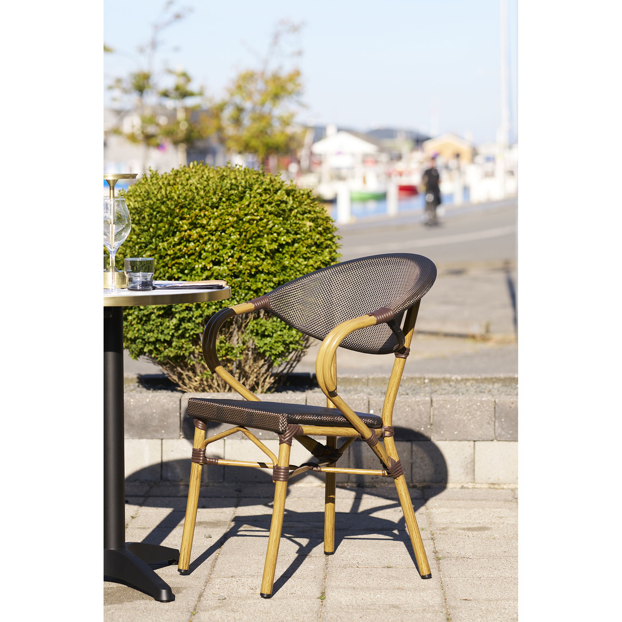 Calda söögitool, alumiinium, tekstiil, tumepruun, bambuse imitatsiooniga raam