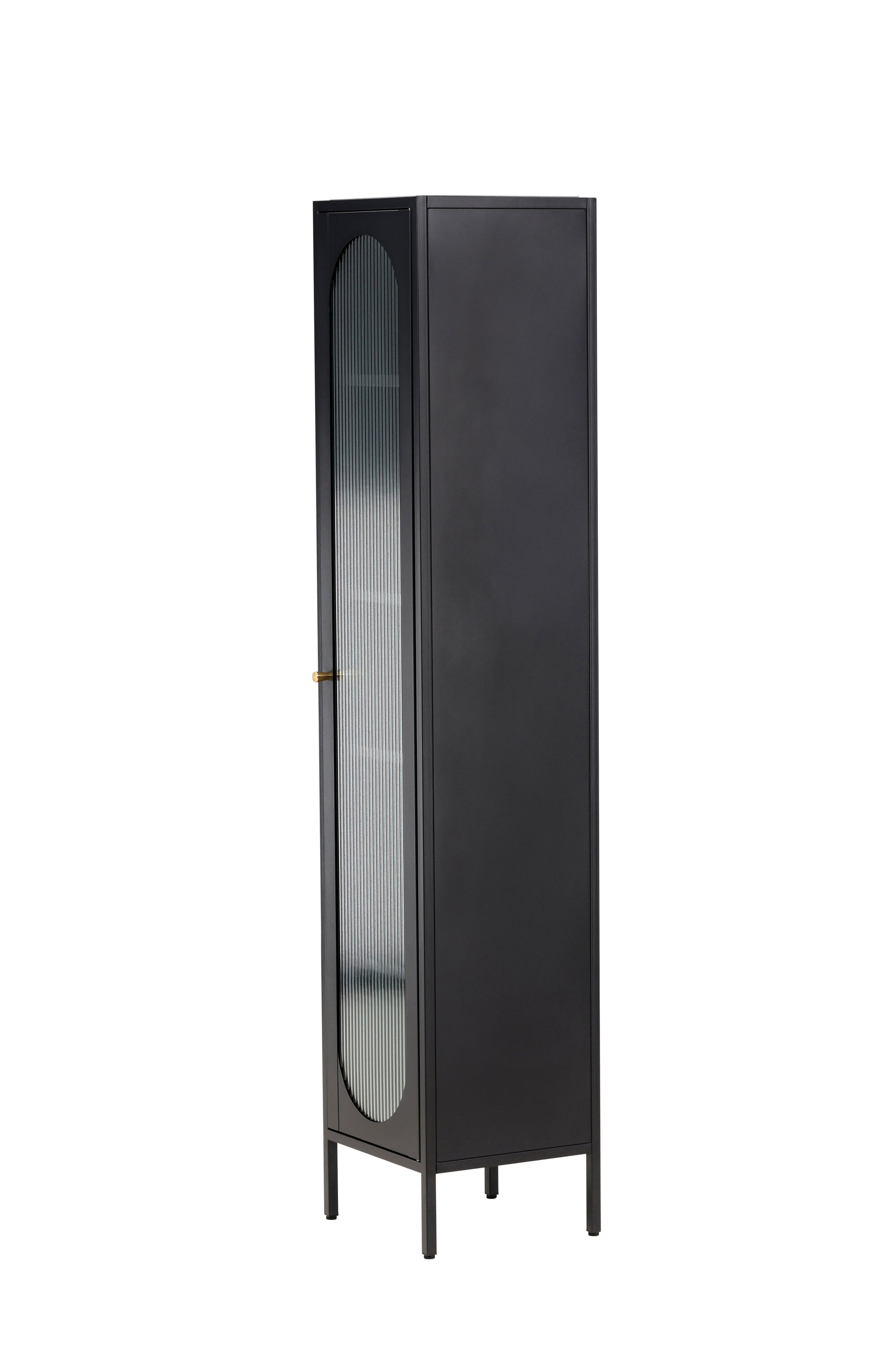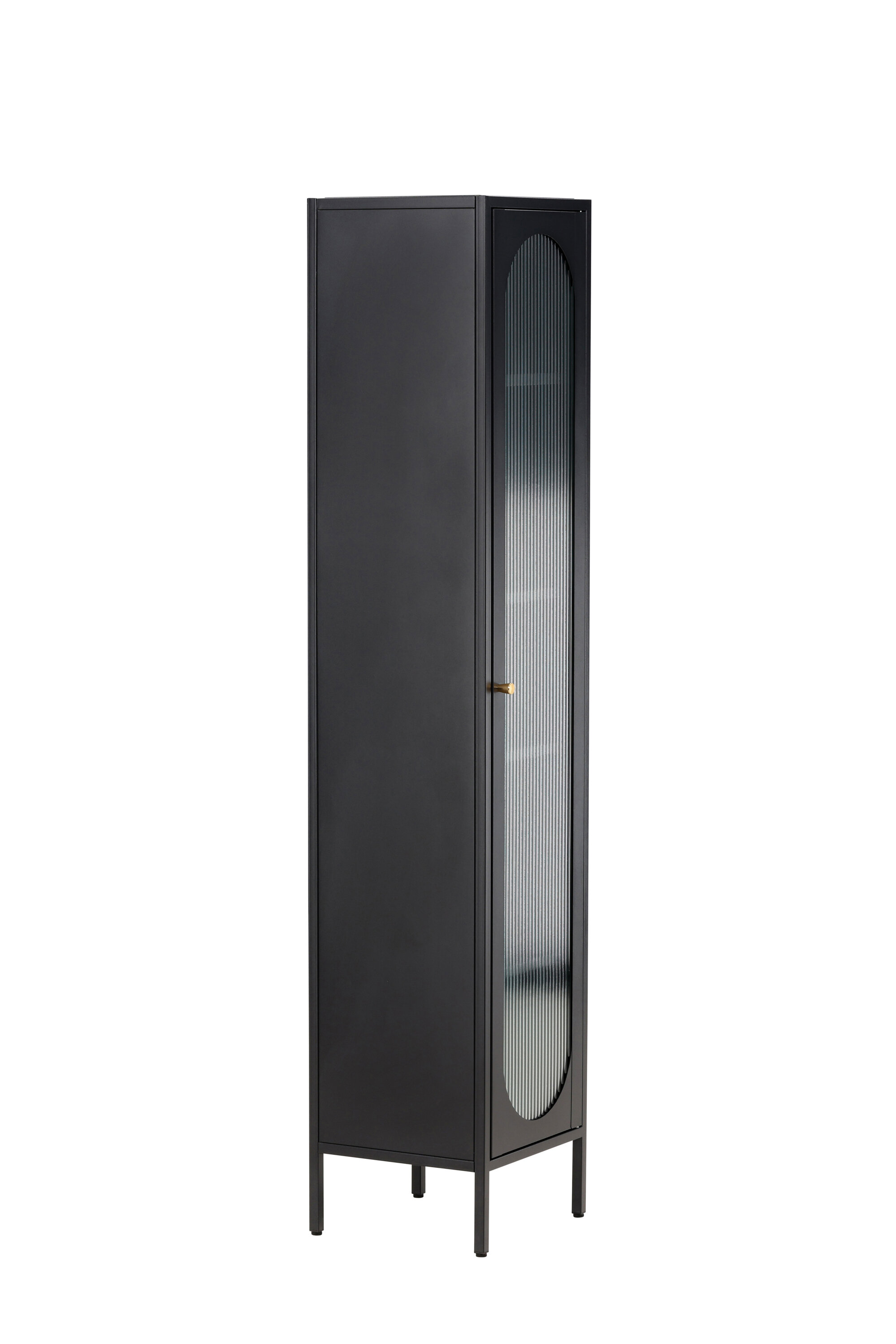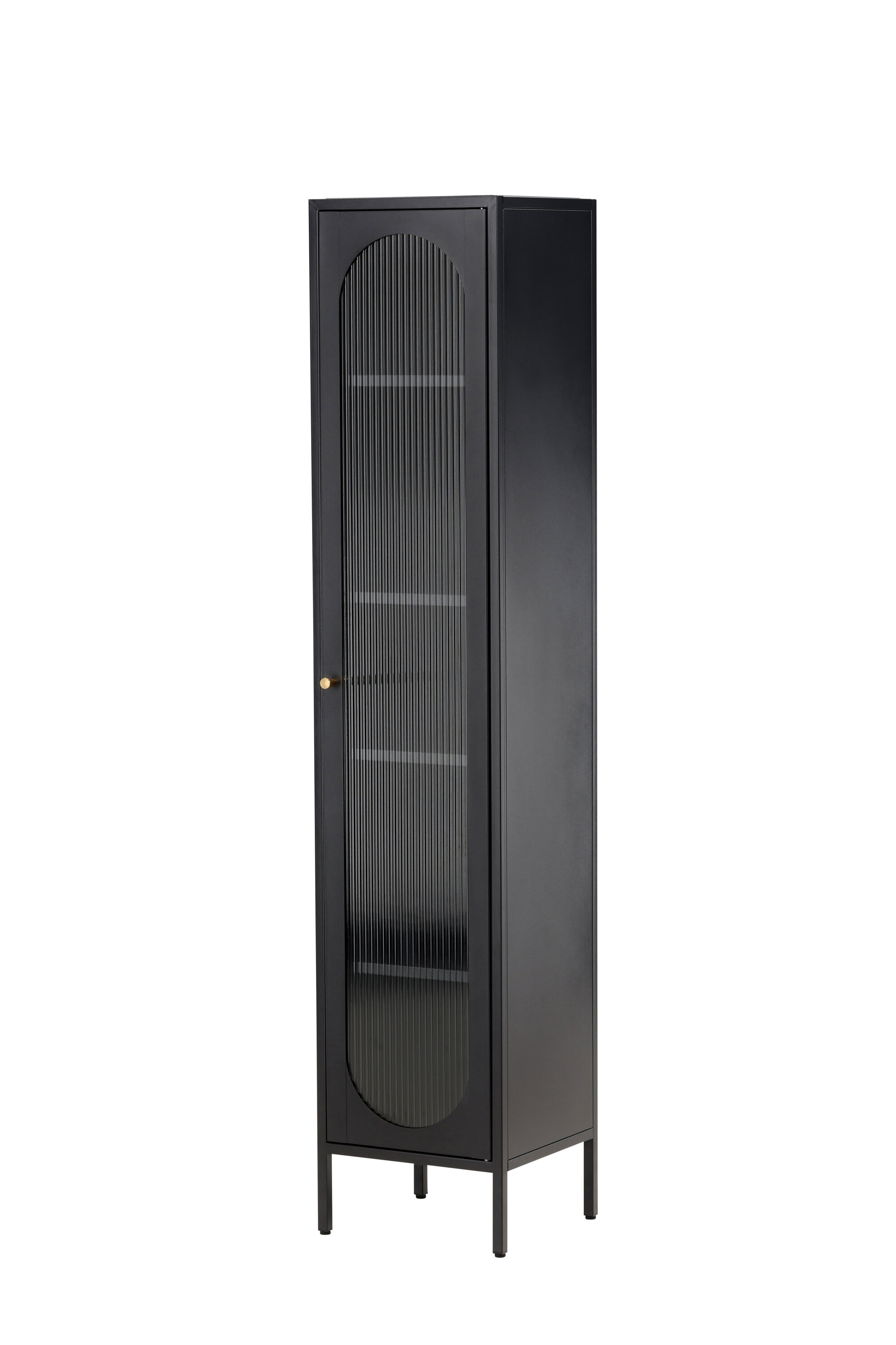Kapp on varustatud nelja mahuka riiuliga, mis pakuvad teile organiseerimiseks piisavalt ruumi. Kapi uks on valmistatud lainelisest klaasist, mis lisab tükile peent tekstuuri ja ainulaadse visuaalse mõõtme.
