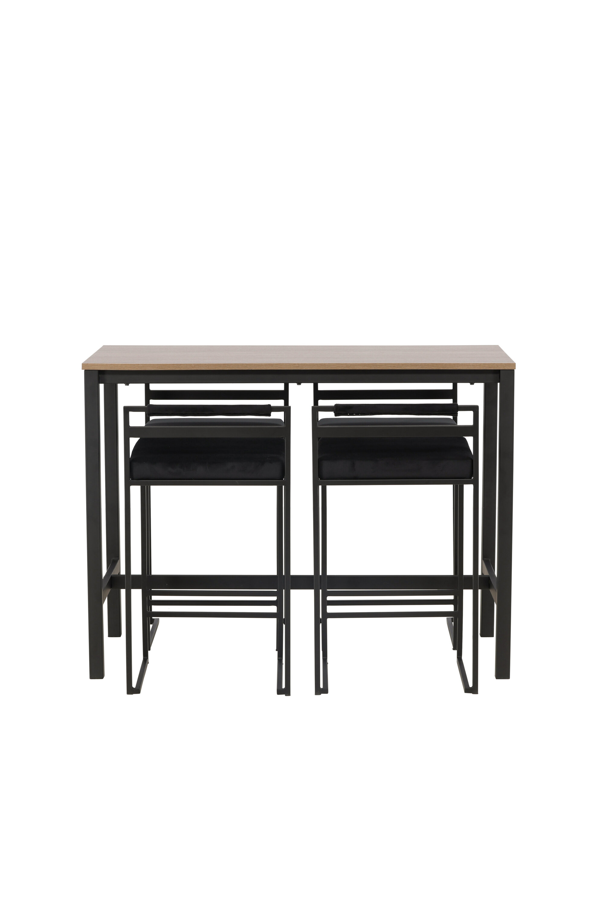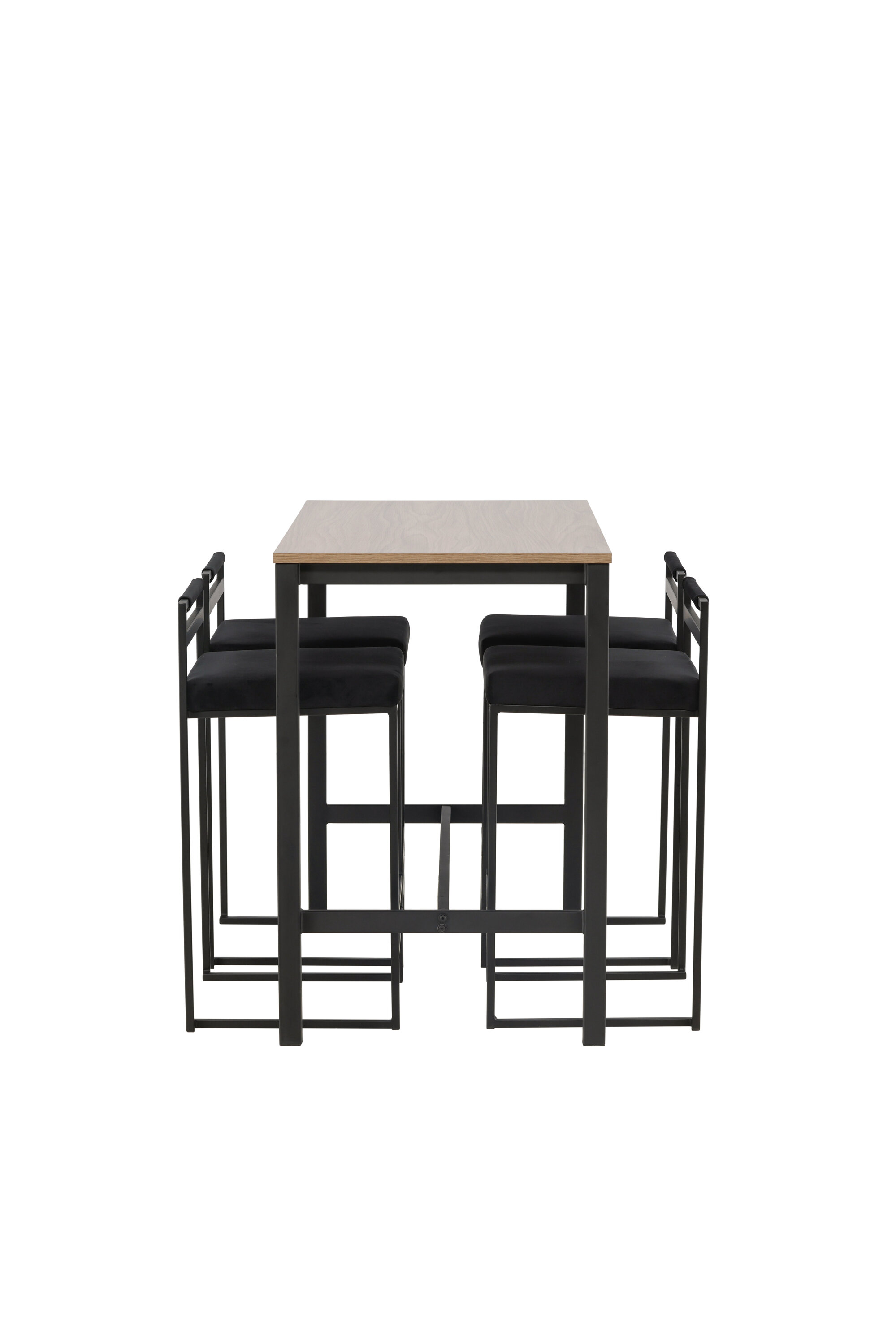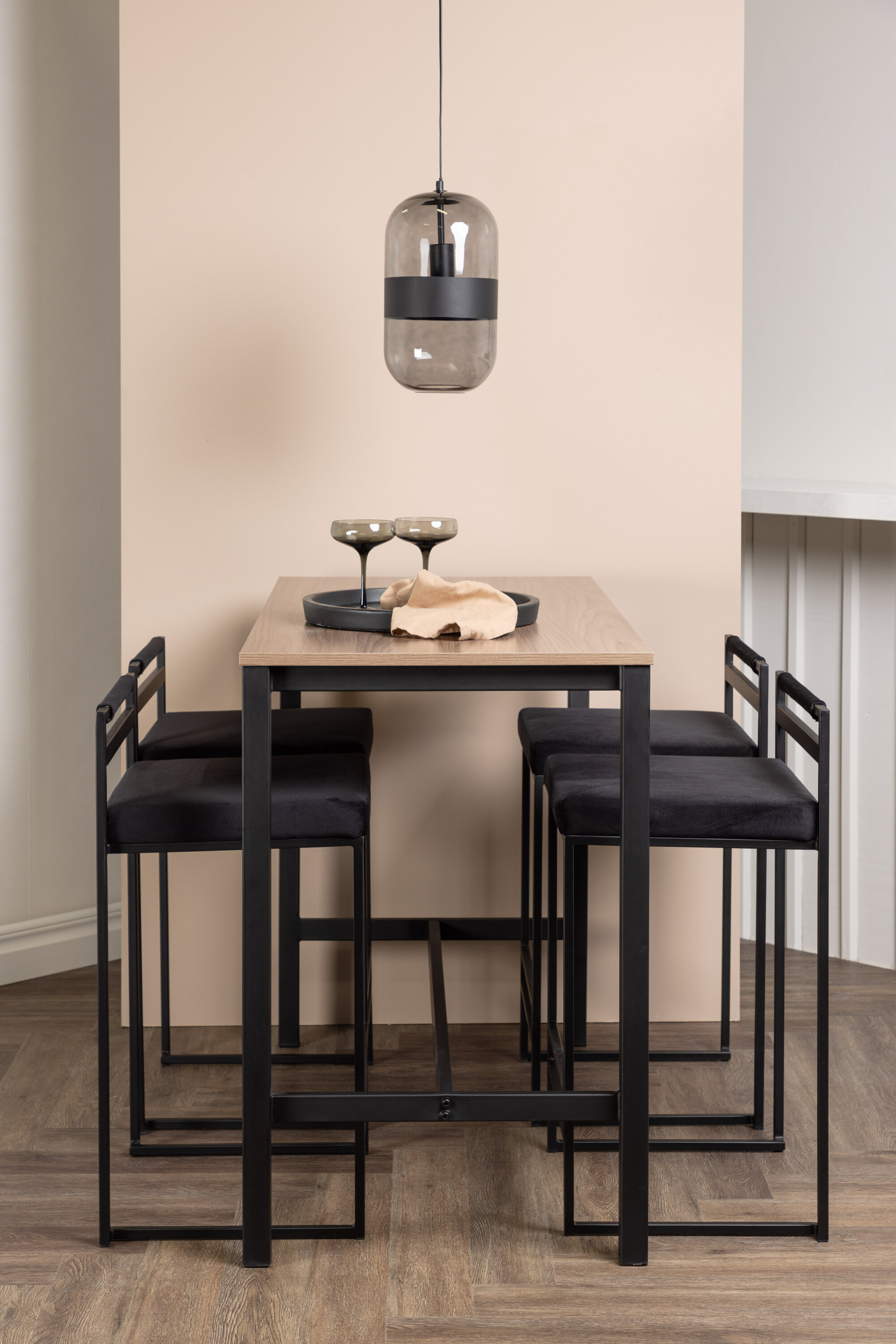Ideaalne kombinatsioon minimalistlikust ja tööstuslikust disainist! Camdeni baarilaual on põhjamaised sirged kujundid, ristkülikukujuline, pähklivärvi MDF-ist lauaplaat ja sirged mustast terasest lauajalad koos jalatoe raamiga. Siin sobivas kombinatsioonis Opelika sarja mustade baaripukkidega. Iste on pehme polsterdatud ja elegantse mustast sametkangast polsterdatud ning jalakonstruktsioon on stiilselt minimalistlik mustast terasest, millel on alumine seljatugi ja integreeritud jalatugi lisamugavuse tagamiseks. Vii interjöör uutesse kõrgustesse! Laua mõõdud: 120x60cm.