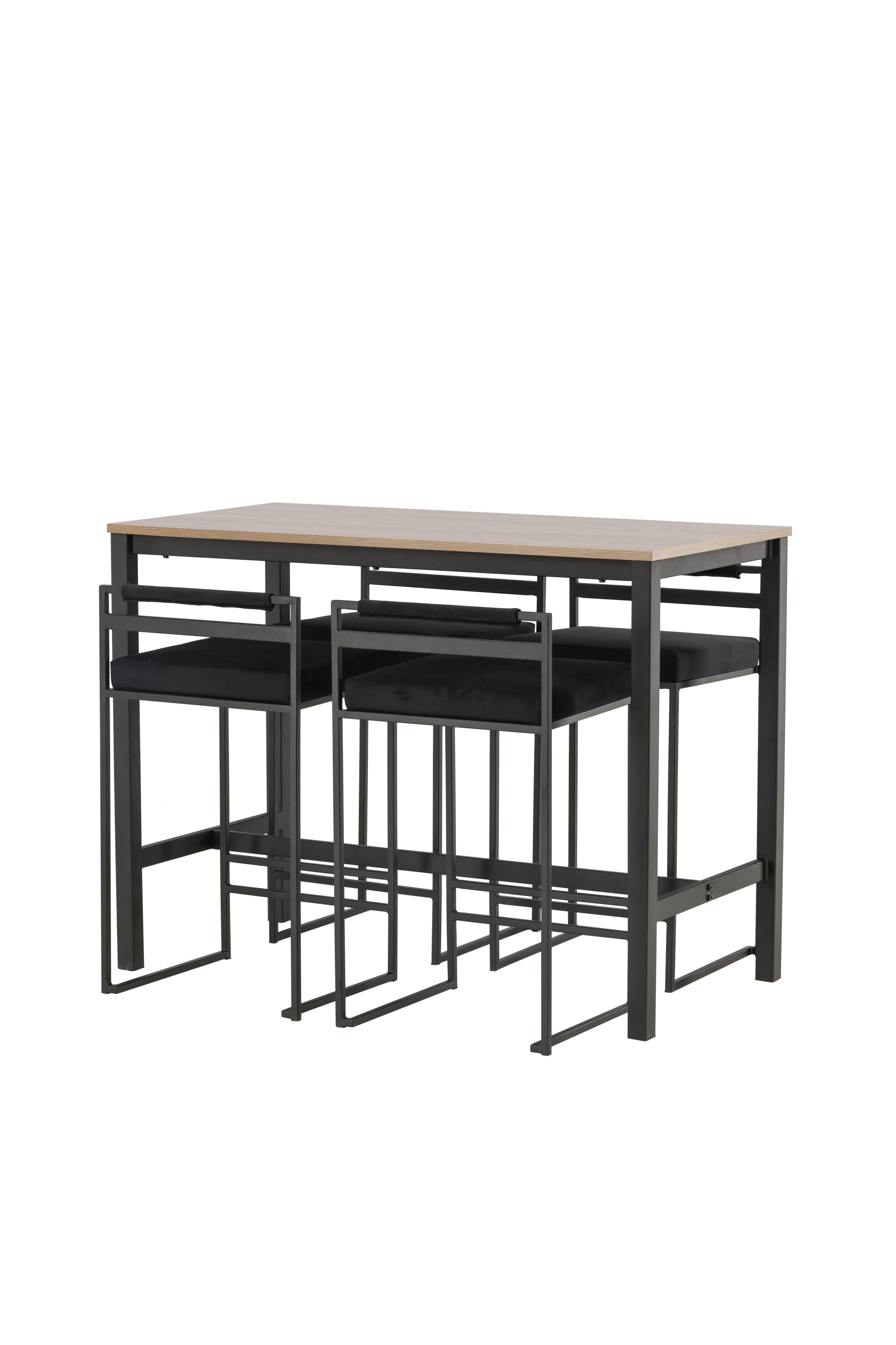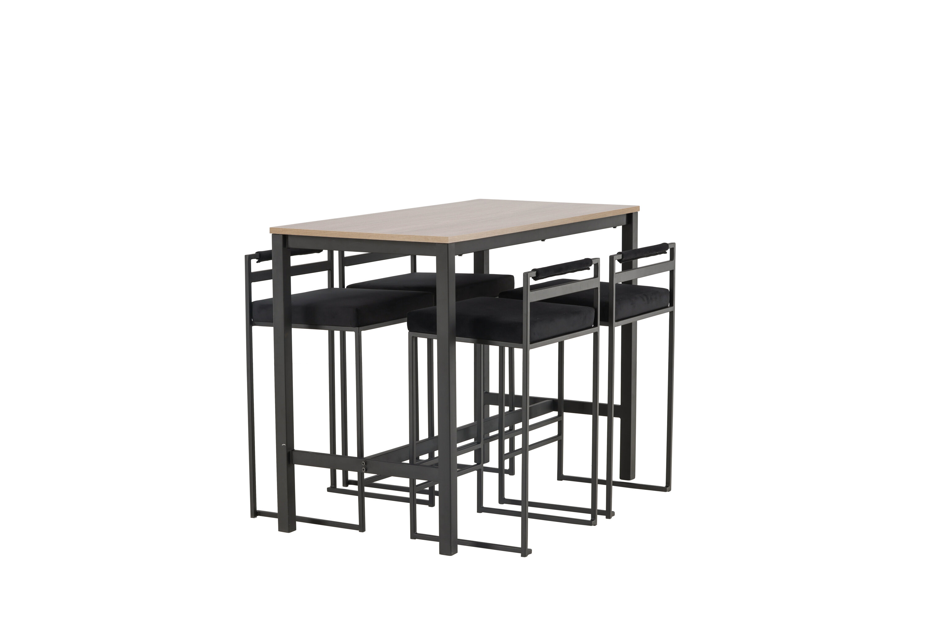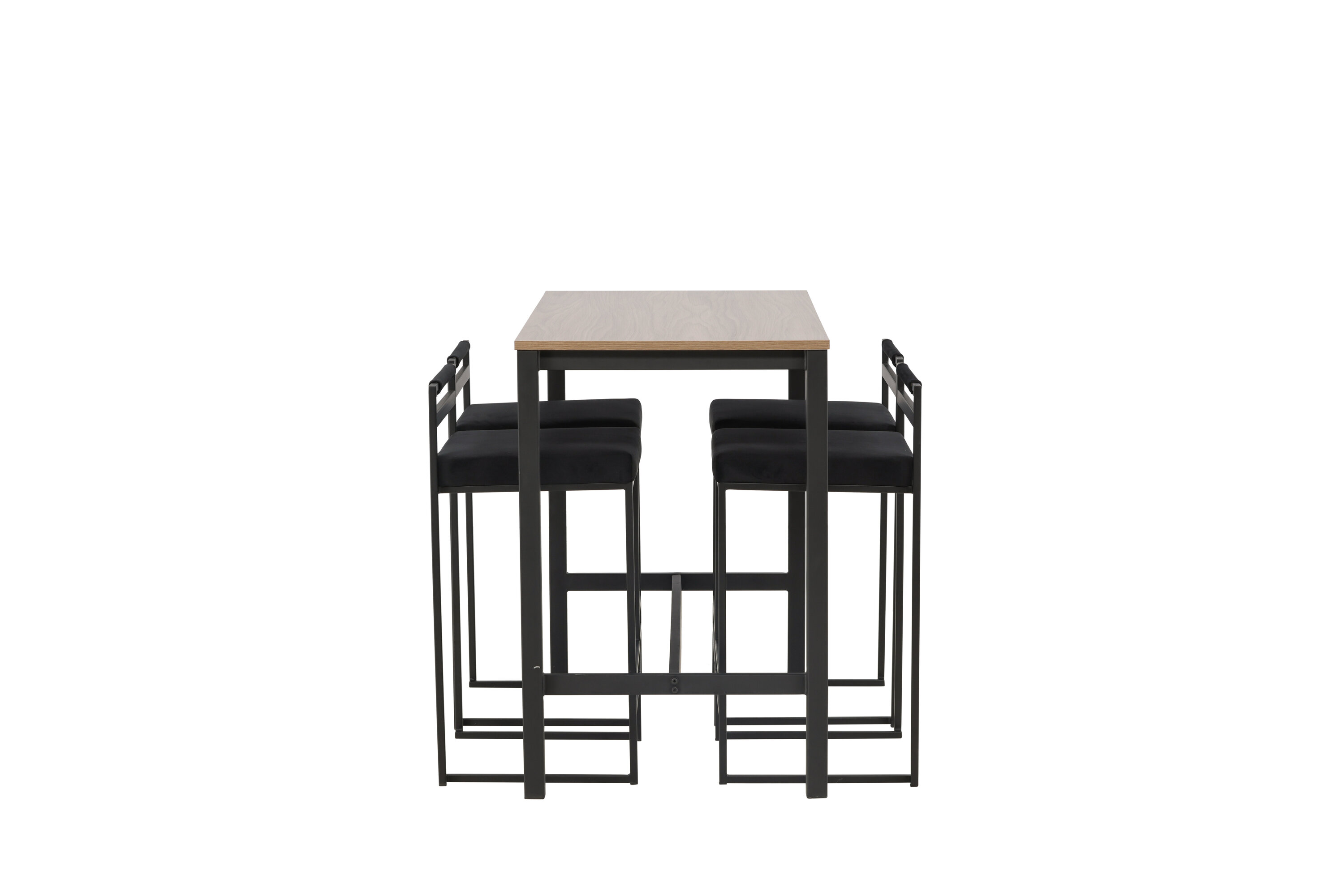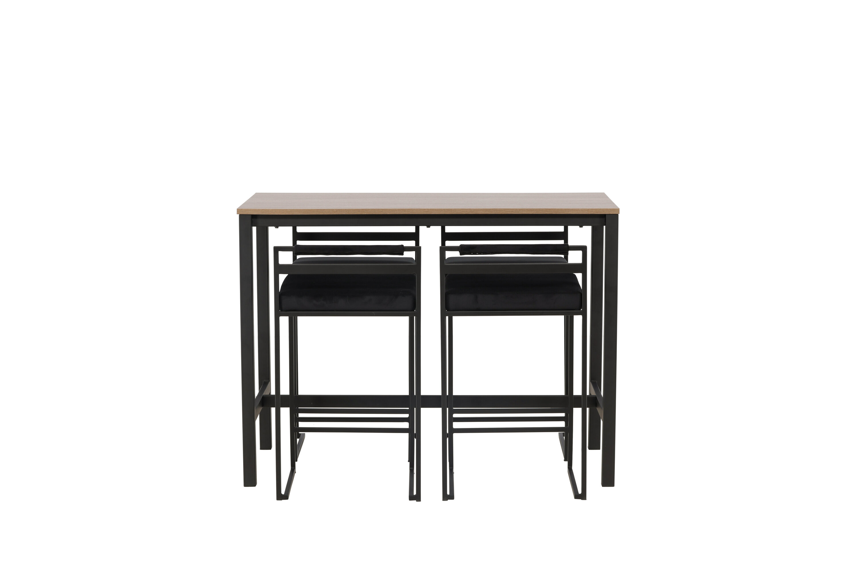 Ideaalne kombinatsioon minimalistlikust ja tööstuslikust disainist! Camdeni baarilaual on põhjamaised sirged kujundid, ristkülikukujuline, pähklivärvi MDF-ist lauaplaat ja sirged mustast terasest lauajalad koos jalatoe raamiga. Siin sobivas kombinatsioonis Opelika sarja mustade baaripukkidega. Iste on pehme polsterdatud ja elegantse mustast sametkangast polsterdatud ning jalakonstruktsioon on stiilselt minimalistlik mustast terasest, millel on alumine seljatugi ja integreeritud jalatugi lisamugavuse tagamiseks. Vii interjöör uutesse kõrgustesse! Laua mõõdud: 120x60cm.