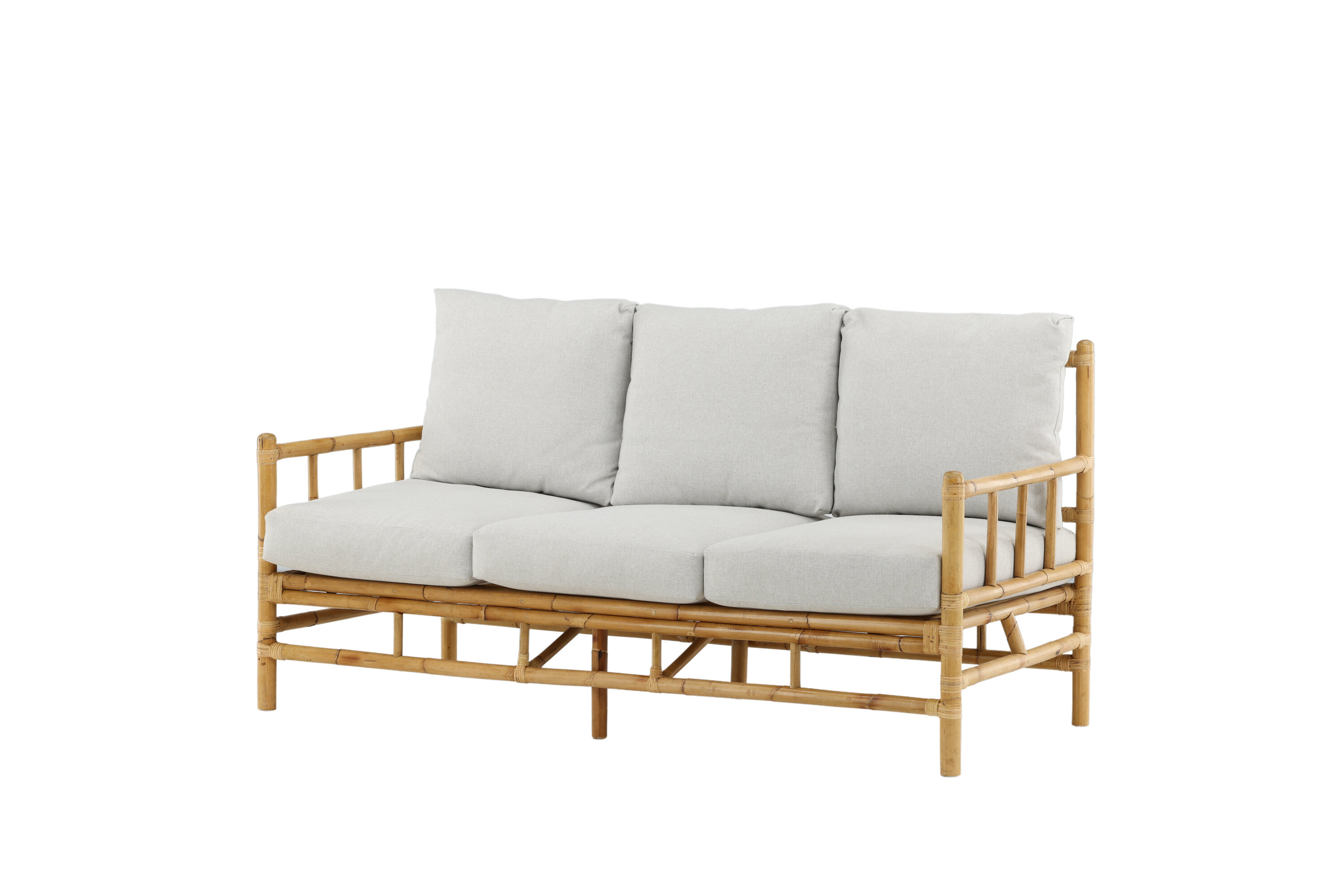 Sisusta terrass klassikalise, luksusliku välimusega bambusdiivaniga sarjast Cane! See mugav kolme diivan loob oma läbimõeldud üldise disainiga kutsuva ja troopilise tunde. Seotud valged padjad on valmistatud pehmest polüesterkangast. Korpus on valmistatud naturaalsest värvilisest bambusest ja naturaalne materjal annab igale üksikule mööblile ainulaadse iseloomu. Stiilne ja nutikas välidiivan tõmbab hilissuvisel õhtul lihtsalt silmad ette ja suurendab mugavust.