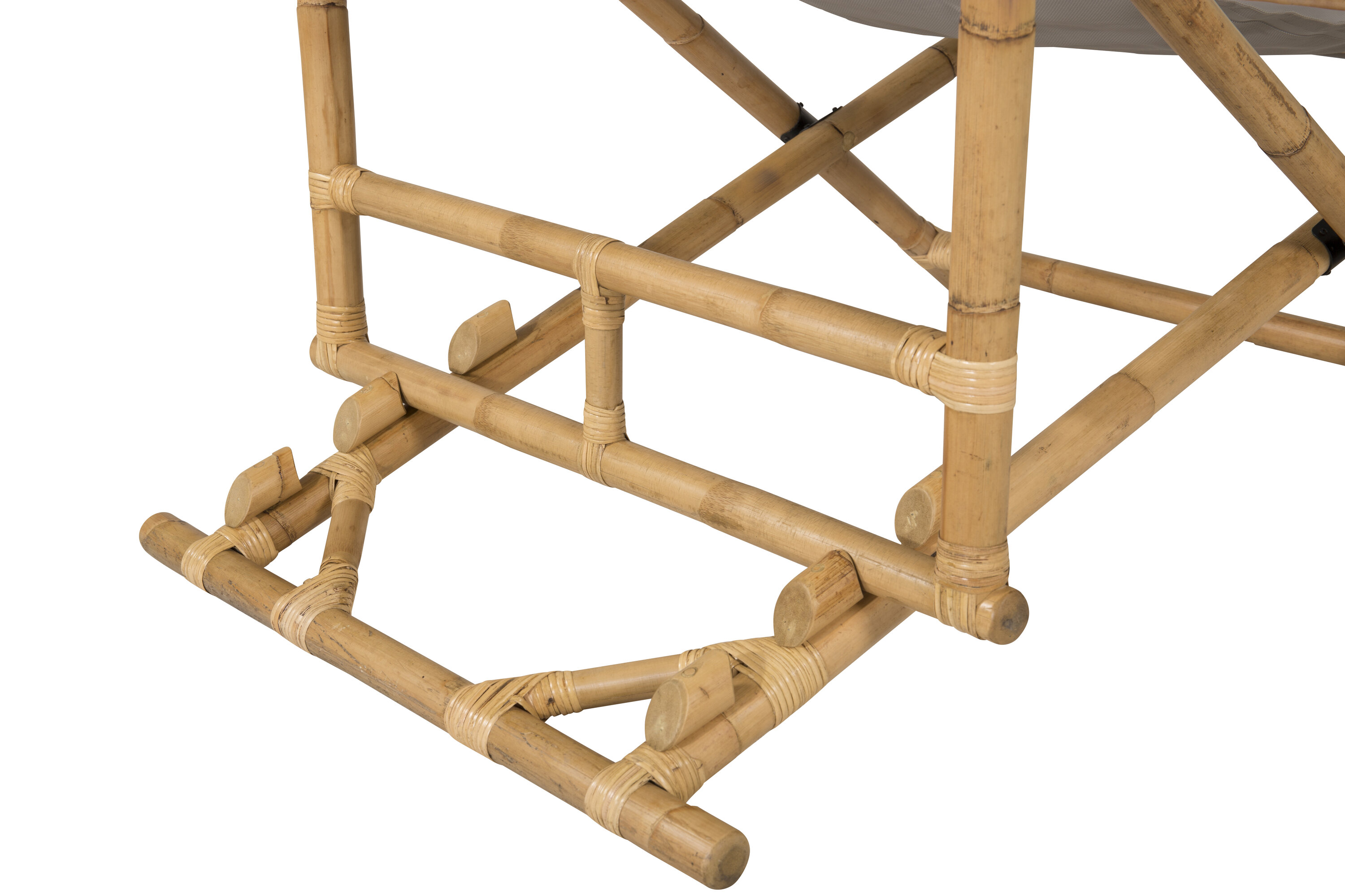 Looge kodus terrassil armas oaas Cane sarja moodsa bambusest lamamistooliga. See mugav lamamistool loob oma läbimõeldud üldise disainiga troopilise tunde. Hall iste on valmistatud polüesterkangast. Korpus on valmistatud naturaalsest värvilisest bambusest ja naturaalne materjal annab igale üksikule mööblile ainulaadse iseloomu. Stiilne ja nutikas lamamistool, mida on lihtne liigutada ja mis tõmbab pilku. Loo kodune puhkusetunne ja naudi suvepäevi.