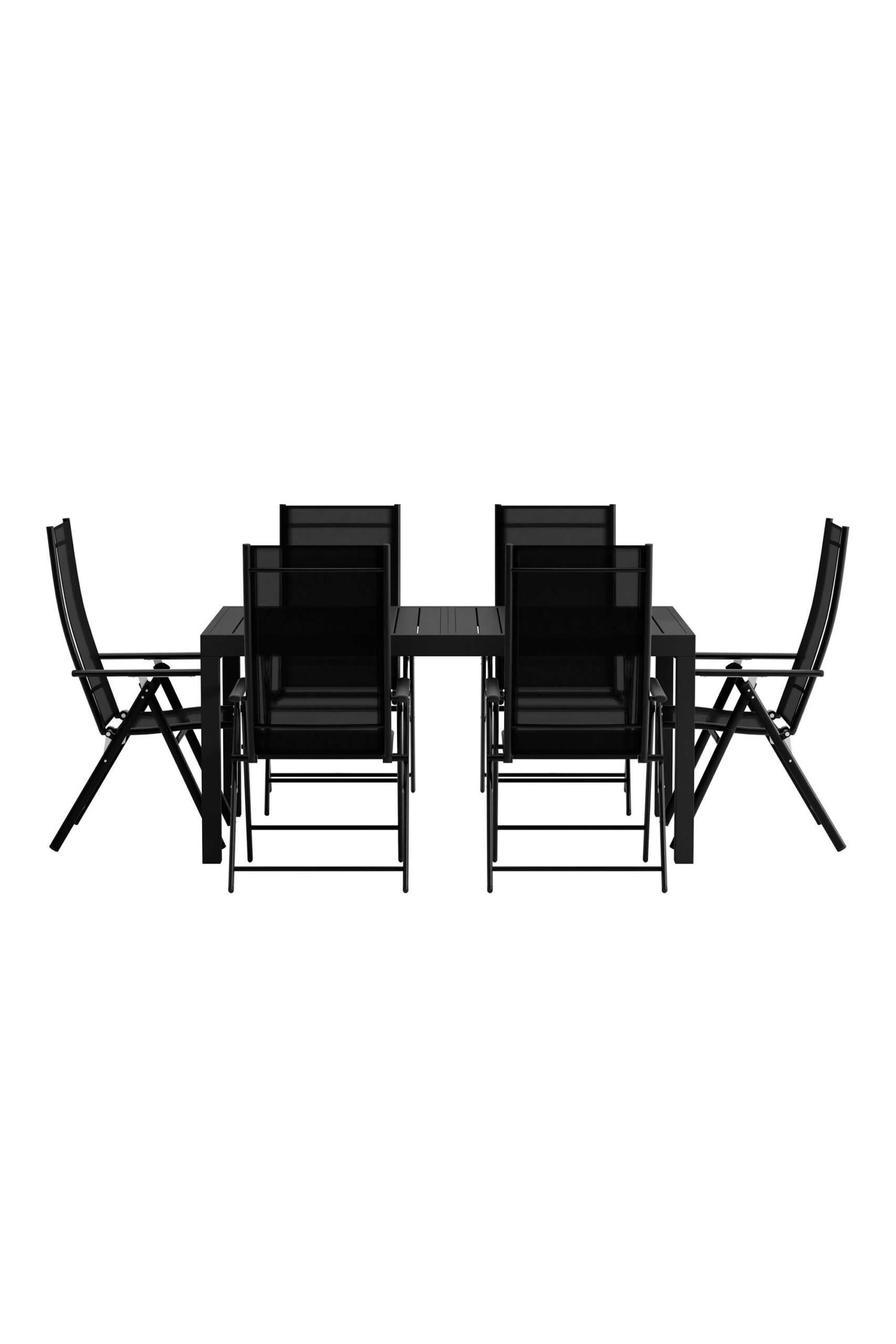 Looge Lavenzo & Capo söögikomplektiga moodne ja paindlik välisöögiala. Lavenzo söögitool pakub nii stiili kui ka mugavust oma musta terasraami, mugava tekstiilist istme ja reguleeritava seljatoega. Tool on ka kokkupandav, mistõttu on seda lihtne hoida, kui seda ei kasutata. Capo söögilaud täiendab toole suurepäraselt oma elegantse musta disaini ja praktilise pikendamisfunktsiooniga. Ristkülikukujuline kuju annab helde lauaplaadi, mida saab hõlpsasti kohandada nii väiksemate einete kui ka suuremate koosviibimiste jaoks. Lavenzo toolid ja Capo söögilaud moodustavad koos elegantse ja nutika söögikomplekti, mis muudab teie väliruumi valmis kõigiks suvisteks õhtusöökideks ja seltskondlikeks hetkedeks.