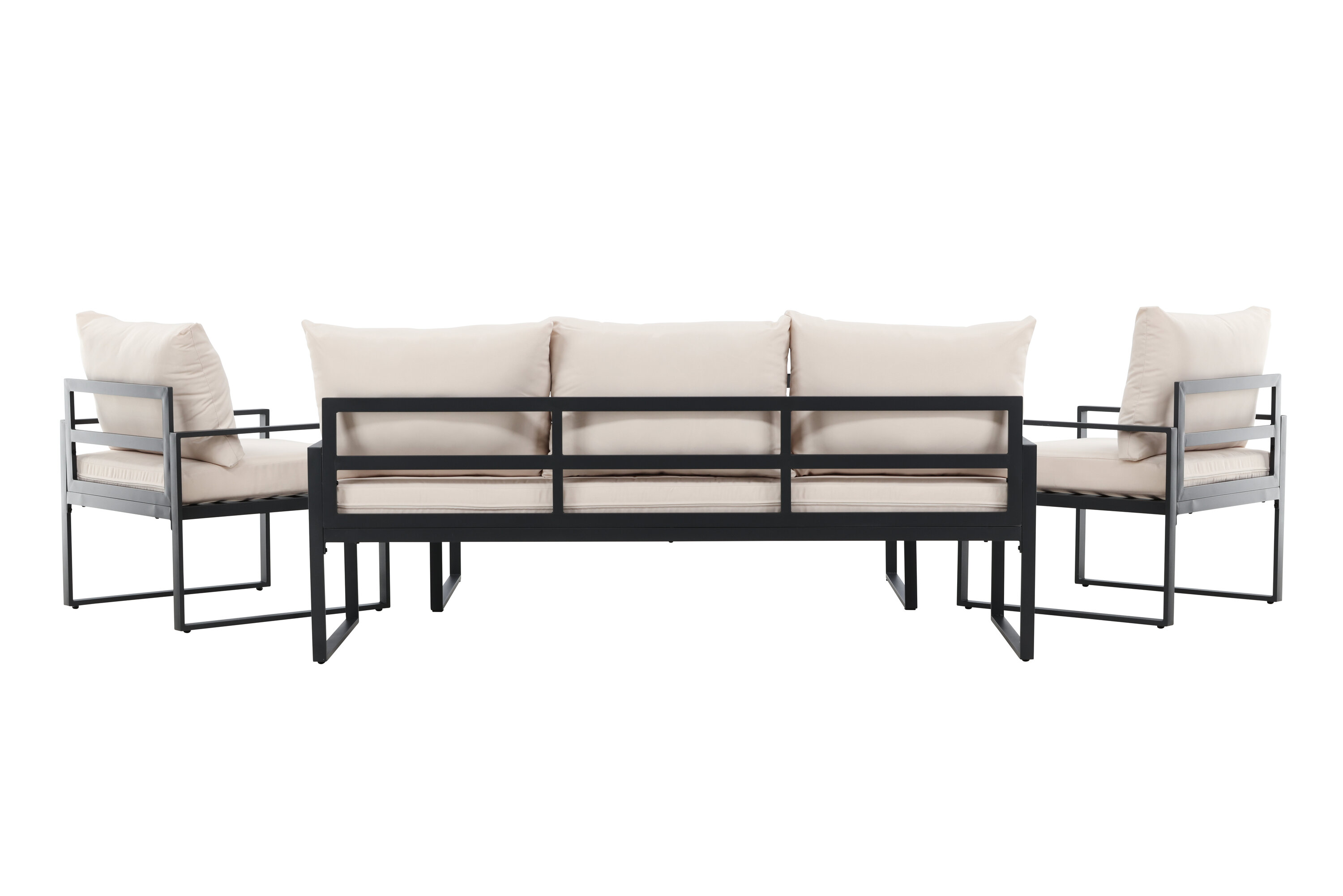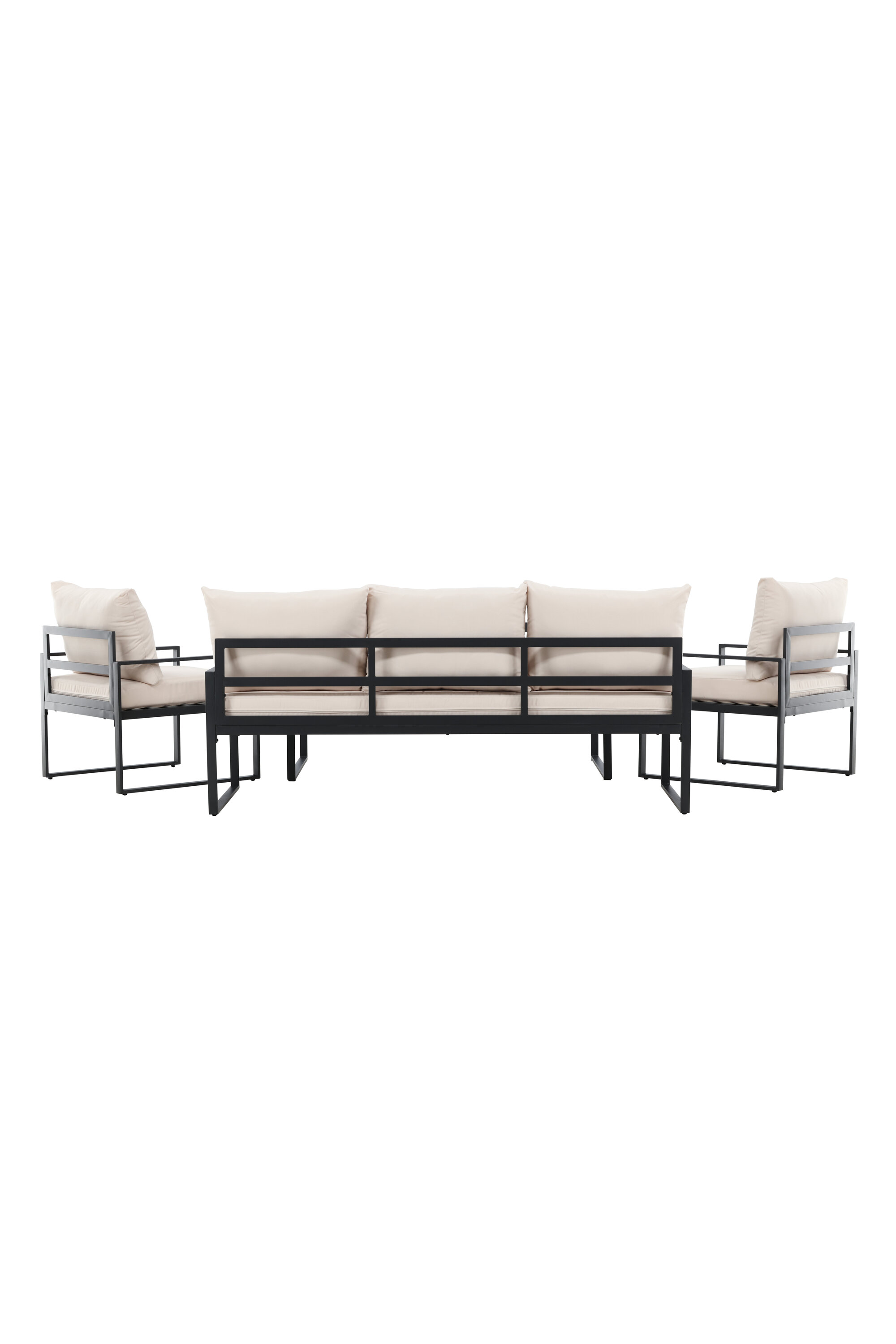 Catania on salongikomplekt, mis muudab teie terrassi elegantseks ja trendikaks oaasiks. Komplekt koosneb kahest mugavast tugitoolist, mahukast diivanist ja stiilsest lauast – kõik need on disainitud nii disainile kui ka mugavusele. Klanitud musta terasraami ja pehmete beežide patjadega luuakse keerukas kontrast, mis toob väliskeskkonda kaasaegse tunde.