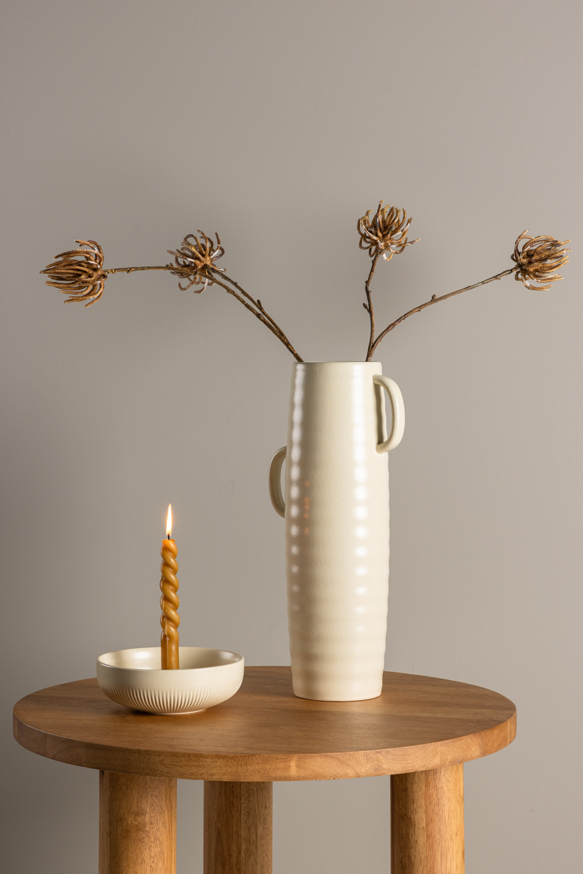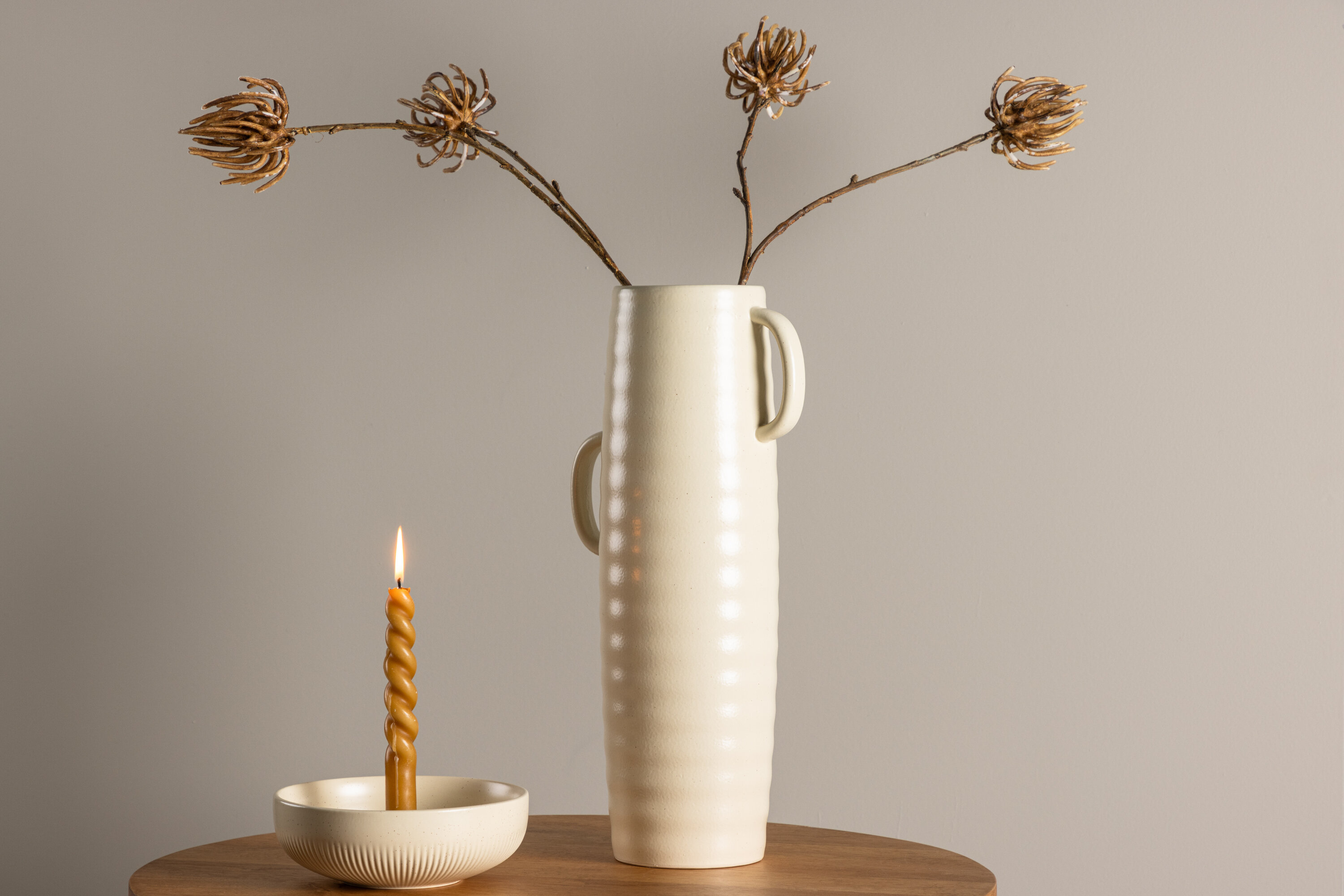 Tutvustage oma kodu elegantset hõngu oma uue lemmiku Centiga. Cent on muljetavaldavalt 41 sentimeetri kõrgune beež kaunitar, mis on valmistatud vastupidavast kivikeraamikast. Vaasi struktuuris on peened lained, mis lisavad selle kaasaegsele disainile orgaanilise tunde.