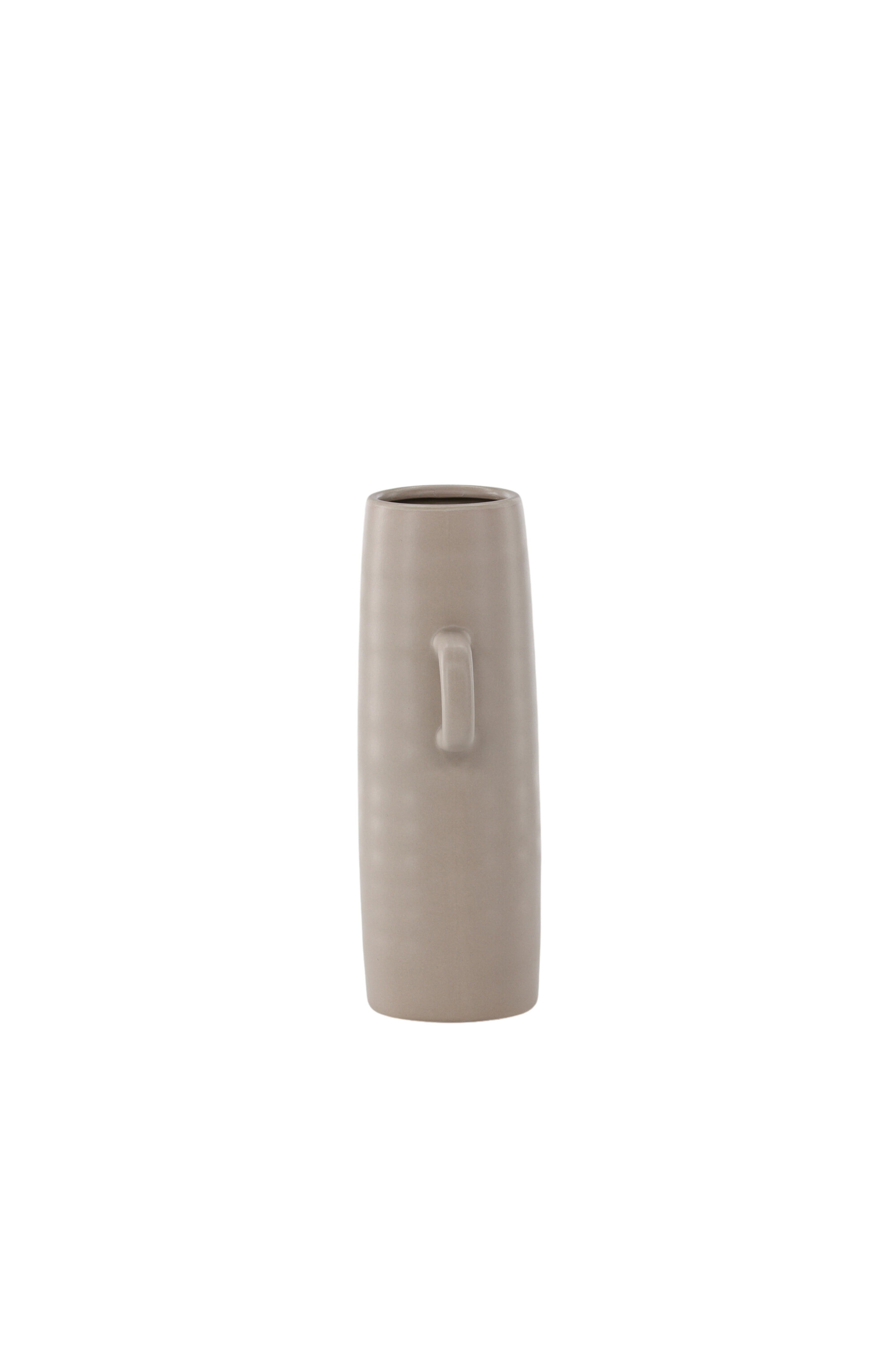 Soe helepruun värv teeb vaasist mitmekülgse tüki, mis sobib ideaalselt igasse koju ja stiili. Selle ainulaadne disain sisaldab kahte käepidet külgedel, mis on paigutatud erinevatele kõrgustele, et luua kunstilist asümmeetriat. Need käepidemed muudavad vaasi liigutamise lihtsaks, lisades samal ajal huvitava visuaalse mõõtme.
