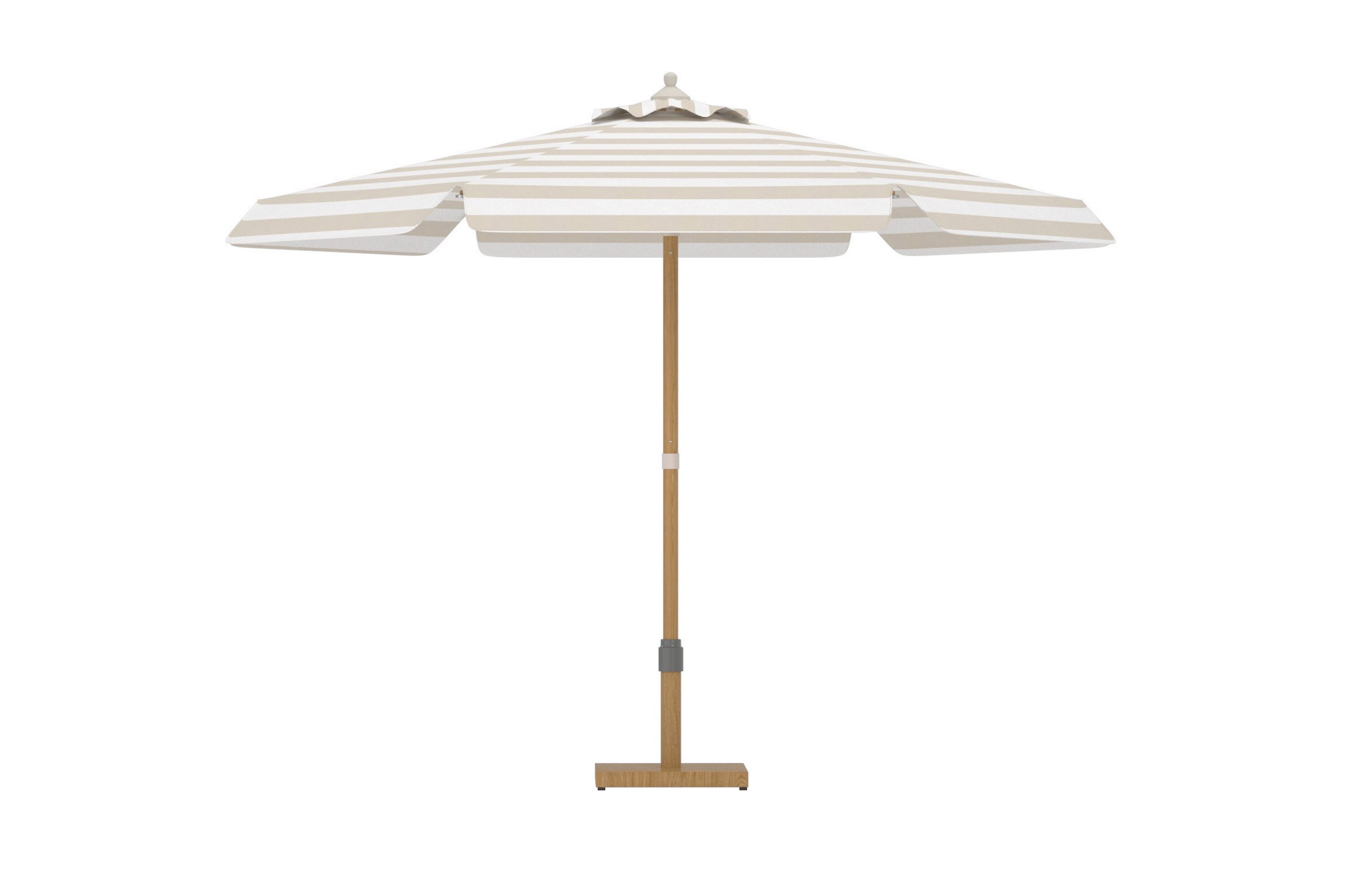 Cerox on stiilne päikesevari, mis ühendab klassikalise disaini ja moodsa puudutuse. Heledates toonides triibuline varikatus loob värske ja ajatu välimuse, mis sobib nii söögikomplekti kui ka lamamistooli kõrvale. Oma suure suurusega päikesevari pakub meeldivat kaitset päikesekiirte eest ja muudab teie väliruumi lahedaks ja kutsuvaks oaasiks. Tugev puidusarnase viimistlusega varras suurendab elegantset ilmet ja muudab päikesevarju kauni detaili igas väliskeskkonnas. Ceroxi päikesevarjuga saate nii praktilise päikesekaitse kui ka elegantse atmosfääri kõikideks suvepuhkudeks. Päikesevarju alus müüakse eraldi.