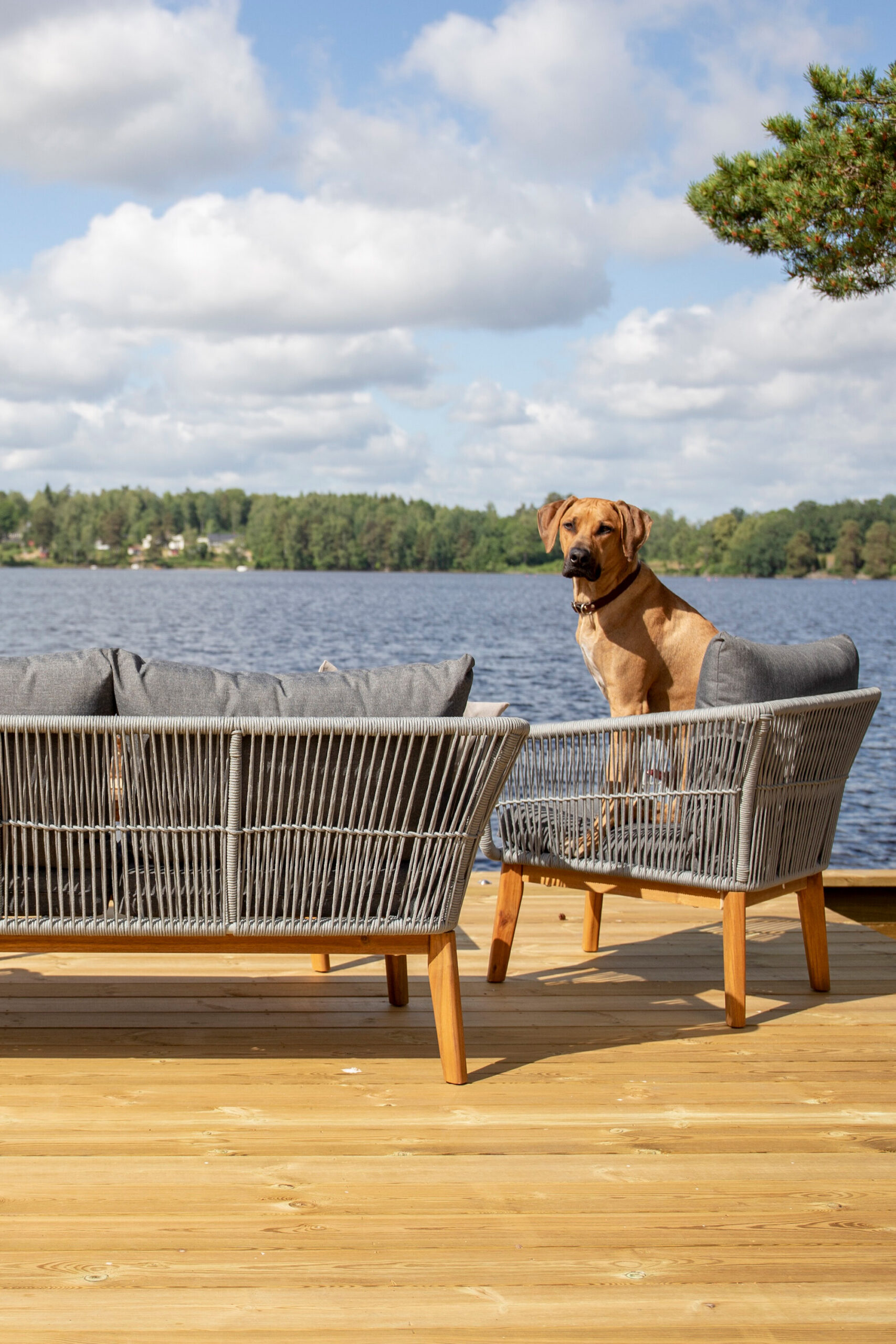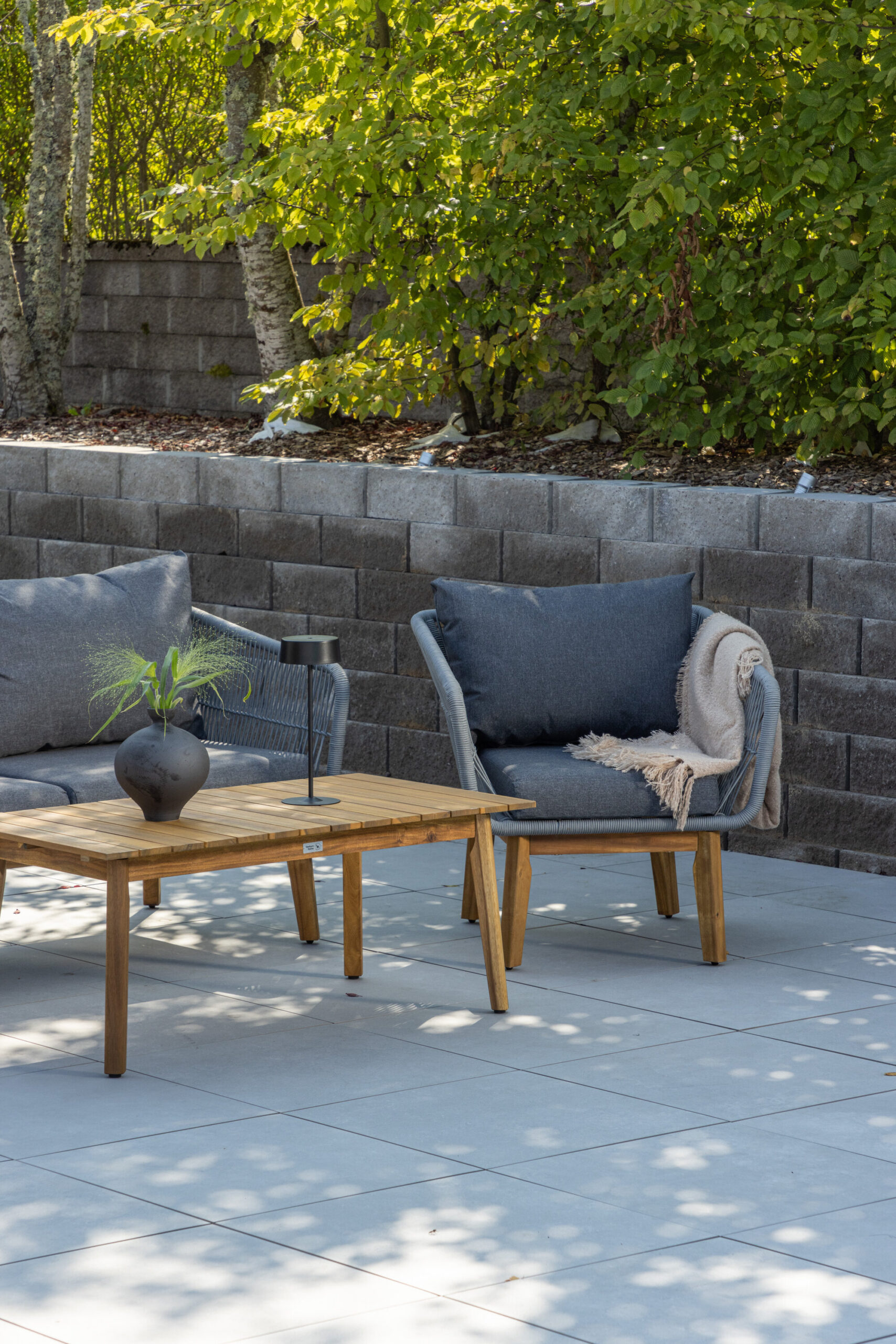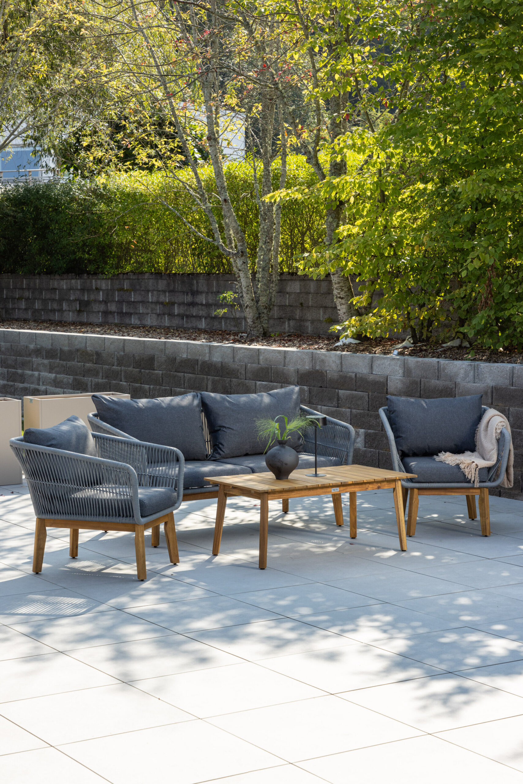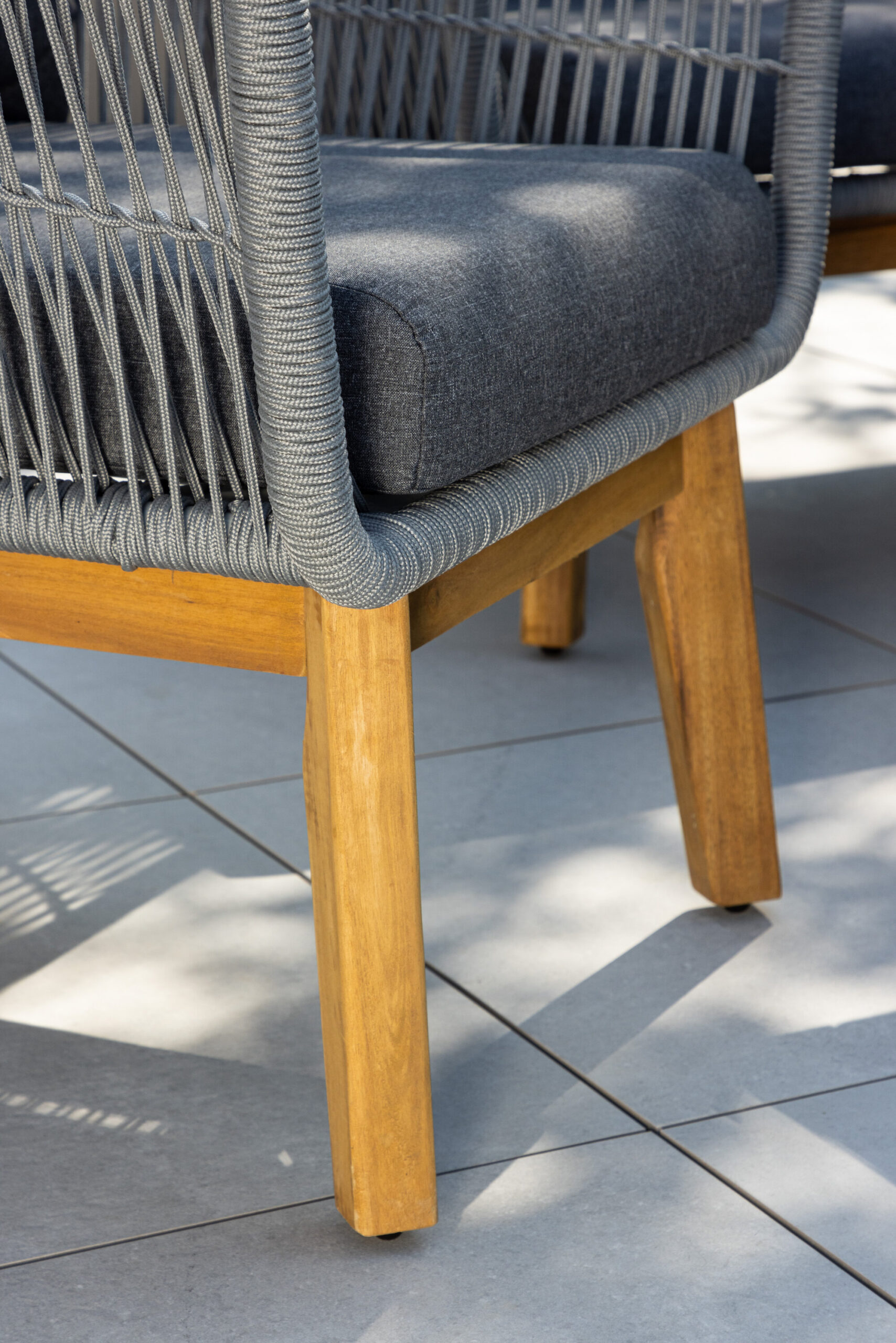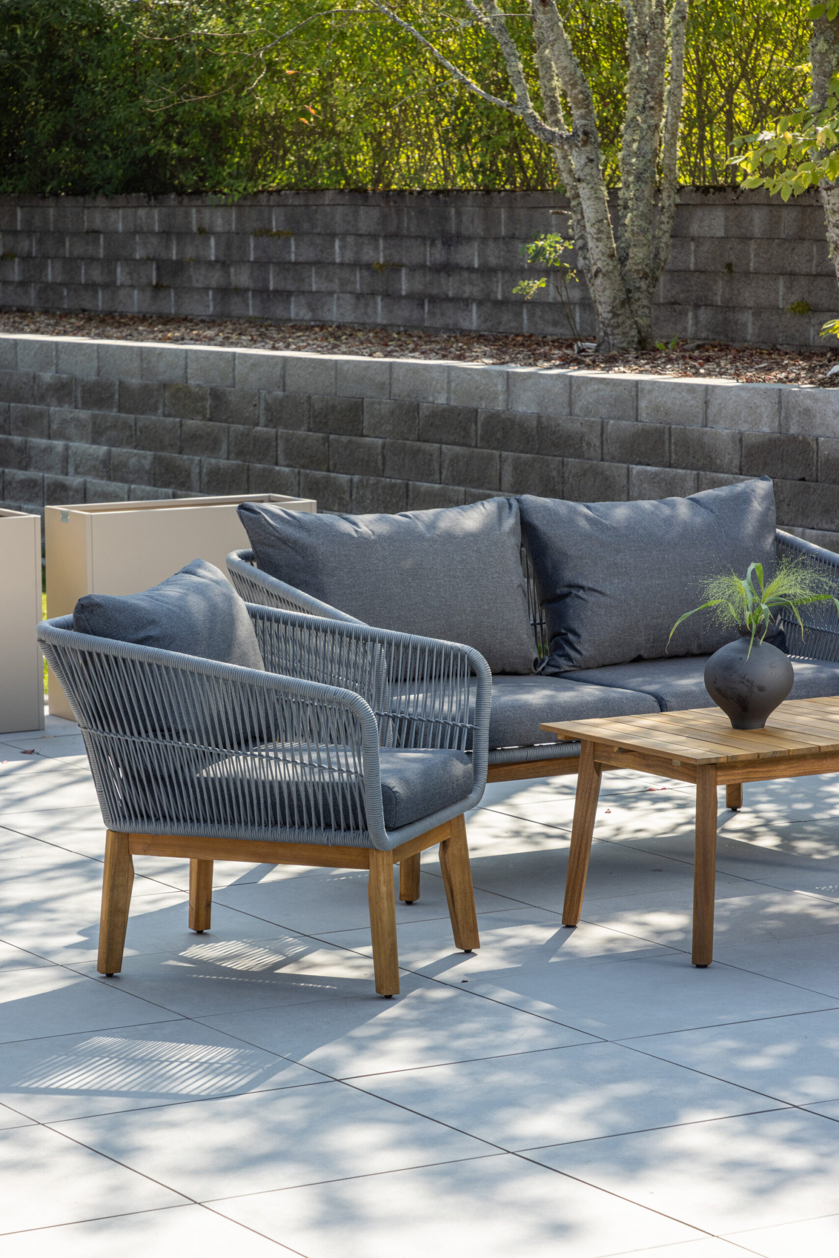 Chania – trendikas diivanikomplekt, mis keskendub mugavusele ja pilkupüüdvale disainile. Komplekt koosneb kahekohalisest diivanist, kahest paksude vastupidavate tumehallide patjadega tugitoolist ja üleni kaunist akaatsiapuust valmistatud madalast diivanilauast. Diivanikomplektil on akaatsiast jalgadega alumiiniumraam, tagumine osa ja küljed on aga põimitud helehalli köiega, et tagada stiilne disain. Akaatsia detailid koos kohvilaua klassikalise kujuga loovad eksklusiivse ja ühtse välimuse.