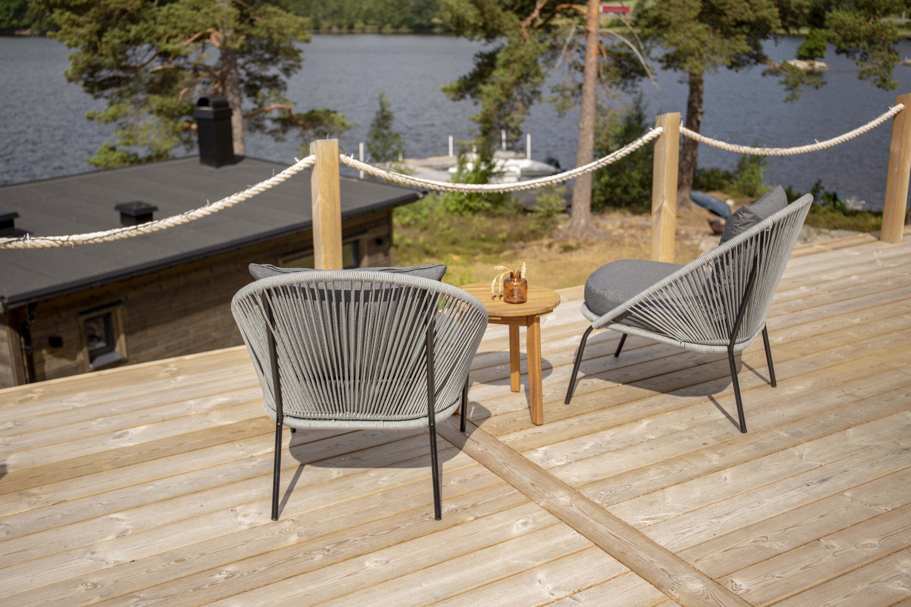 Moodne ja hubane! Külglaud Chania koos Lindo lamamistoolidega annab teile lounge-grupi, kes igatseb sooja suveõhtut. Toolid on hästi suurendatud halli kootud nööriga istmega – siin on hea meel istuda pikka aega ja nautida suve imelisi hetki!