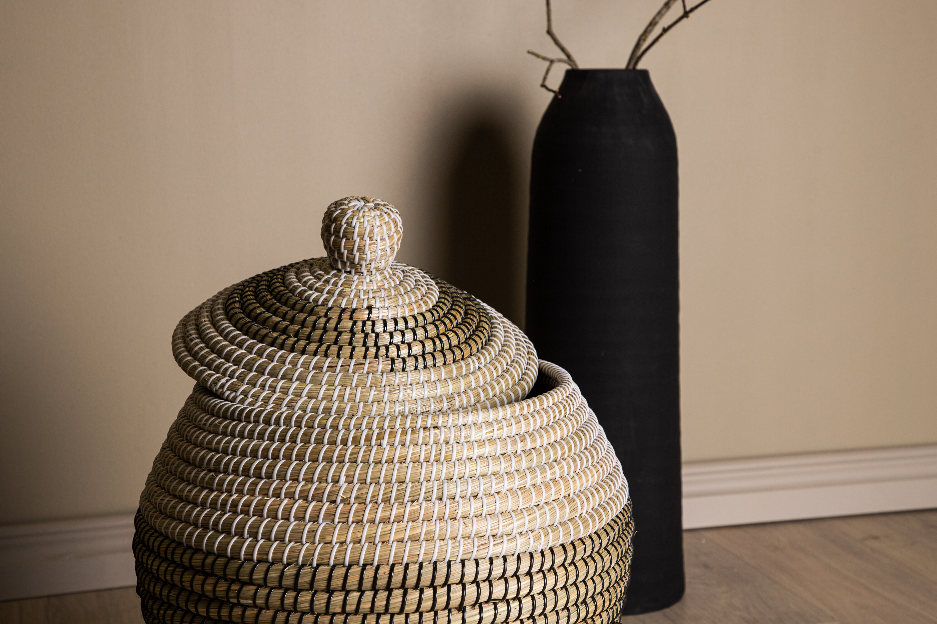 Chennai on meie ümmargune kaanega säilituskorv! Seda korvi saab kasutada palju; Vannitoas rätikud, elutoas vähem panipaiku või miks mitte täita see lastetoas mänguasjadega? See on sama dekoratiivne kui siseviimistlus, kuna on funktsionaalne ja sobib mitmesse ruumi. Korv on naturaalset värvi ja roheline valgete detailidega. Kaunista oma kodu nutikalt ja korralikult!