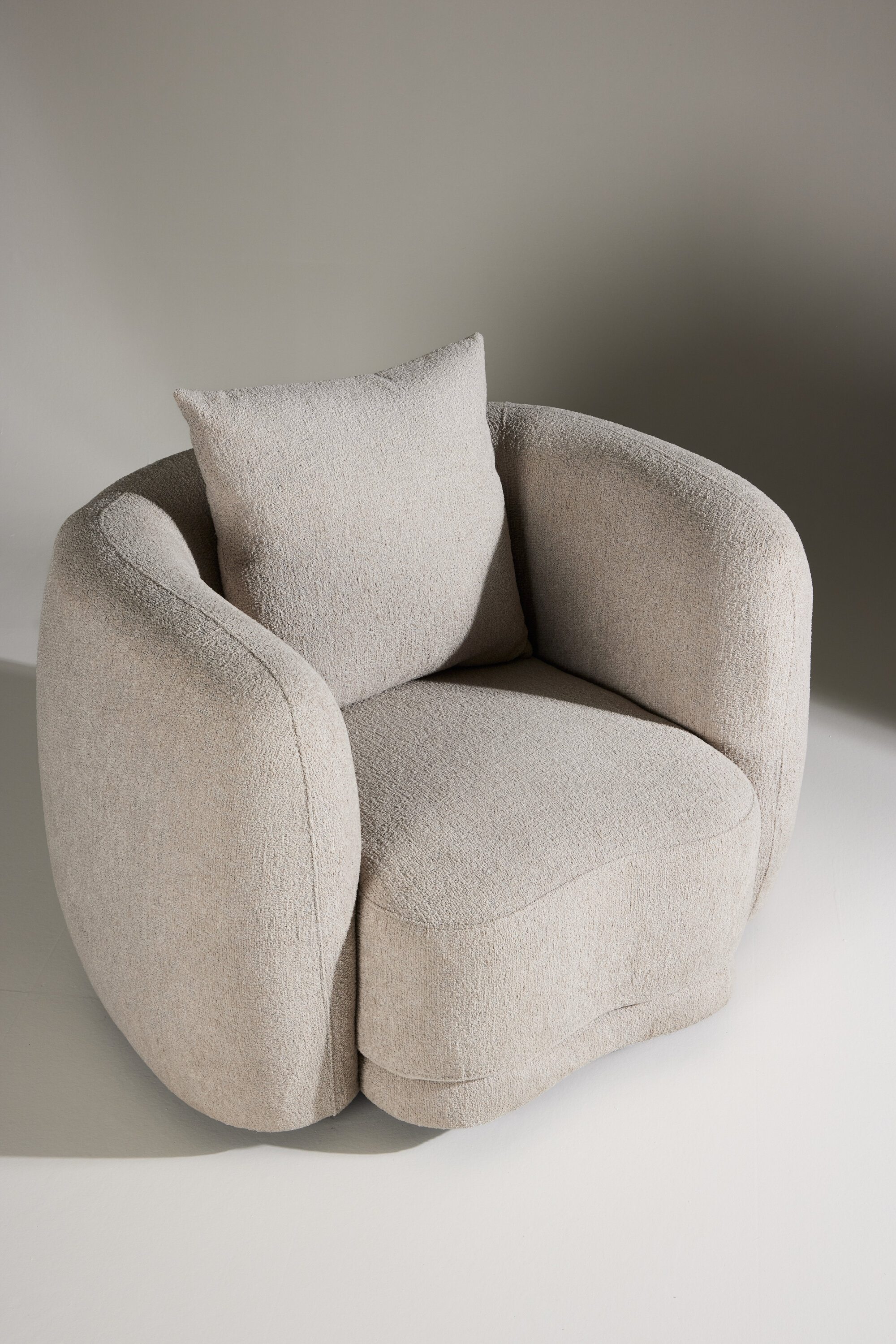 Looge oma kodus stiili ja mugavuse oaas Cielo tugitooliga, mis on polsterdatud eksklusiivse beeži bouclé materjaliga. Selles tugitoolis on ühendatud kaasaegne disain ajatu esteetikaga, mistõttu on see ideaalne lisa teie elutuppa, magamistuppa või lugemisnurka. Beež bouclé materjal annab Cielole ainulaadse tekstuuri ja pehme, kutsuva tunde. Värvus on ühtaegu elegantne ja neutraalne, mistõttu on tugitooli lihtne integreerida erinevatesse interjööristiilidesse – skandinaavialikust minimalistlikust klassikalise peeneni. Bouclé loomulik tekstuur lisab teie toale ka soojust ja luksust. Oma ümbritseva kuju ja hoolikalt valmistatud mugavusega on Cielo midagi enamat kui lihtsalt istumisosa – see on koht, kus saate lõõgastuda ja end laadida. Suurepärane istme sügavus ja mugav seljatugi muudavad iga hetke tugitoolis naudinguks, olgu siis raamatut lugedes, tassikest teed nautides või lihtsalt veidi puhates. Cielo tugitool pole mitte ainult kaunis sisustusdetail, vaid ka funktsionaalne mööbliese, mis pakub nii stiili kui mugavust. Laske Cielol beežis bouclé’s saada teie kodu lemmikuks ja kogege, kuidas see lisab igasse ruumi peent elegantsi.