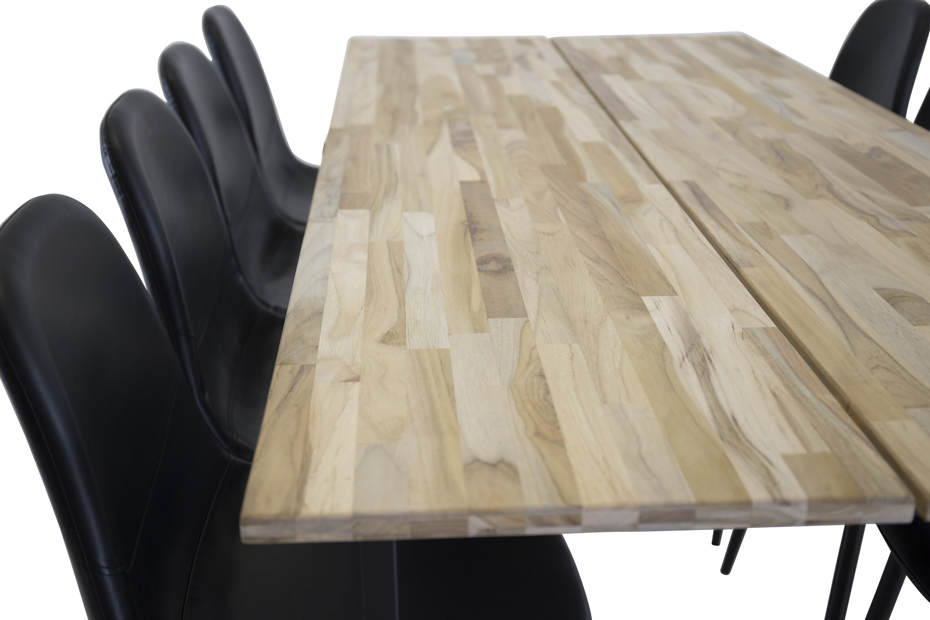 Stiilne tiikpuust lauaplaadiga söögilaud Cirebon koos mugavate söögitoolidega Polar loob Monde Mature Groupi. Looge midagi korralikku ja sotsiaalset, kus on ruumi heale toidule ja suhtlemisele!