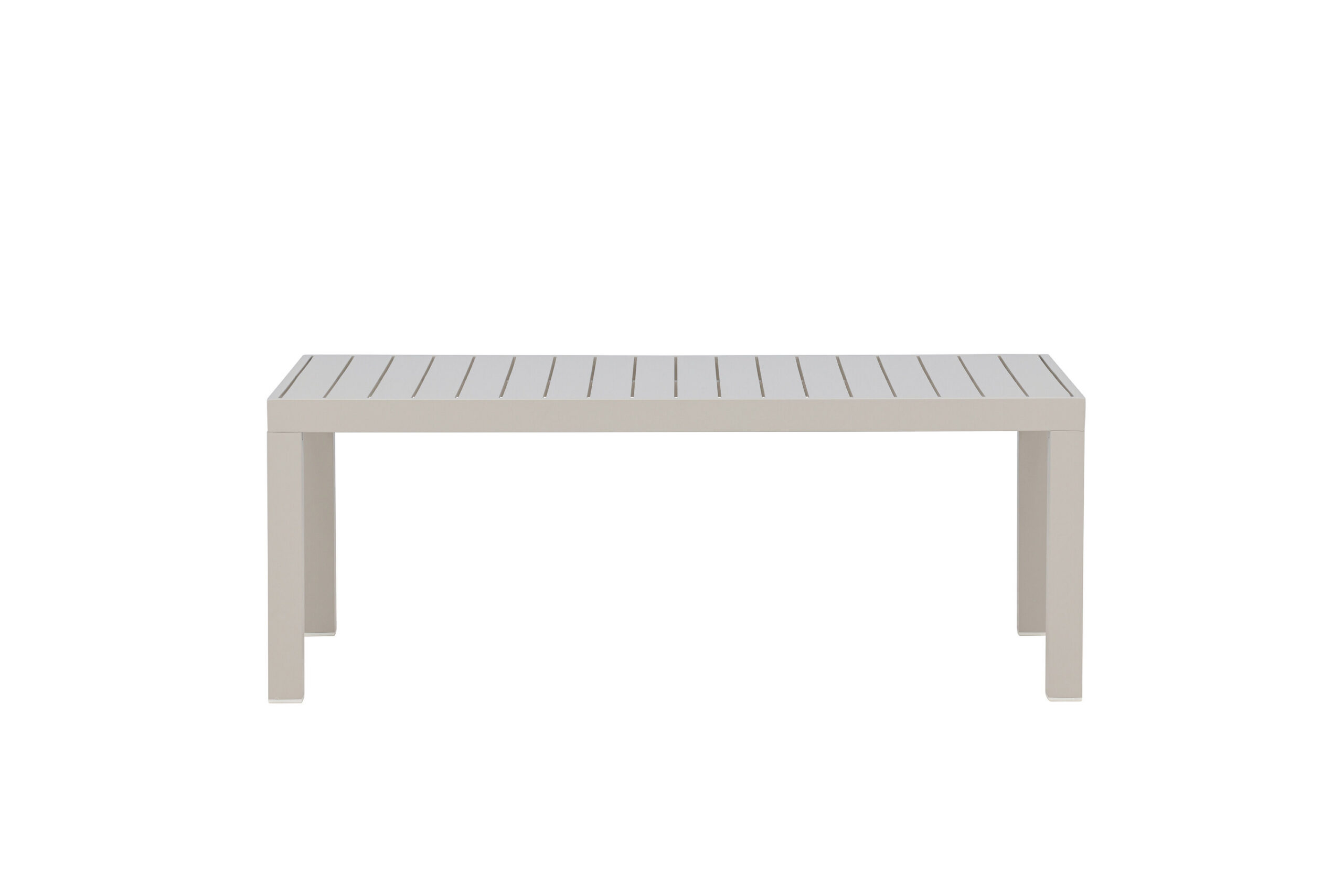 Looge Copacabana kohvilauaga elegantne ja funktsionaalne väliruum. Tugevast alumiiniumist ja moodsas beežis toonis viimistletud laud on loodud vastu pidama välitingimustes, säilitades samal ajal oma stiilse välimuse hooaeg-hooaeg. Oma ajatu disaini ja tugeva konstruktsiooniga saab Copacabanast teie puhkeala loomulik keskpunkt – ideaalne kohvi nautimiseks või dekoratiivsete detailide eksponeerimiseks. Täiustage oma siseõu stiili ja kvaliteediga – Copacabana ühendab praktilise funktsiooni ja rafineeritud esteetika.