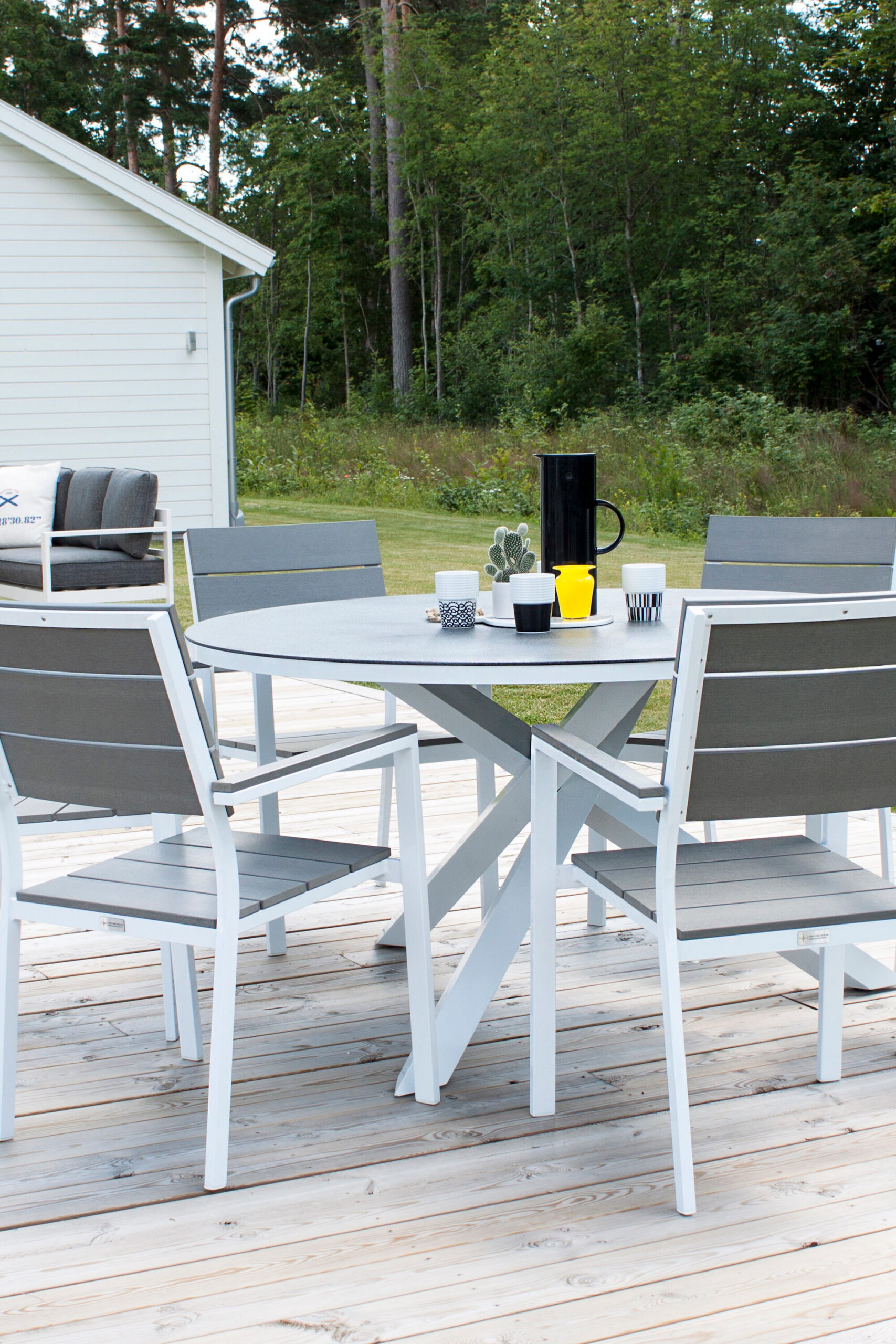 Looge oma terrassile kutsuv atmosfäär Copacabana sarja ümmarguse söögilauaga! Laual on klanitud disain, klaasist lauaplaat ja dekoratiivne valge alumiiniumist alus. Ühendage see mõne mugava söögitooliga ning teie ja teie külalised saate koos õues pikki ja lõõgastavaid eineid nautida. Ideaalne koht hea seltskonna ja suviste hetkede jagamiseks!