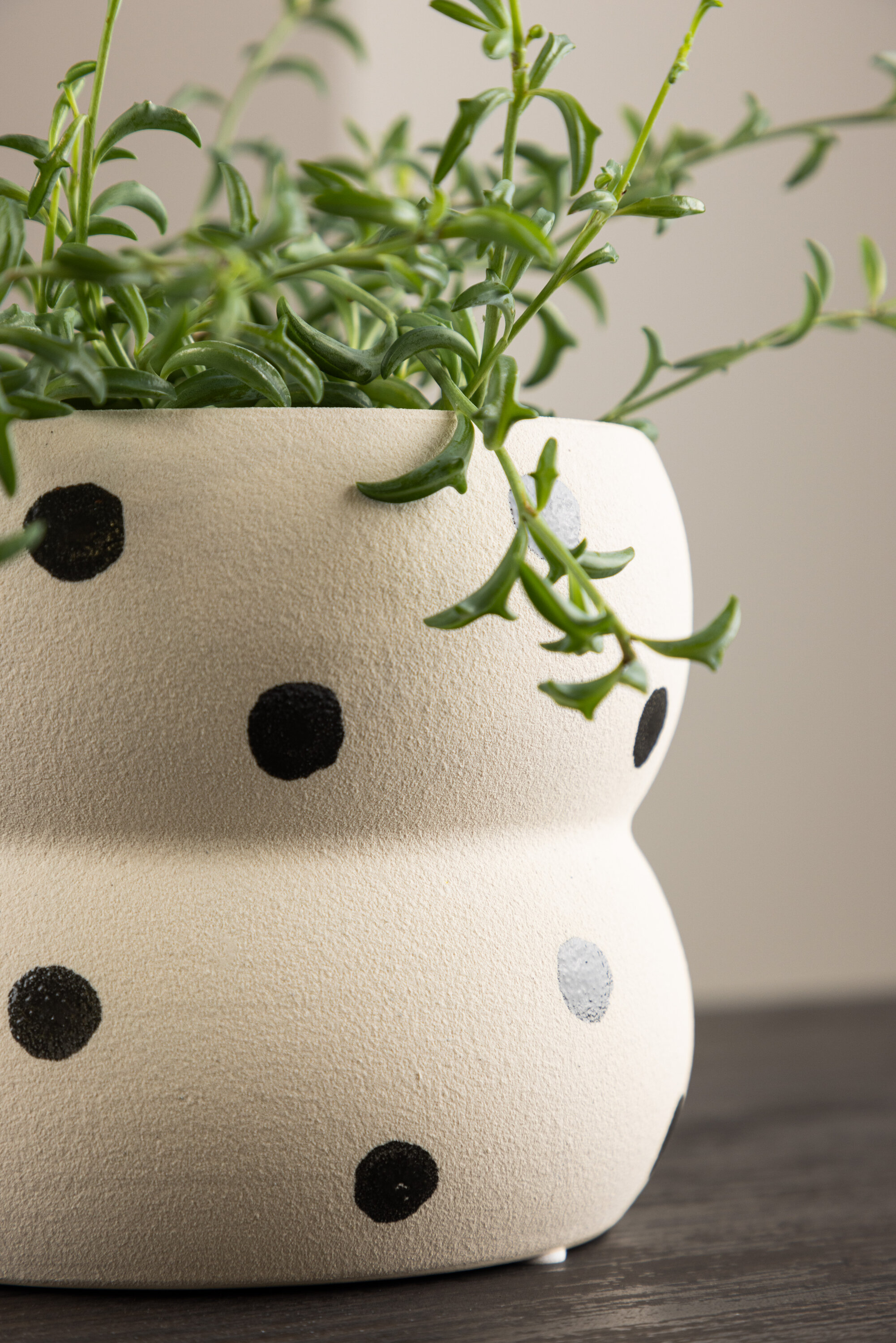 Tutvuge Dapnega, mis on ideaalne pott, mis lisab teie kodule loovust ja mängulisust. Dapne on saadaval erinevates värvides, mis muudab teie lemmiku leidmise lihtsaks. Mustade täppidega valge pott on eriti peen, luues mängulise atmosfääri.