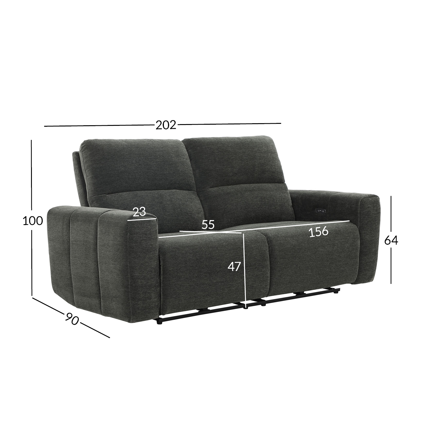 Diivan MATIAS 3-kohaline elektriline recliner 202x90xH100cm, hall