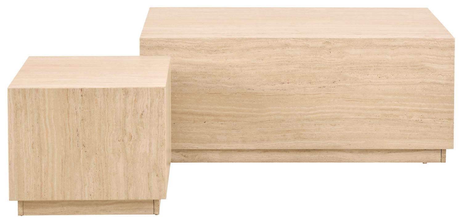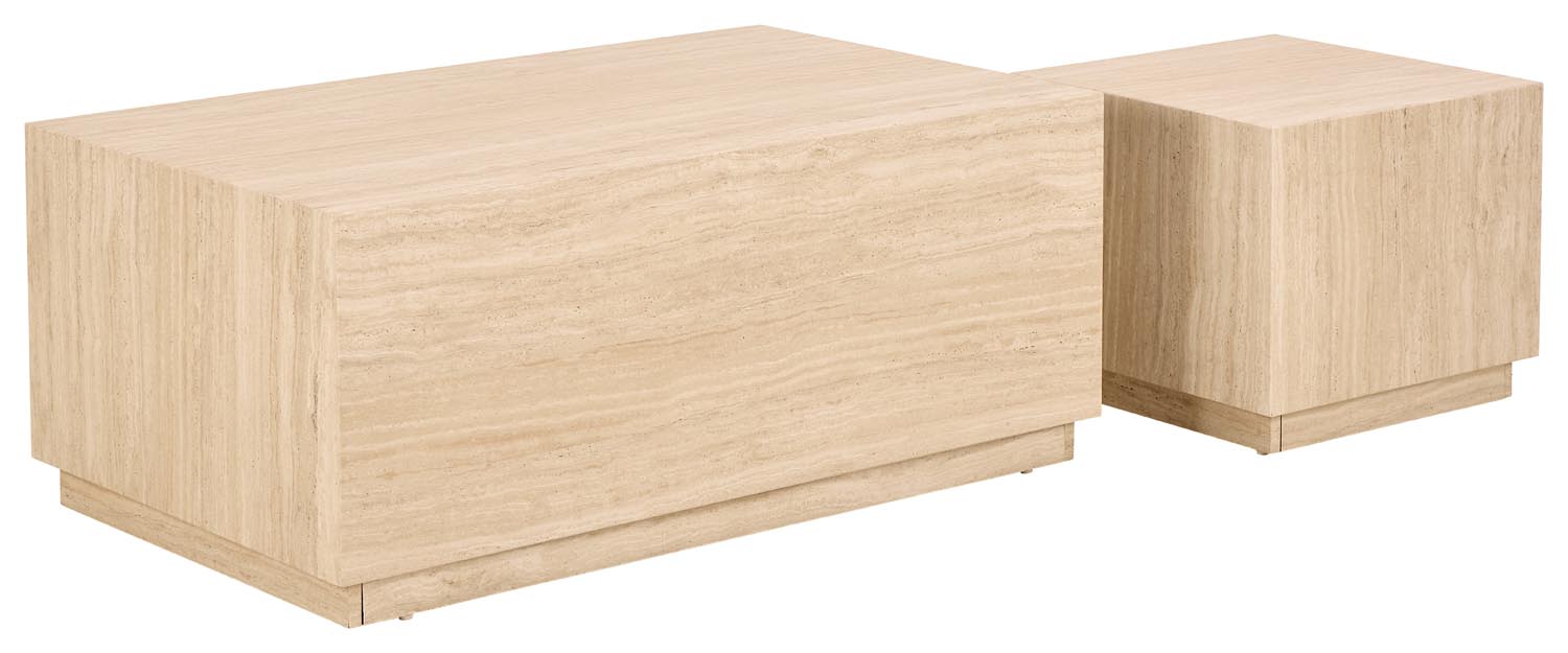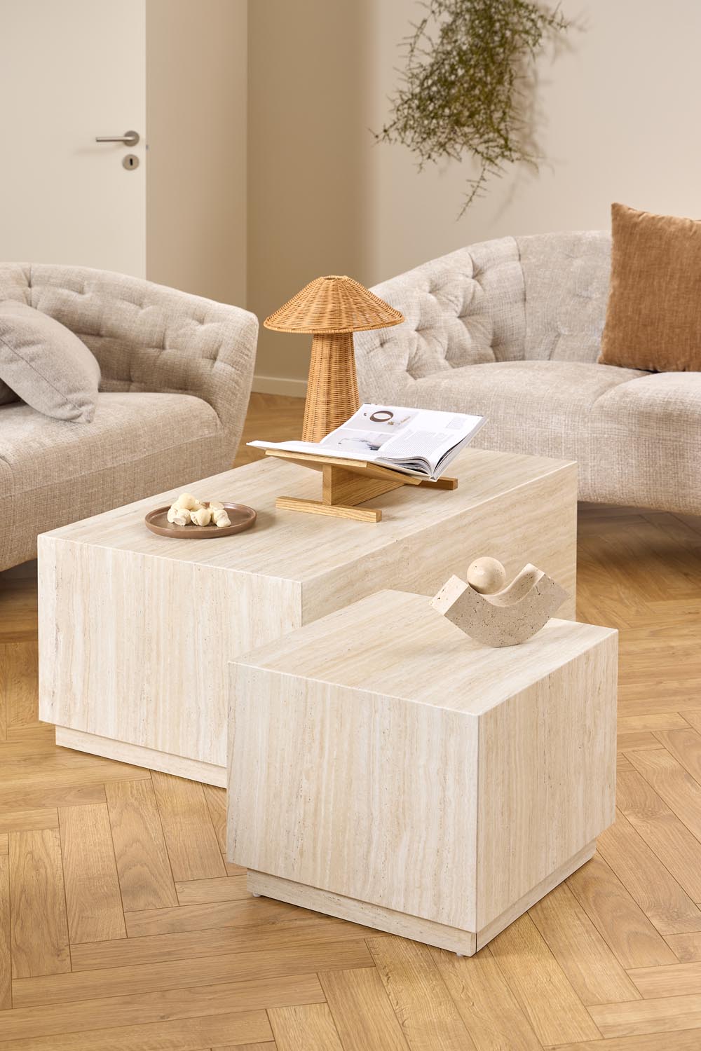 Moodsa disainiga kandiline diivanilaudade komplekt on silmapaistev igas interjööris. Travertiini välimus lisab laudadele modernse ilme. Laudadel on palju ruumi raamatute jaoks. Samas on võimalik pinda kasutada jookide ja suupistete serveerimisel. Mõõdud on 100x60xH42cm, 44x44xH38cm.