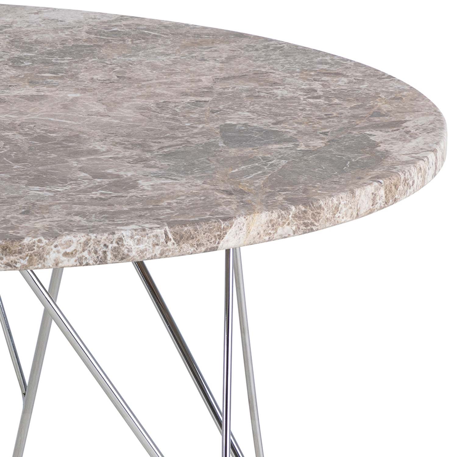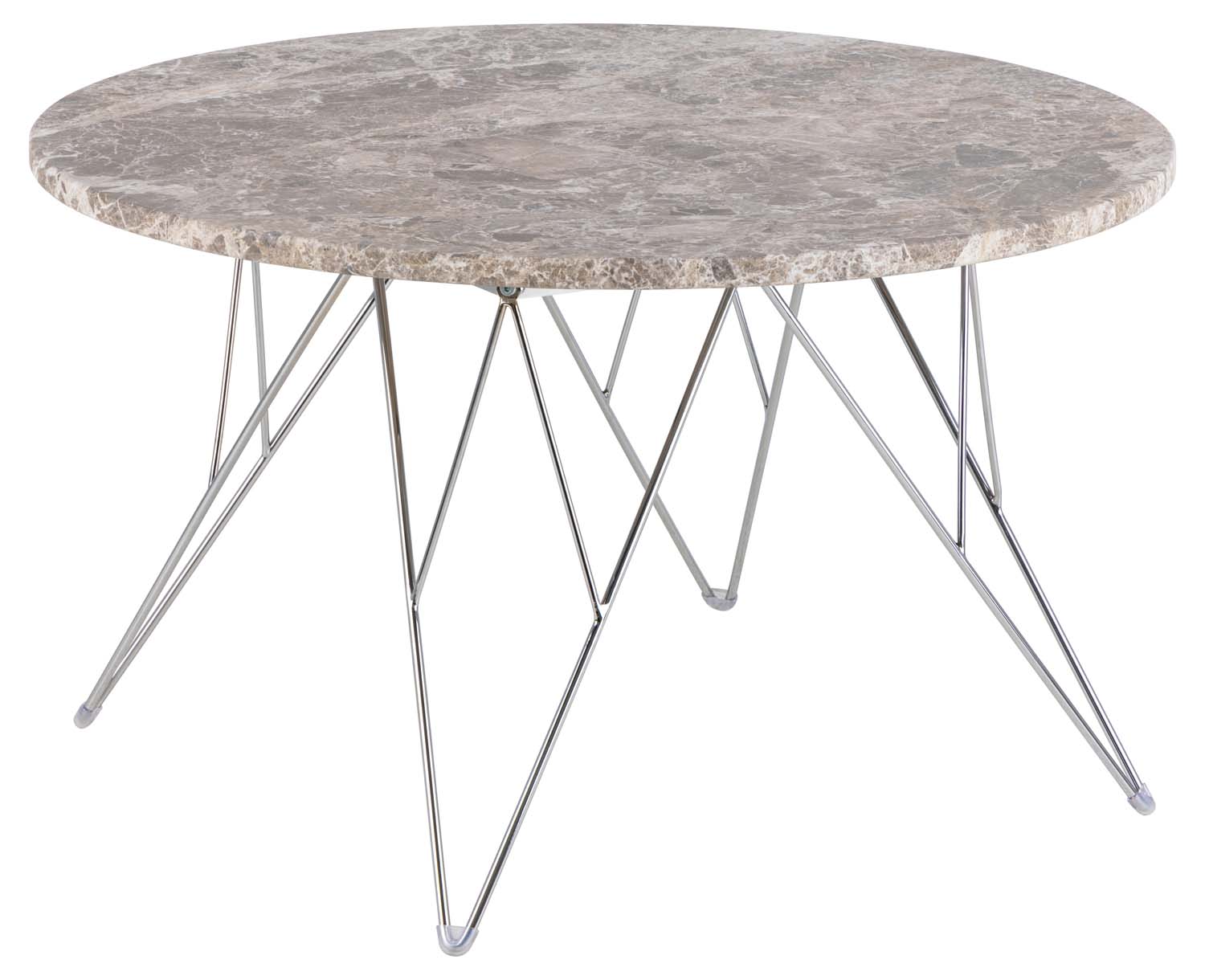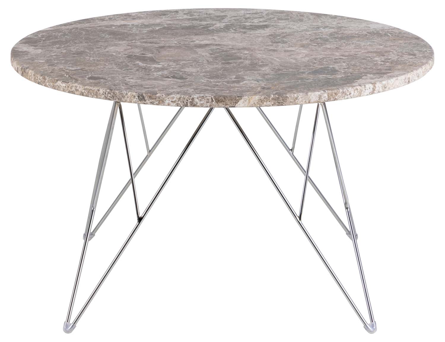 Diivanilaud, mis sobib nii minimalistidele kui ka maksimalistidele. Laual on visuaalselt silmatorkav hallikaspruunist marmorist lauaplaat, mis toetub kroomitud alusele. Kontrast proportsioonide vahel muudab laua disaini eriti võluvaks. Laud on kergesti sobitatav paljudesse interjööridesse. Materjal: lakitud marmor. Jalad: teras. Toote mõõdud on D80xH46,2cm.