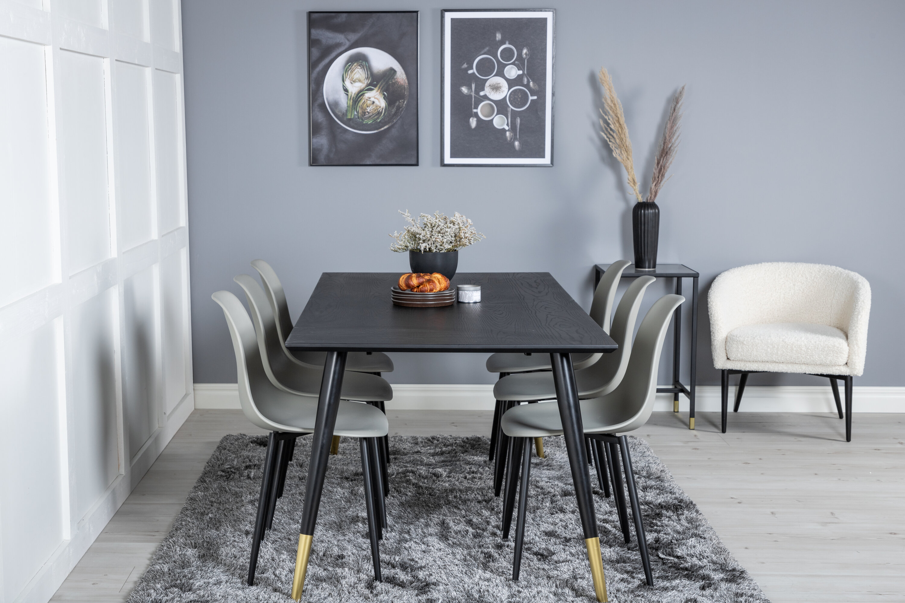 Söögilaud on peenikese disainiga luksuslike kuldsete detailidega koos halli plastikust söögitoolidega Polar – ideaalne kombinatsioon neile, kes soovivad trendikat toidugruppi. Toolide kõrge istumismugavus kutsub teid pikkadele ja imelistele hetkedele suhtlemiseks!