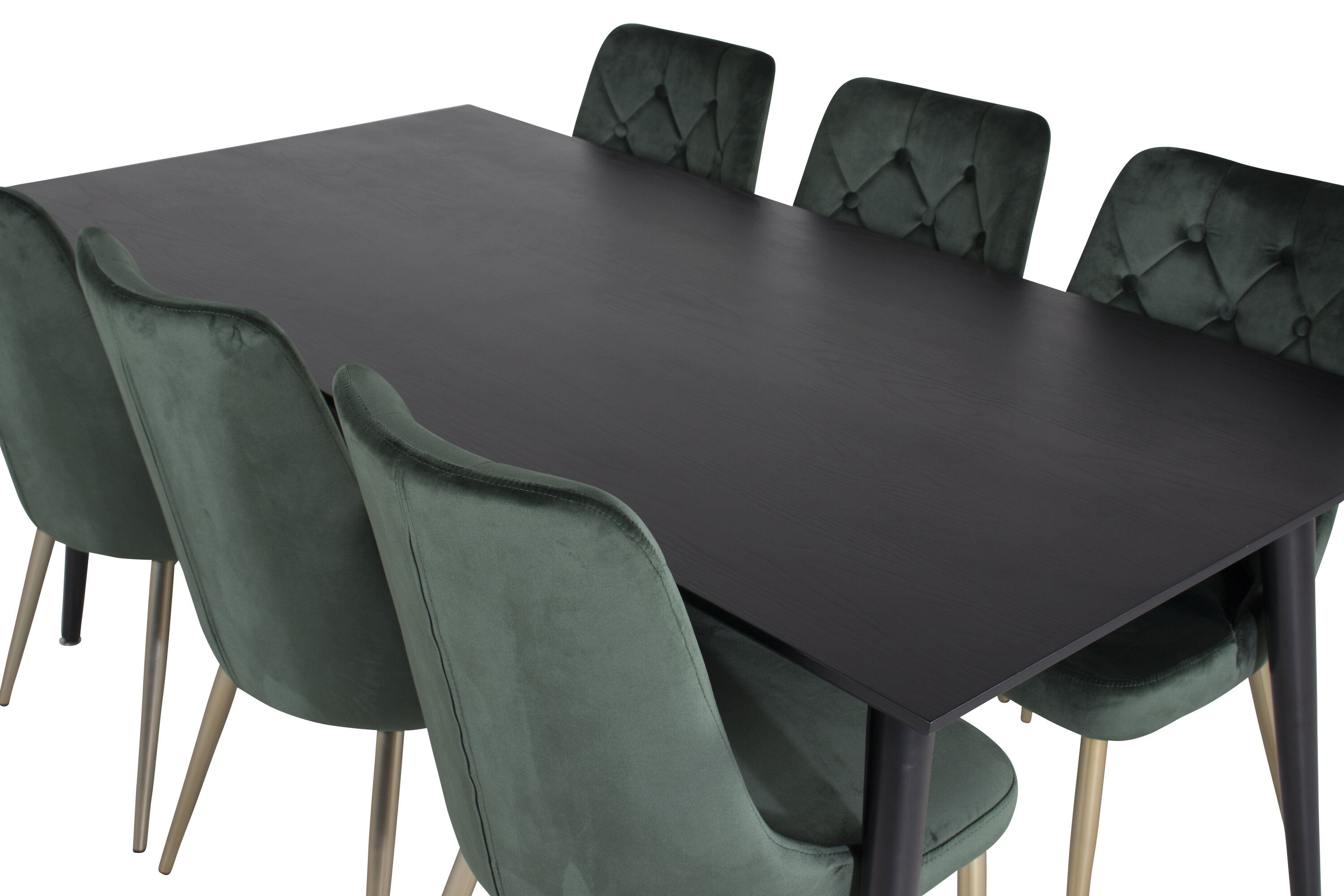 Erinevate värvide ja erinevate materjalide kombineerimine teeb kõik tavaliselt suurepäraselt. Meie söögilaua kastmega ja sametist söögitoolidega saate kombinatsiooni – moodne, hubane ja ajatu!
