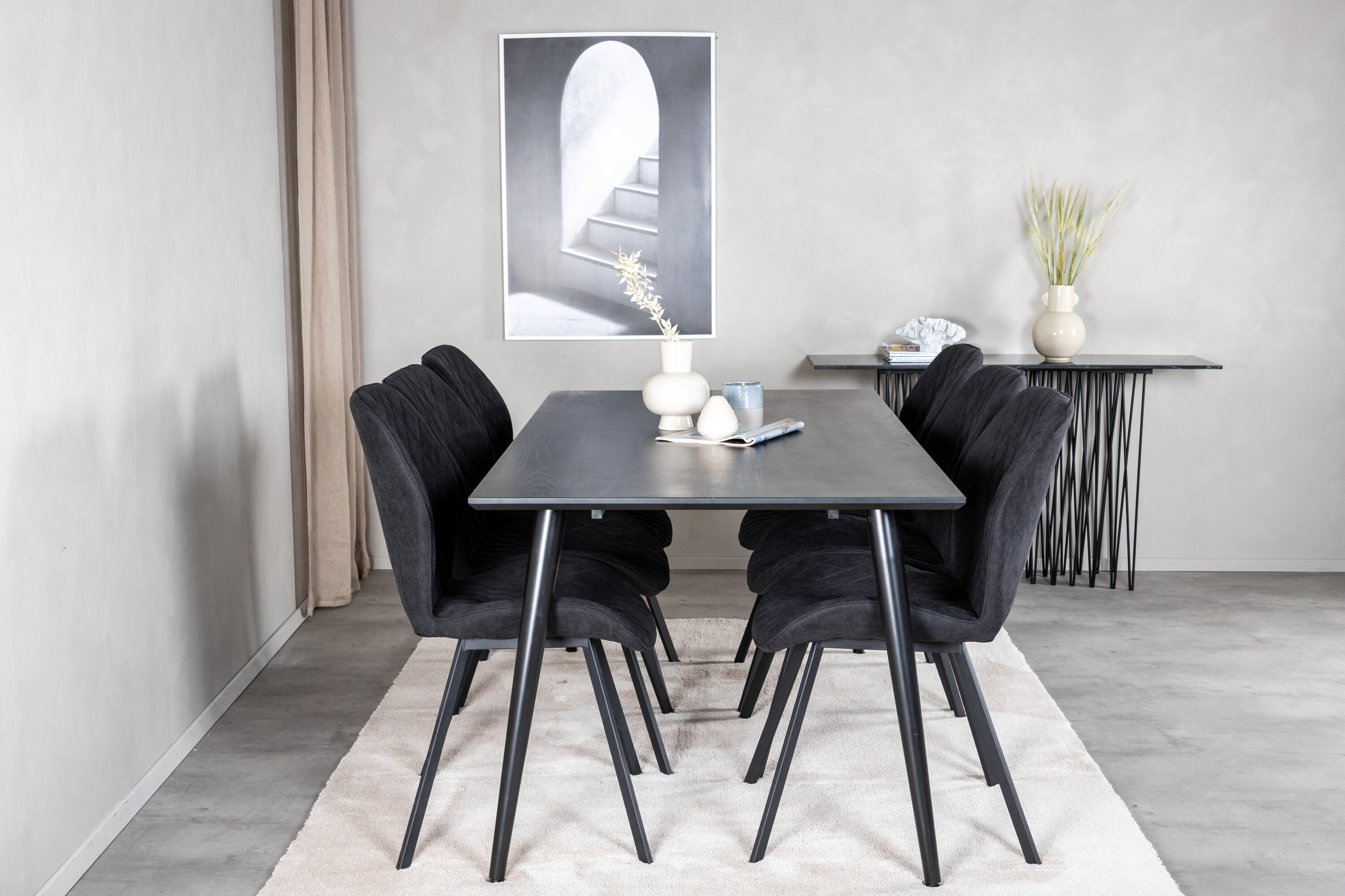 Meie kaasaegne söögilaud koos Gemma sarja mugavate söögitoolidega. Siit saate toidugrupi, mis sisendab otse luksust ja elegantsi. Riietage oma toidugrupp koos muu dekoratsiooniga, mis sobib nii igapäevaeluks kui ka peole!