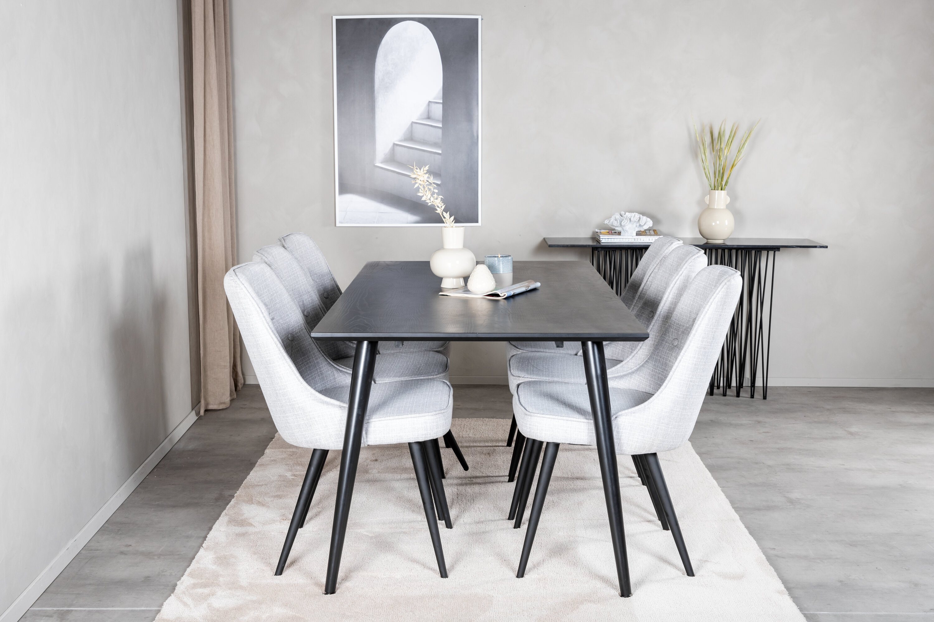 Saagu sellest kaunilt kokkusobivast tänapäevase tunnetusega toidugrupist loomulik kogunemispaik teie kodus. Söögitoolid Velvet on hea mugavusega ja söögilaua dipsid ei pea muretsema, et kõigil oleks ruumi.