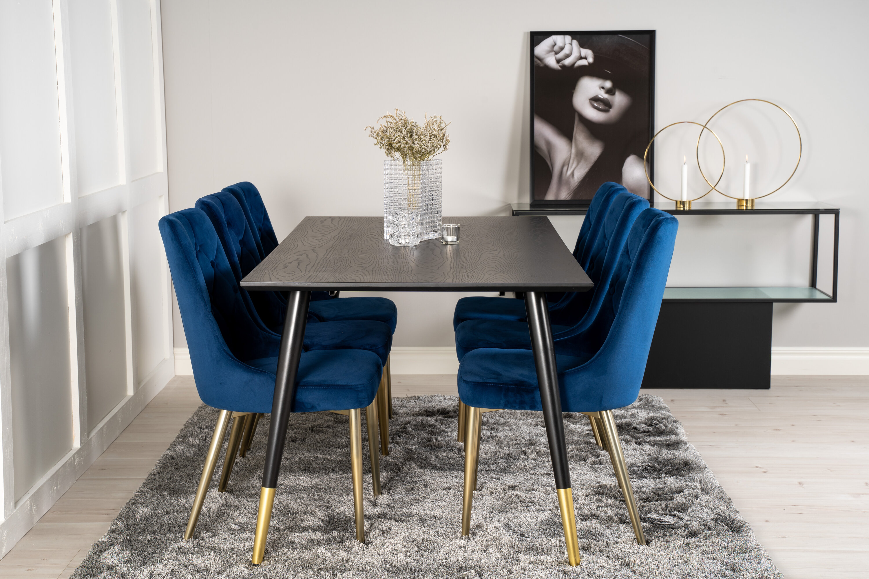 Söögilaud on kokku pandud Velvet sarja pehmetest toolidest, mis on kenasti sobitatud laua veermiku ja toolide jalgadega. Toidugrupp, mis sisendab otse luksust ja elegantsi!