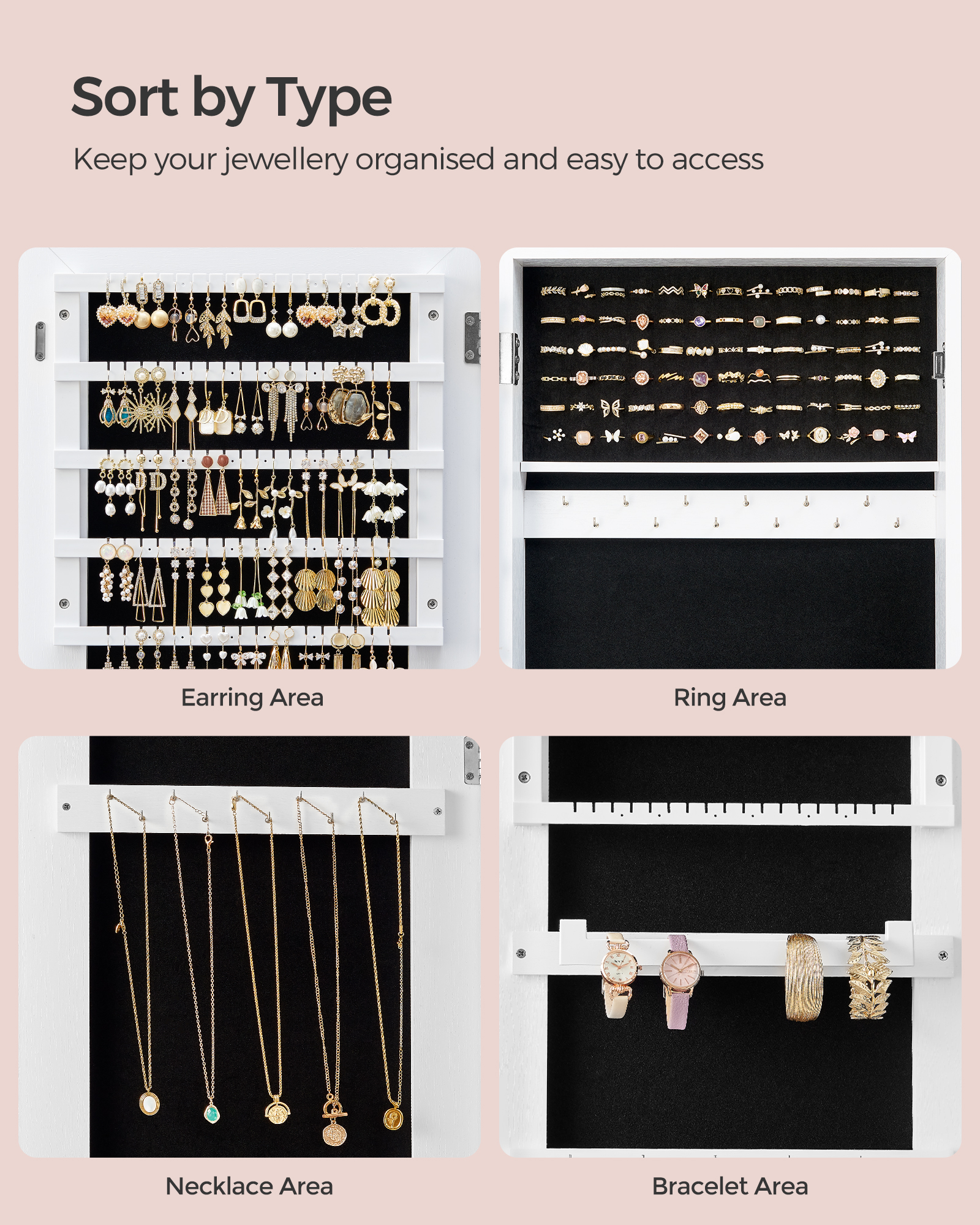 Spetsifikatsioonid: – Värvus: Valge – Materjal: MDF (keskmise tihedusega puitkiudplaat) – Kogumõõtmed: 41,1 x 36,5 x 151,5 cm (P x L x K) – Kapi korpuse mõõtmed: 37,2 x 9,5 x 108,3 cm (P x L x K) – Toote kaal: 11,3 kg Pakisisu: – 1 x ehtekapp – 1 x tarvikute komplekt – 1 x juhend