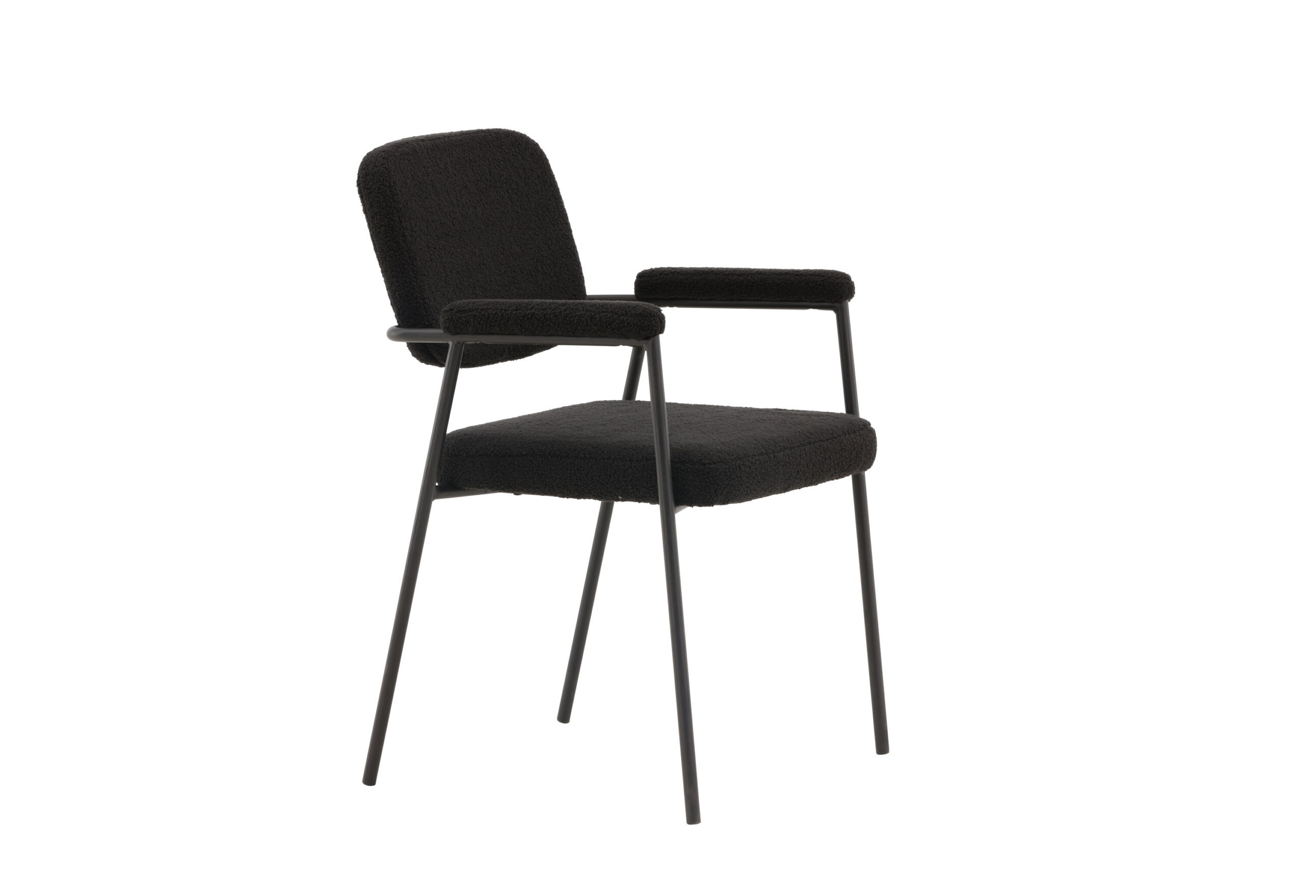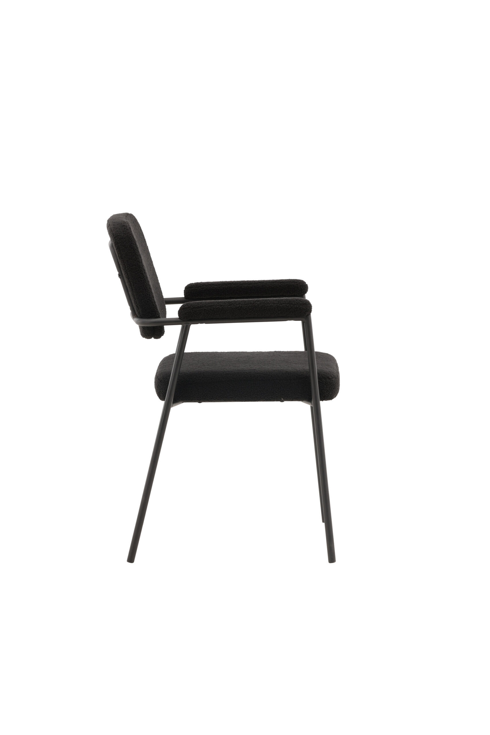 Sisusta oma kodu võluvalt ja kutsuvalt Yesterday sarja trendikate söögitoolidega! Sellel stiilsel Skandinaavia disainiga toolil on täielikult polsterdatud mustast bouclé-kangast iste ja õhukesed toolijalad koos integreeritud mustast metallist käetugedega. Pehme iste on täiendava mugavuse tagamiseks polsterdatud ja kutsub teid pikkadele nauditavatele õhtusöökidele. Ühendage see kauni söögilauaga, et luua terviklik söögikomplekt oma kodu südamesse!