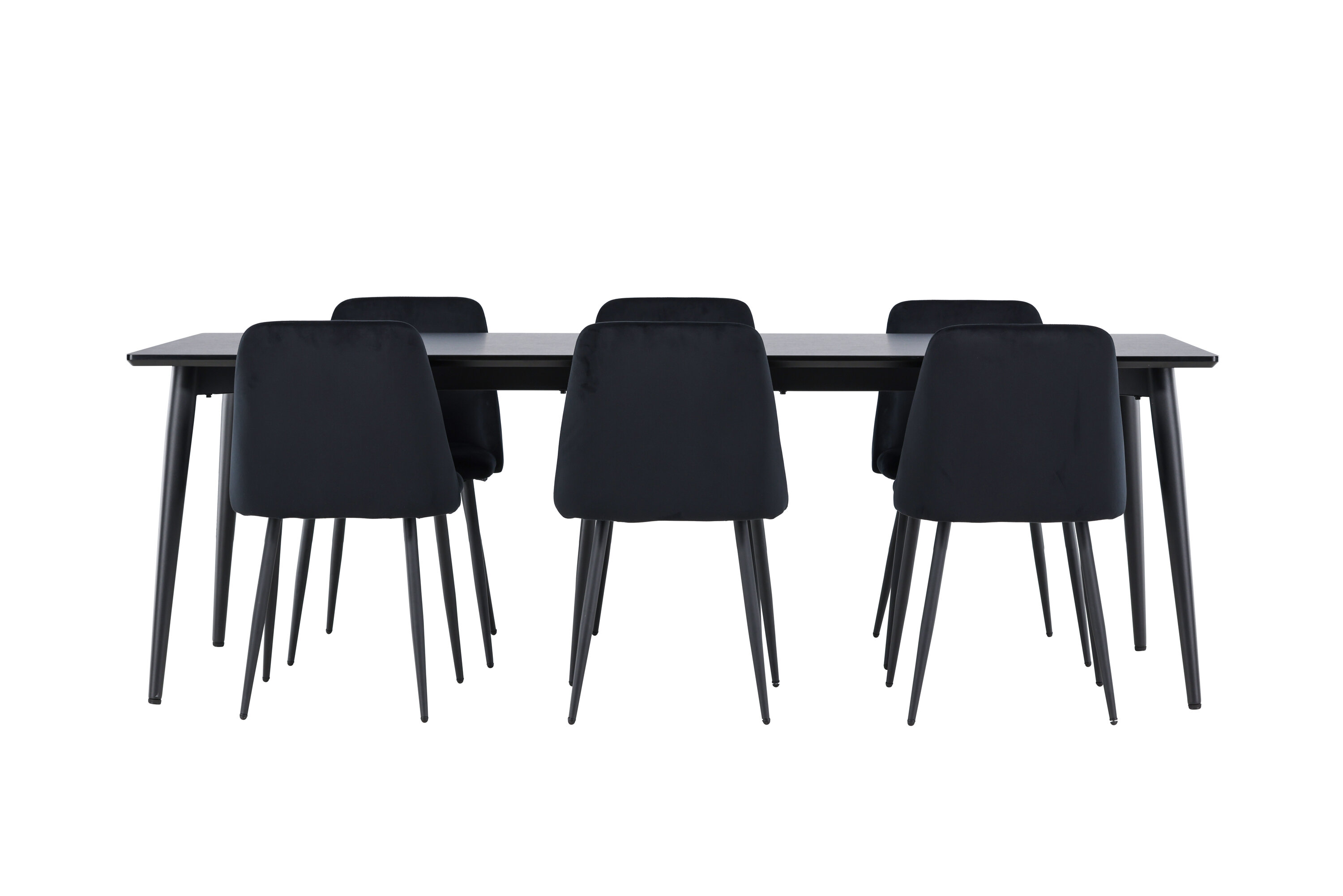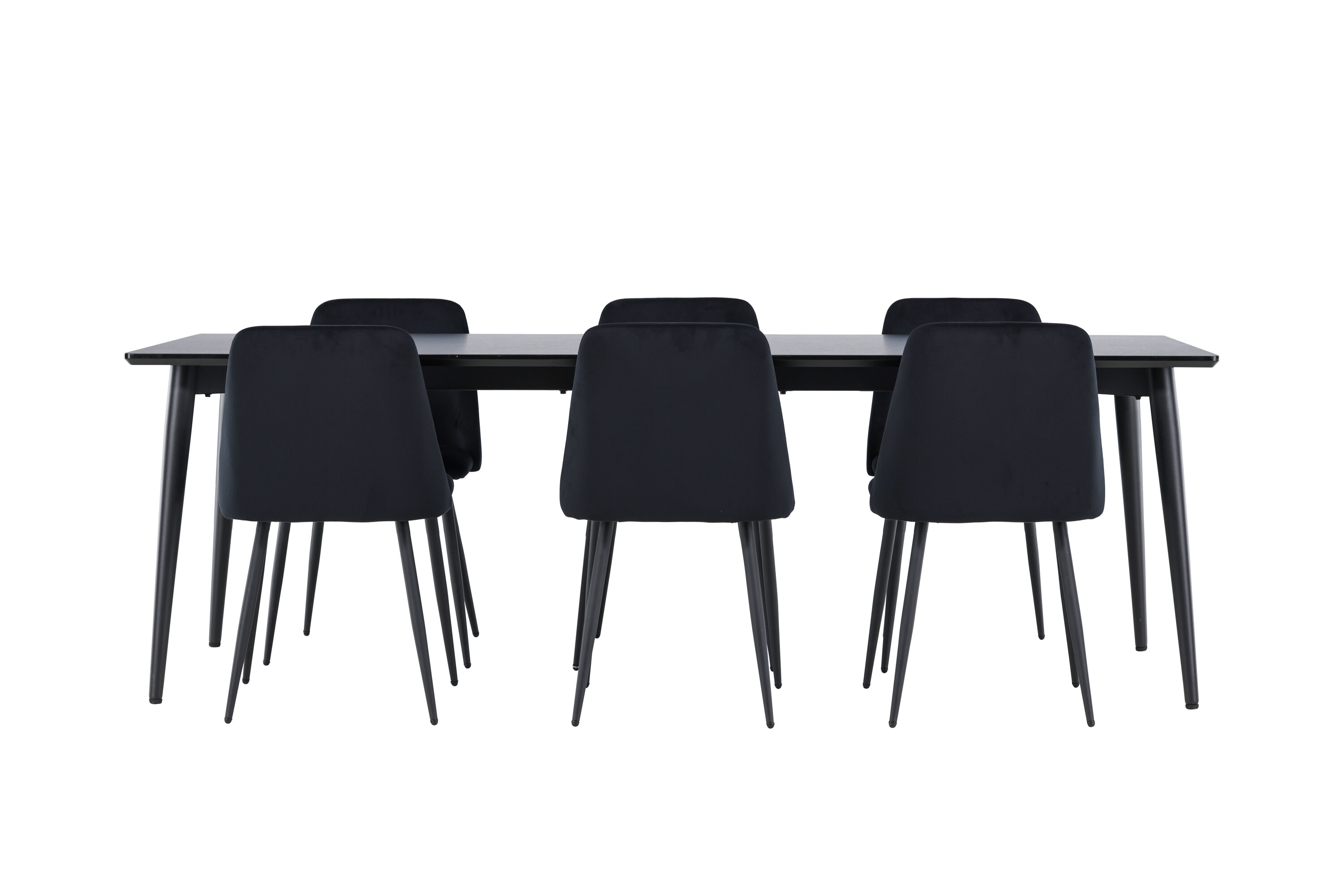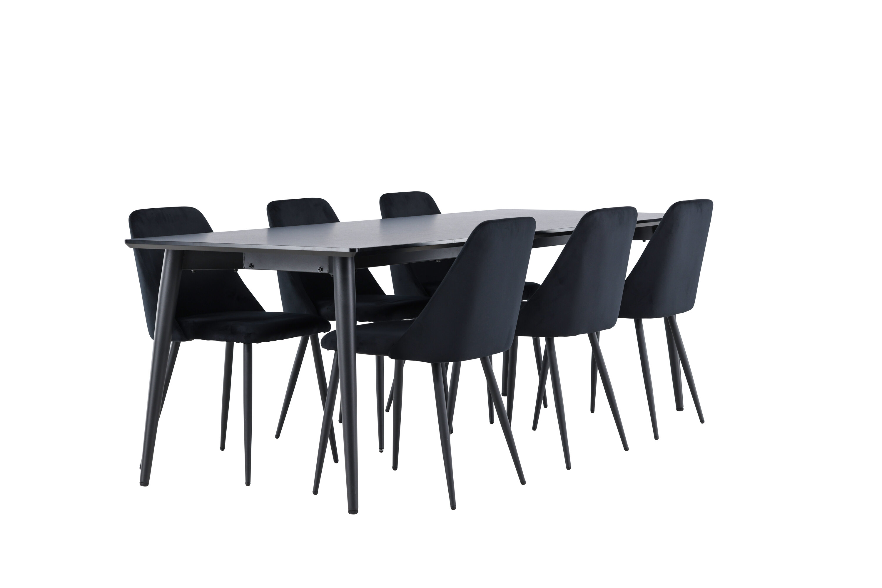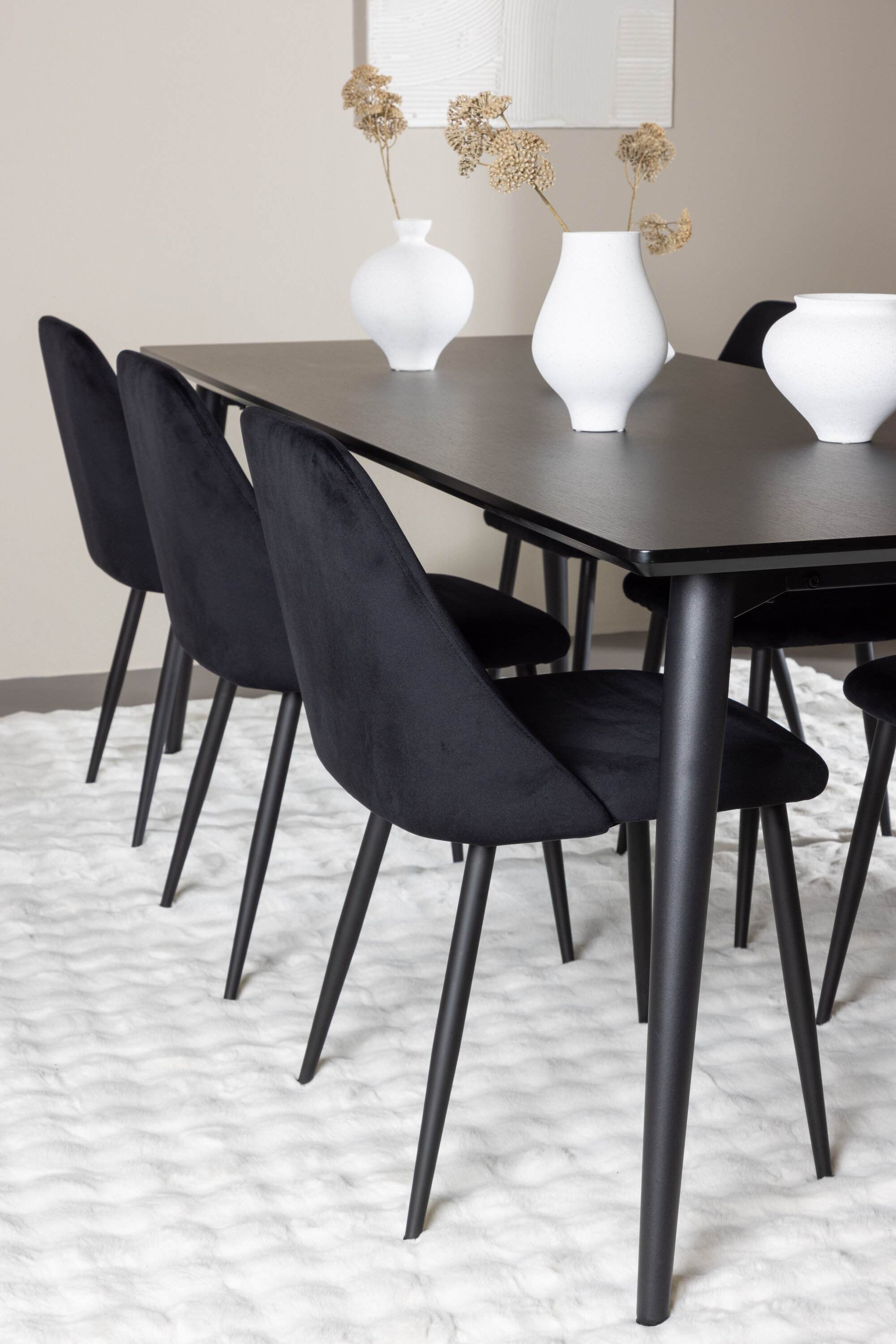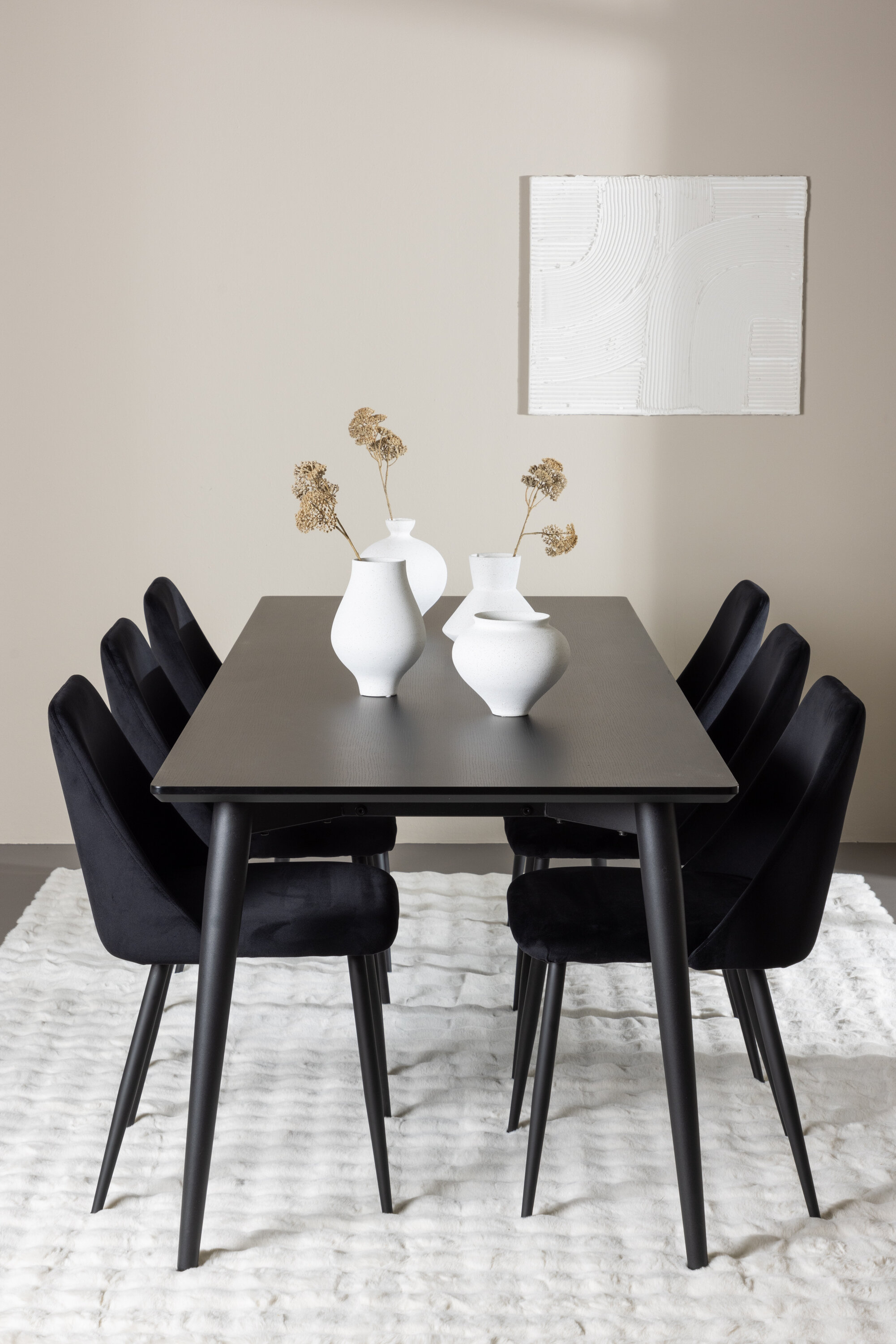 Avastage täiuslik söögikomplekt koos NIGHT sarja söögitooli ja söögilauaga Ellis – kombinatsioon, millest õhkub nii elegantsi kui ka robustsust teie koju. NIGHT-seeria söögitool on sama mugav kui ka stiilne. Sellel on täielikult polsterdatud mustast sametkangast iste ja sobivas mustas toonis toolijalad, mis loovad ruumile luksusliku läike ning aitavad kaasa kutsuva ja moeteadliku atmosfääri loomisele. Maitsva eine jaoks maha istudes peaks olema suurepärane tunne! Avastage Ellist, vastupidavat söögilauda, millest saab teie söögikeskkonna keskpunkt. Oma musta värviga lisab Ellis teie toale elegantse ja kaasaegse hõngu. Laud on valmistatud terasest jalgade ja MDF lauaplaadiga, mis tagab täiusliku tasakaalu tugevuse ja stiili vahel. Suurte mõõtmetega 230×85 cm Ellis laud sobib suurepäraselt seltskondlikuks õhtusöögiks ning koosviibimiseks sõprade ja perega. Andke oma söögitoale värskendatud elegantsi ja stiili tunnetus NIGHT sarja söögitooli ja söögilauaga Ellis. See söögikomplekt loob trendika ja stiilse atmosfääri ning pakub tasakaalu ajatu disaini ja moodsate detailide vahel, muutes selle ideaalseks valikuks nii igapäevaseks õhtusöögiks kui ka pidulikuks sündmuseks.