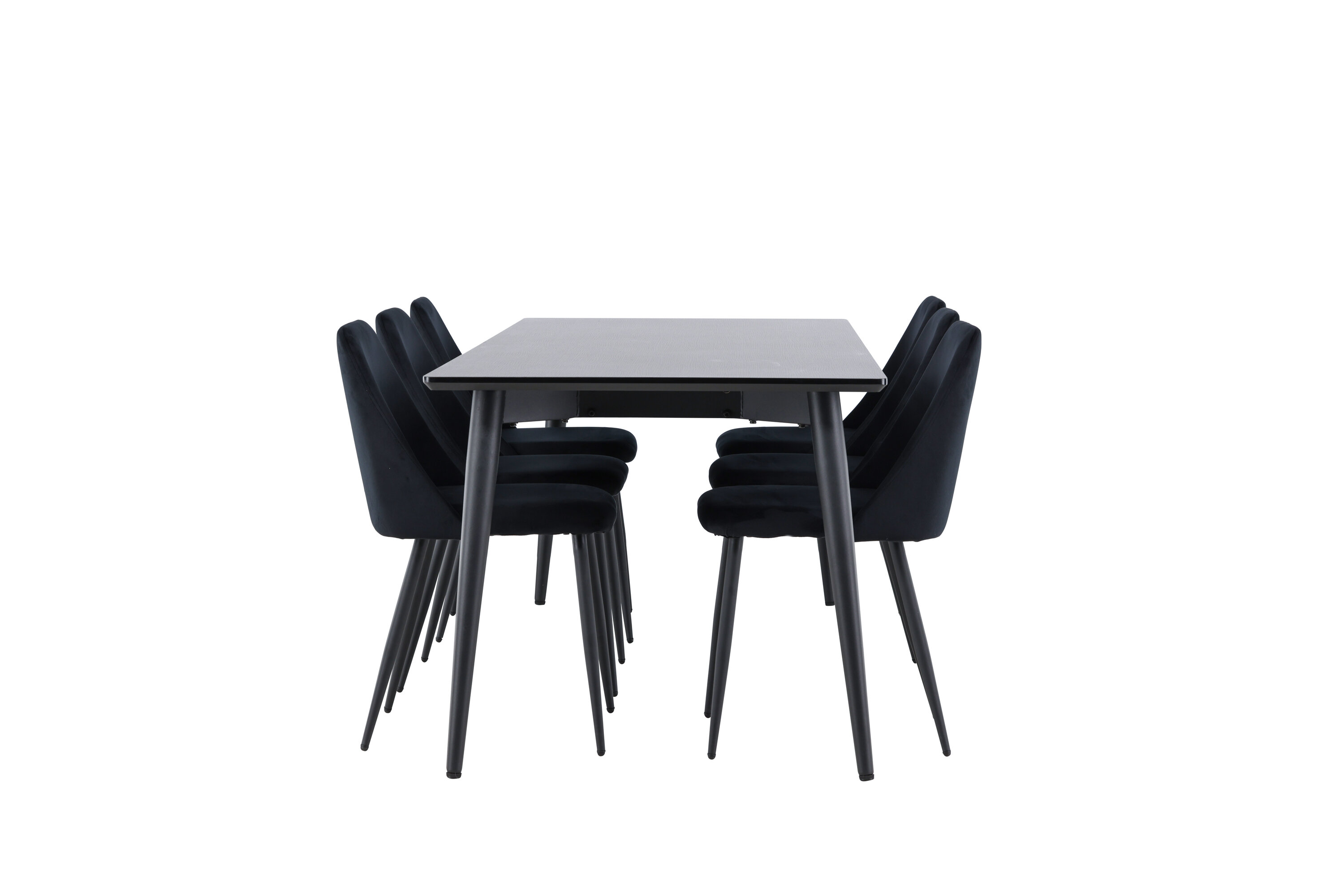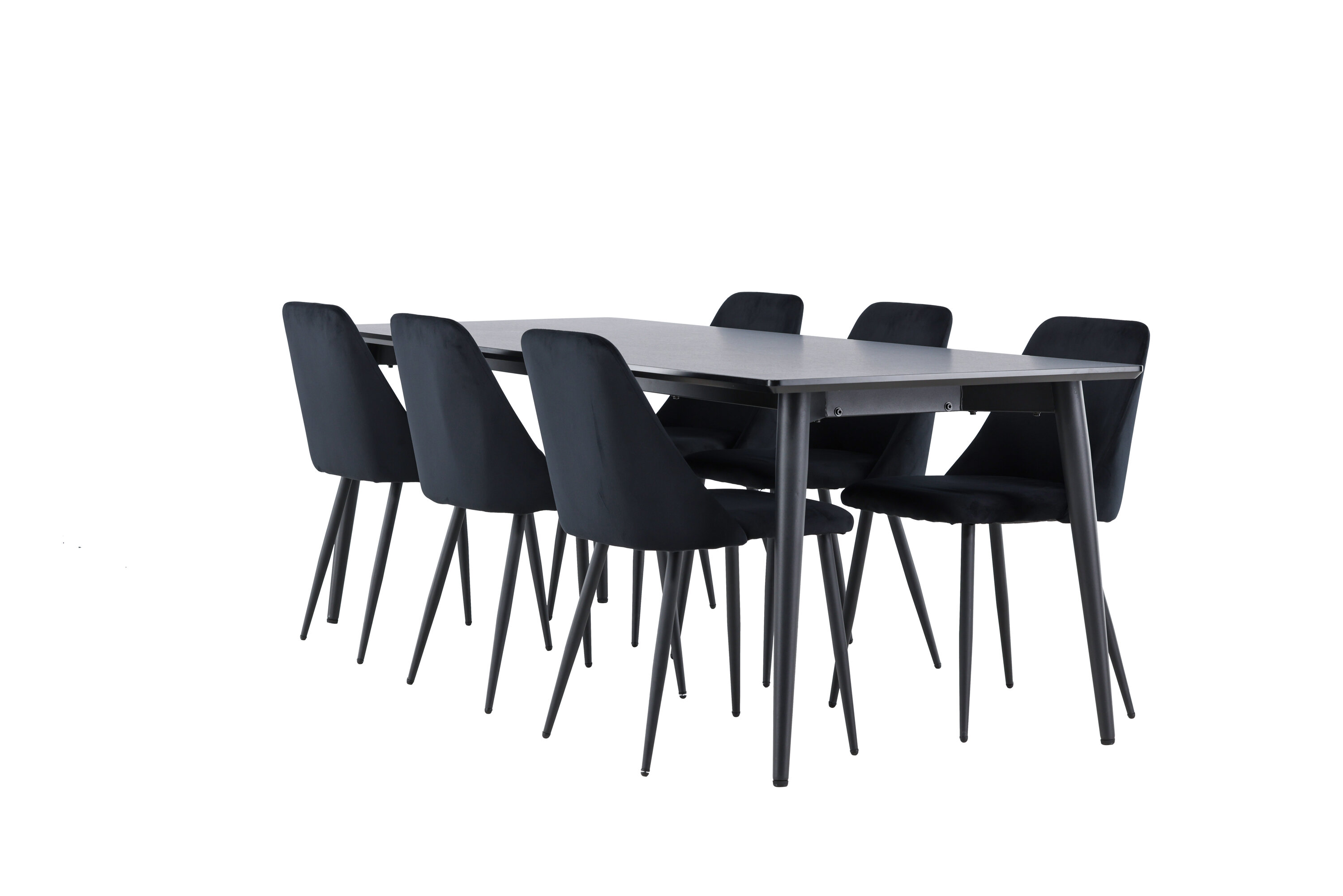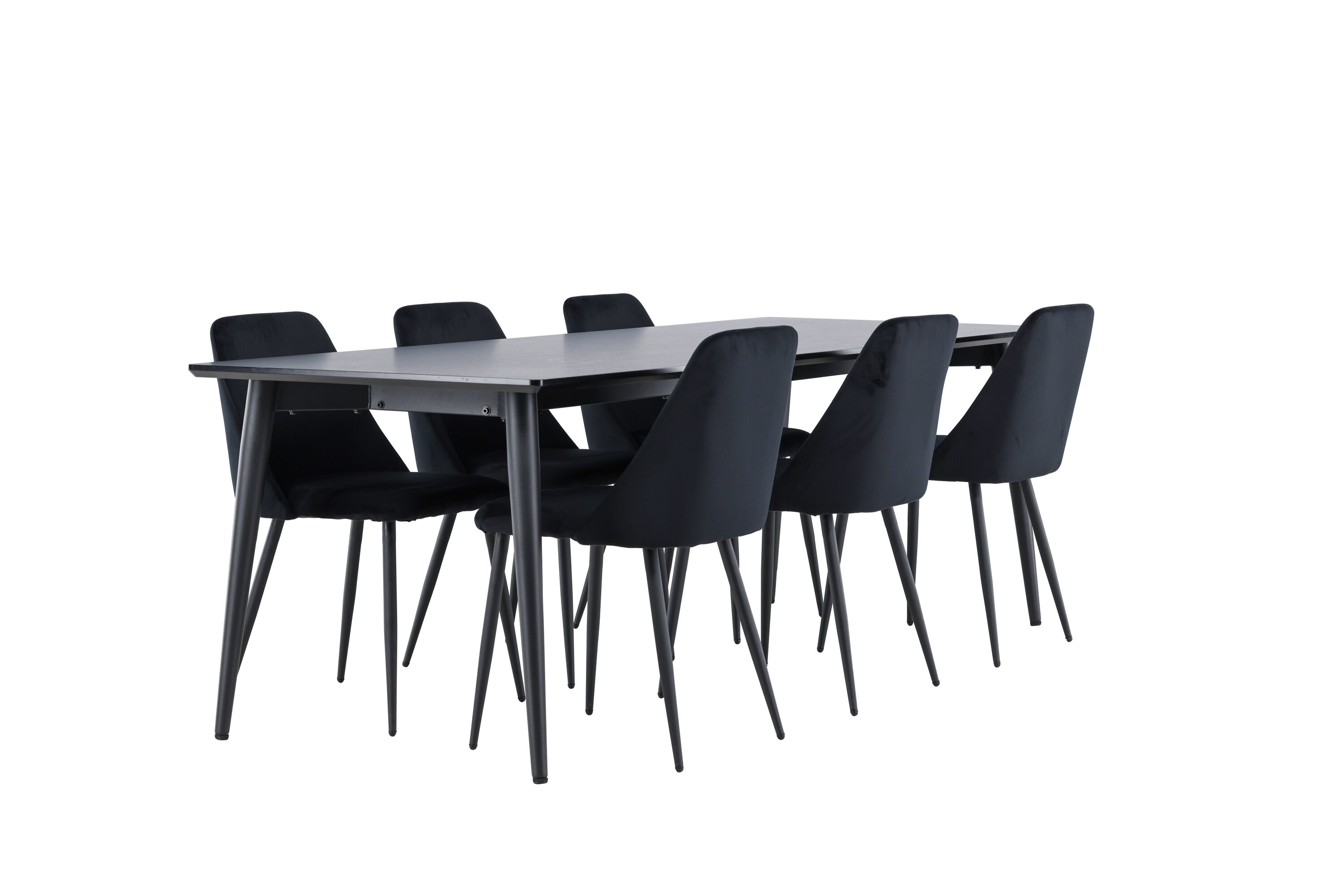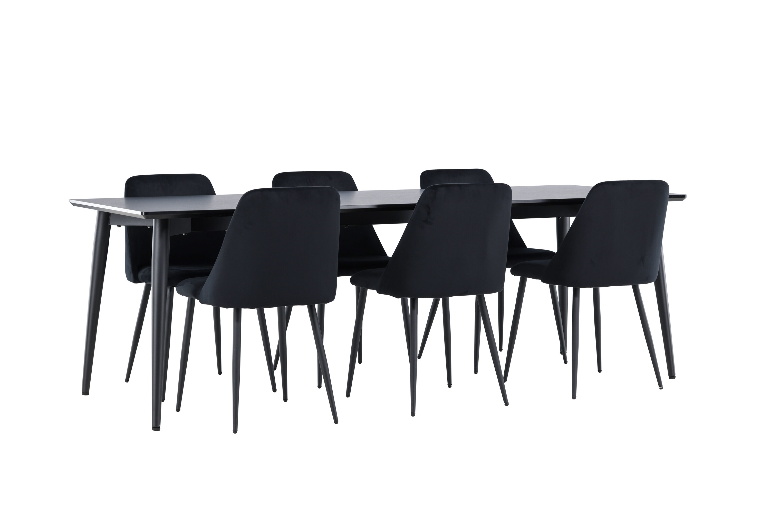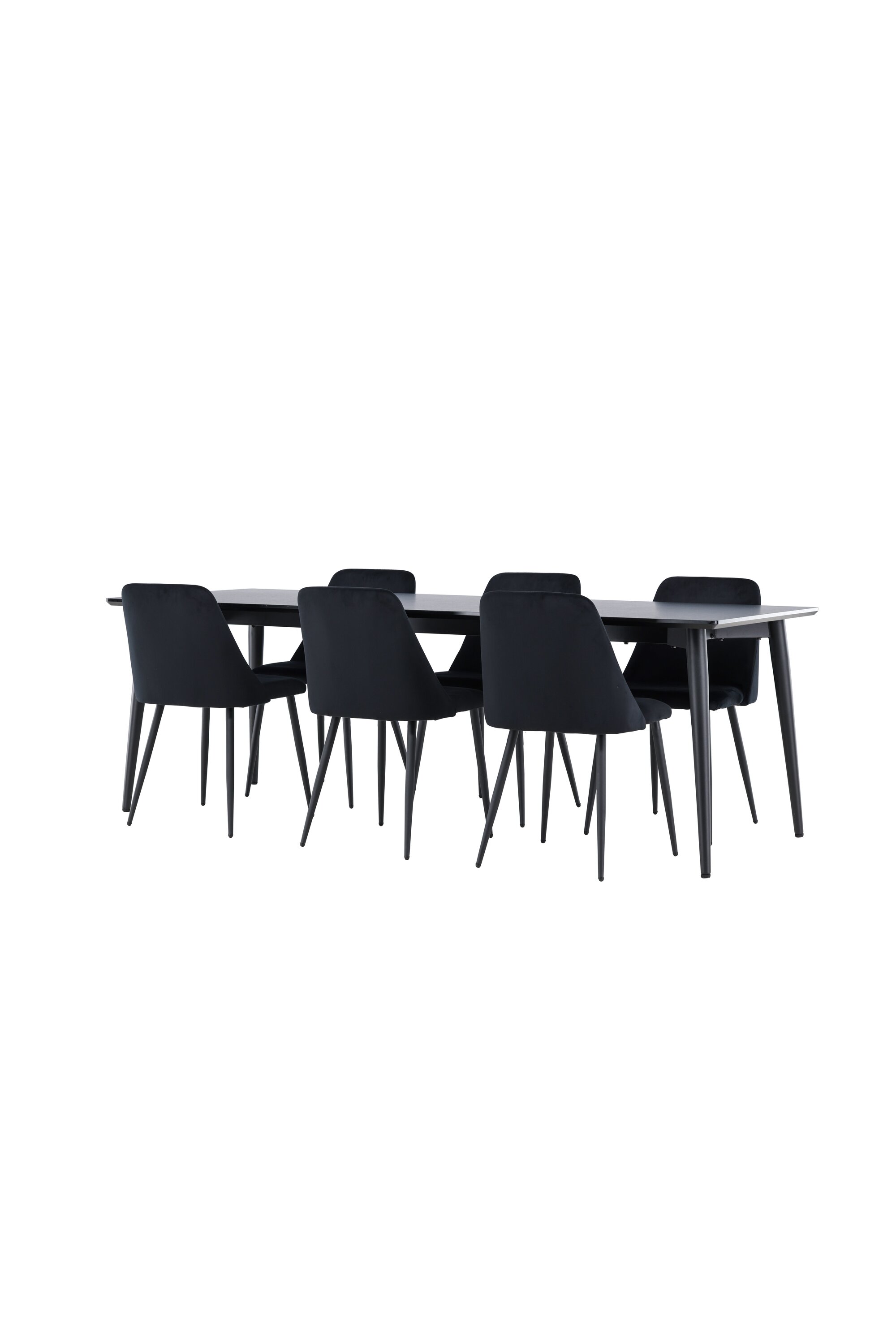 Avastage täiuslik söögikomplekt koos NIGHT sarja söögitooli ja söögilauaga Ellis – kombinatsioon, millest õhkub nii elegantsi kui ka robustsust teie koju. NIGHT-seeria söögitool on sama mugav kui ka stiilne. Sellel on täielikult polsterdatud mustast sametkangast iste ja sobivas mustas toonis toolijalad, mis loovad ruumile luksusliku läike ning aitavad kaasa kutsuva ja moeteadliku atmosfääri loomisele. Maitsva eine jaoks maha istudes peaks olema suurepärane tunne! Avastage Ellist, vastupidavat söögilauda, millest saab teie söögikeskkonna keskpunkt. Oma musta värviga lisab Ellis teie toale elegantse ja kaasaegse hõngu. Laud on valmistatud terasest jalgade ja MDF lauaplaadiga, mis tagab täiusliku tasakaalu tugevuse ja stiili vahel. Suurte mõõtmetega 230×85 cm Ellis laud sobib suurepäraselt seltskondlikuks õhtusöögiks ning koosviibimiseks sõprade ja perega. Andke oma söögitoale värskendatud elegantsi ja stiili tunnetus NIGHT sarja söögitooli ja söögilauaga Ellis. See söögikomplekt loob trendika ja stiilse atmosfääri ning pakub tasakaalu ajatu disaini ja moodsate detailide vahel, muutes selle ideaalseks valikuks nii igapäevaseks õhtusöögiks kui ka pidulikuks sündmuseks.