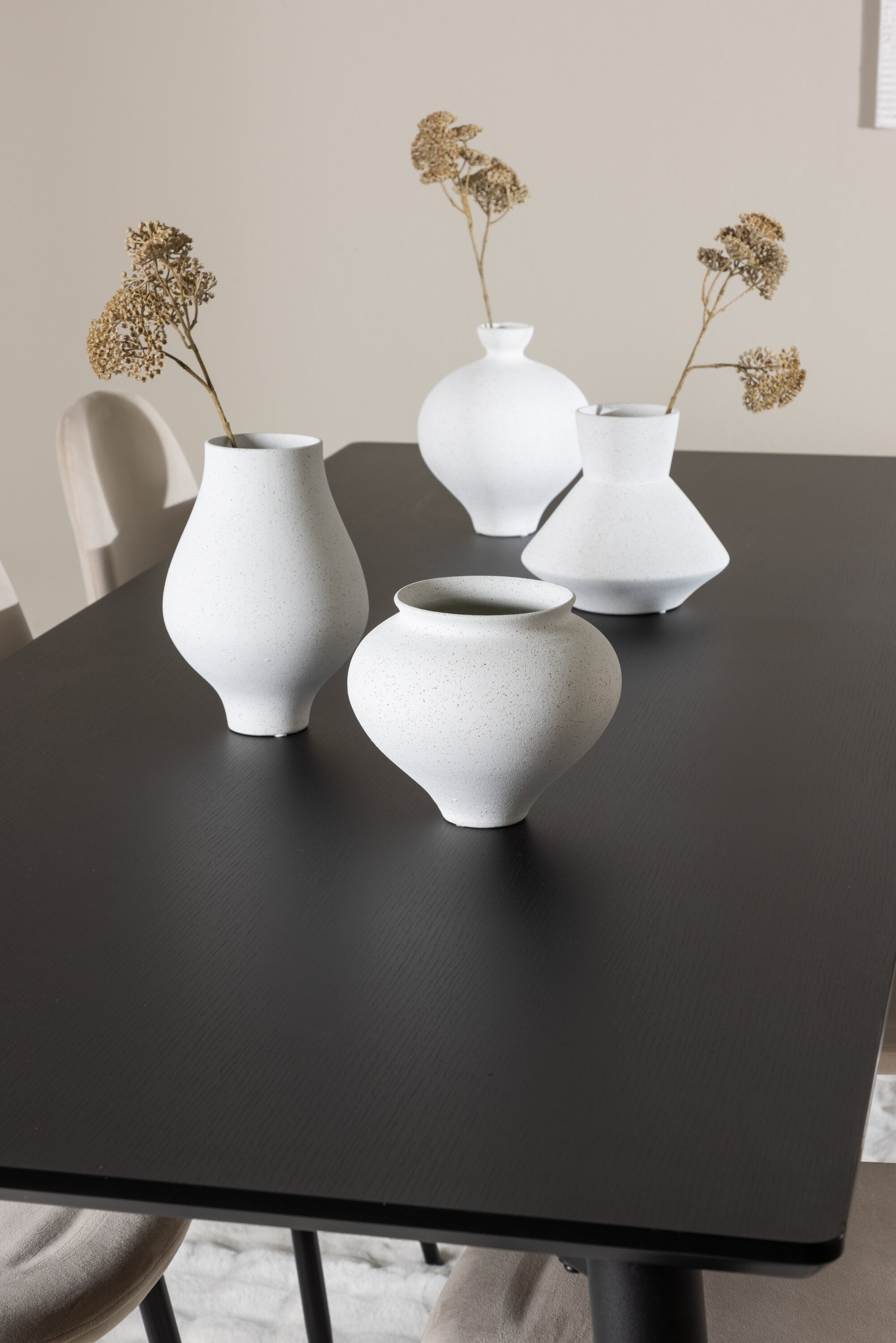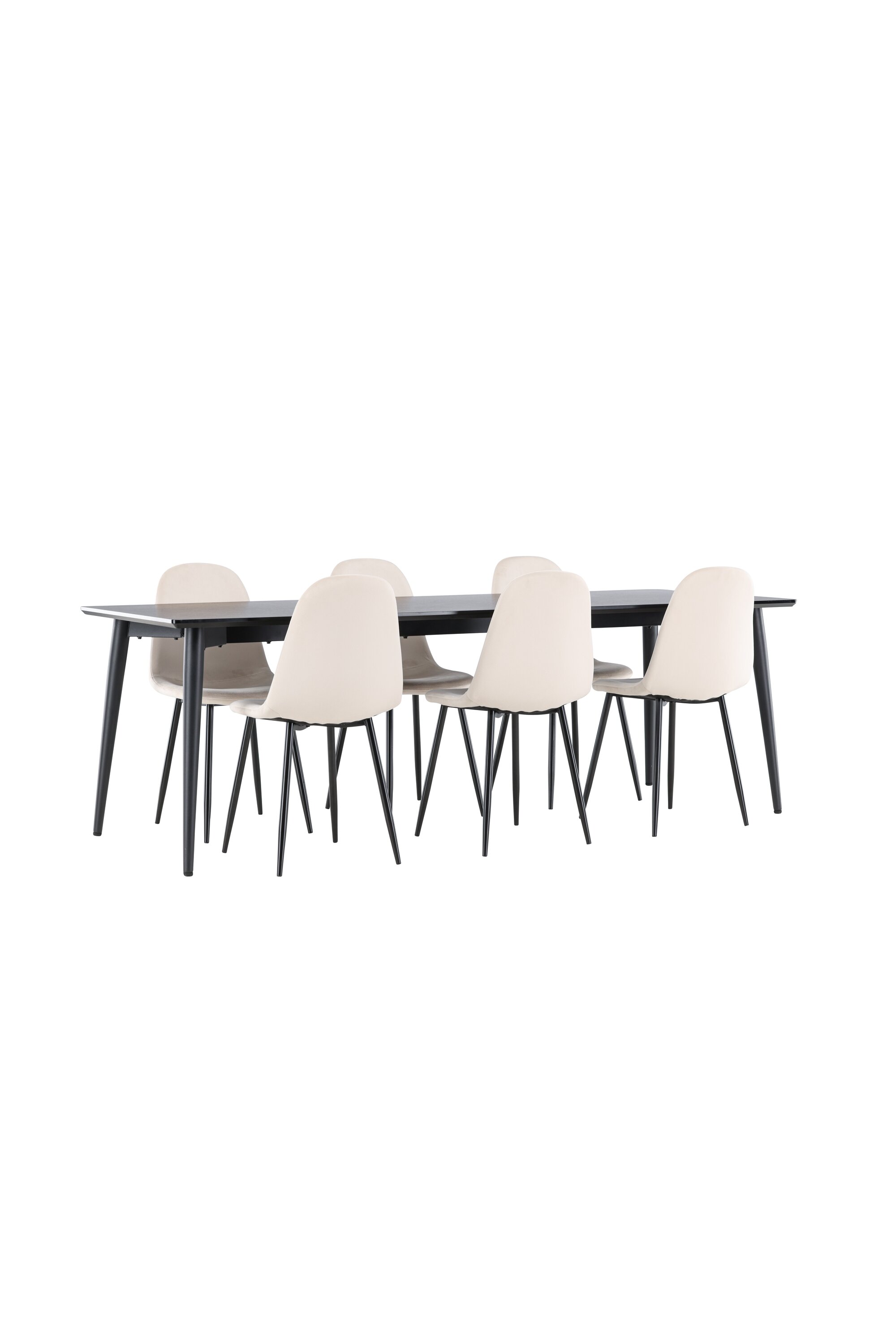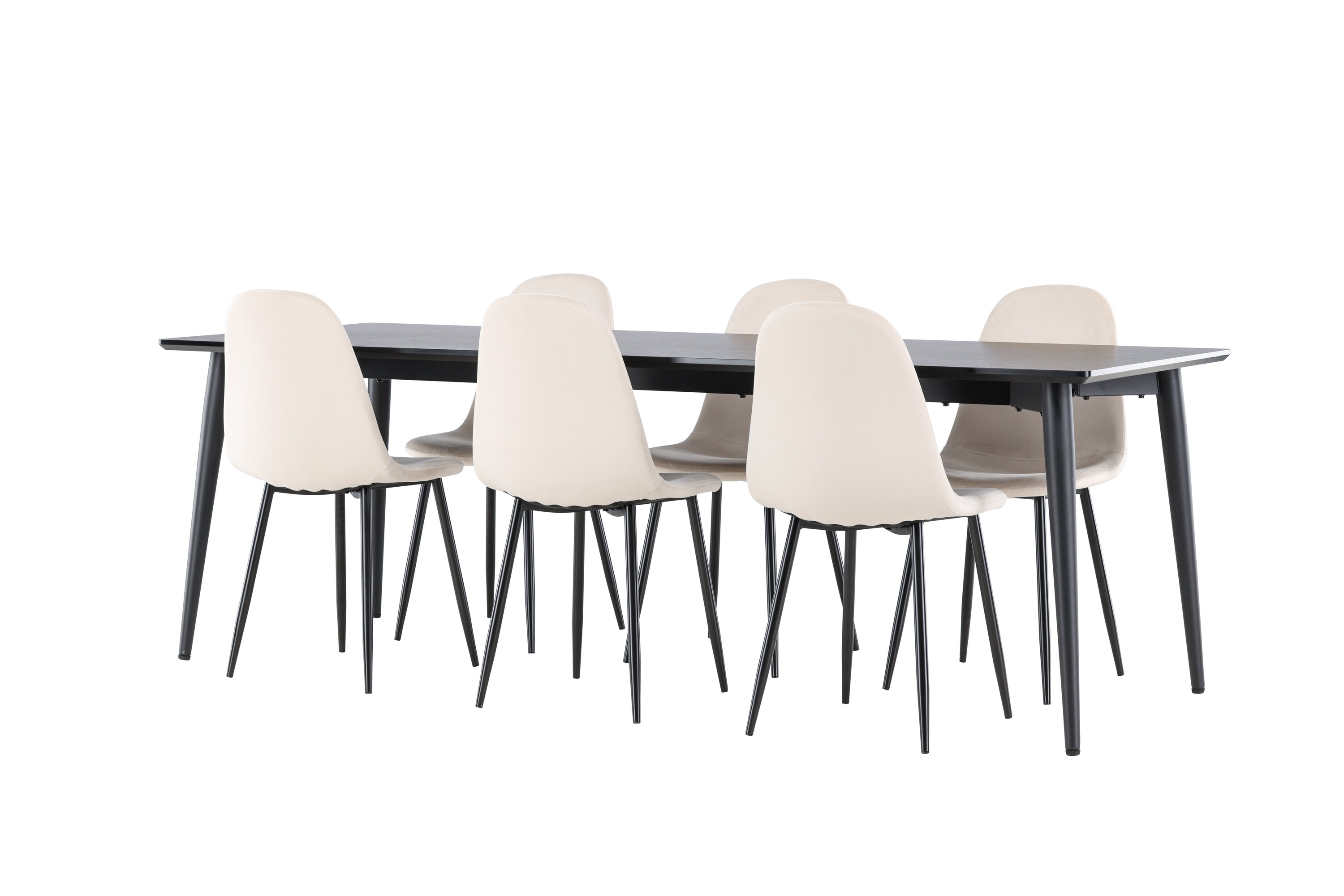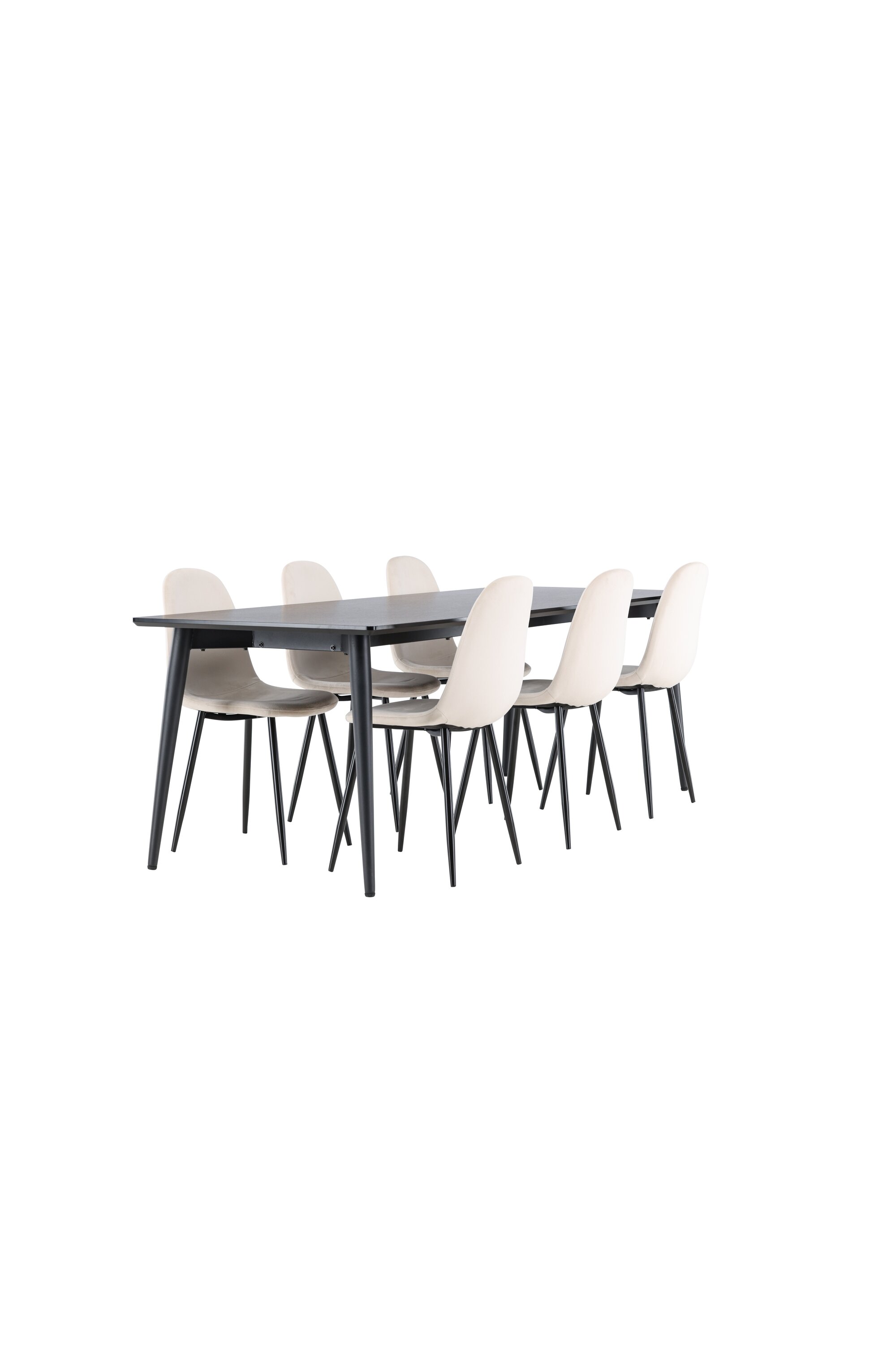 Avastage täiuslik söögikomplekt Polari söögitooli ja söögilauaga Ellis – kombinatsioon, millest õhkub nii elegantsi kui ka robustsust teie koju. Polar on stiilses beežis värvitoonis moodne unistuste tool. Sellel söögitoolil on täielikult polsterdatud disain, millel on sametkangast veidi ümar seljatugi ja iste ning musta pulbervärvitud metallist jalad. See on sama mugav kui ka pilkupüüdev, mistõttu sobib see suurepäraselt kodu südame kutsuval ja hubasel viisil sisustamiseks. Nautige maitsvaid eineid pere ja sõpradega! Avastage Ellist, vastupidavat söögilauda, millest saab teie söögikeskkonna keskpunkt. Oma musta värviga lisab Ellis teie toale elegantse ja kaasaegse hõngu. Laud on valmistatud terasest jalgade ja MDF lauaplaadiga, mis tagab täiusliku tasakaalu tugevuse ja stiili vahel. Suurte mõõtmetega 230×85 cm Ellis laud sobib suurepäraselt seltskondlikuks õhtusöögiks ning koosviibimiseks sõprade ja perega. Andke oma söögitoale Polari söögitooli ja Ellis söögilauaga elegantsus ja stiil. See söögikomplekt loob trendika ja stiilse atmosfääri ning pakub tasakaalu ajatu disaini ja moodsate detailide vahel, muutes selle ideaalseks valikuks nii igapäevaseks õhtusöögiks kui ka pidulikuks sündmuseks.