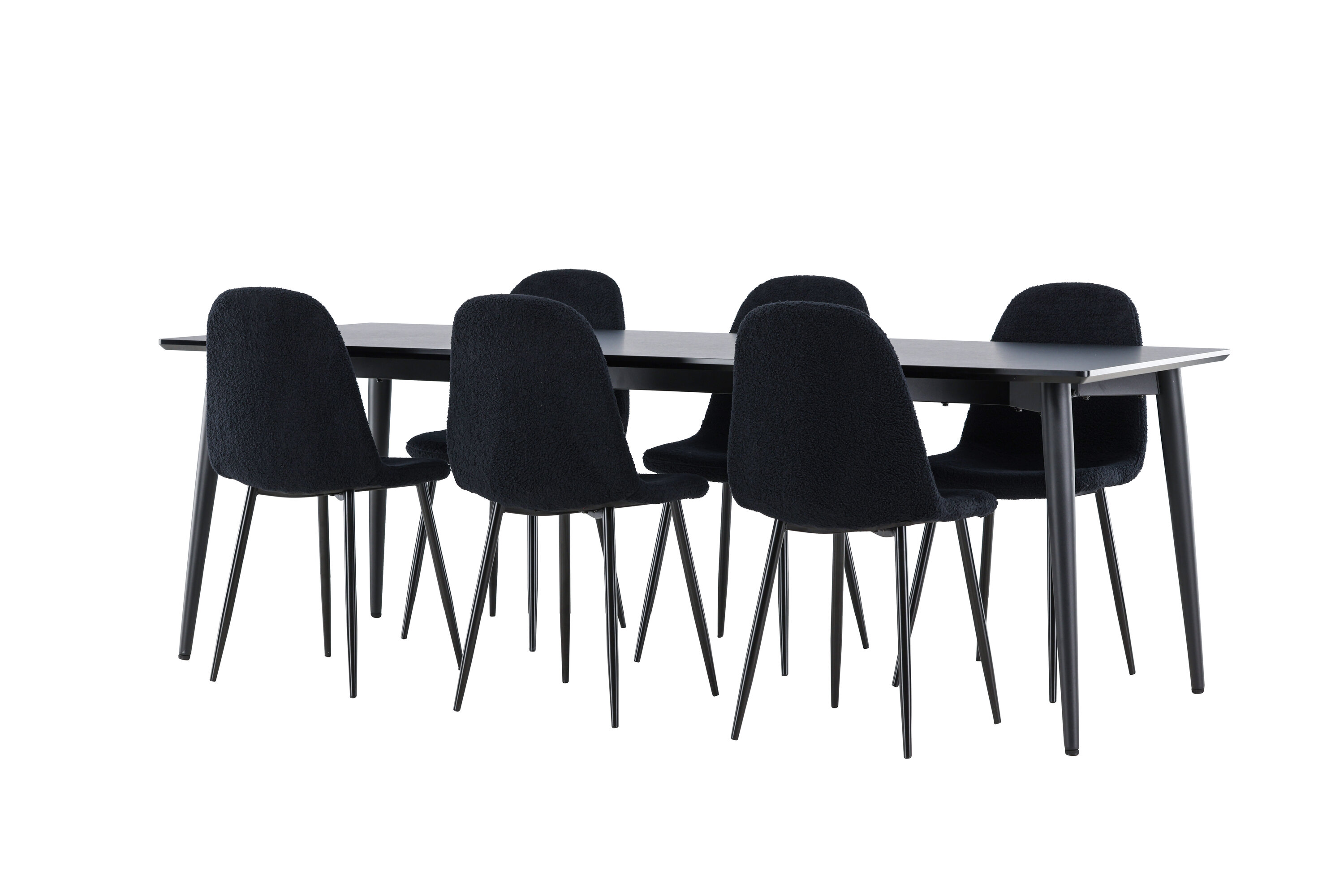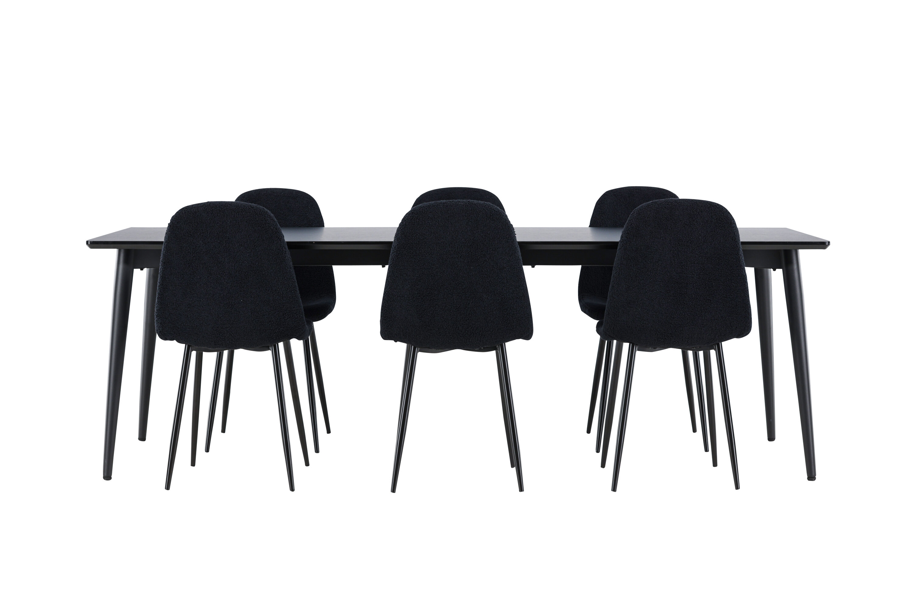 Avasta Polari söögitooli ja Ellise söögilauaga täiuslik söögikomplekt, mis ühendab endas kaasaegse elegantsi ja robustsuse. Üheskoos loovad need stiilse ja kutsuva atmosfääri kõikideks teie söögikordadeks ja koosviibimisteks. Tool on FSC®-sertifikaadiga (FSC®C177288), mis tähendab, et see koosneb vastutustundlikust metsandusest, inimeste ja keskkonnaga arvestavast metsandusest pärit puidust. Polari söögitool on ideaalne kombinatsioon moodsast elegantsist ja lihtsusest teie einestamiskorralduses. Polar on parim valik, et anda oma söögitoale stiilne ja kaasaegne hõng. Tooli sügavmust värv ja polüester teddy materjal annavad eksklusiivse tunde ja pakuvad mugavat istumiskogemust kõikidel õhtusöökidel ja koosviibimistel. Selle kaasaegne disain ja puhtad jooned pakuvad ajatut esteetikat, mis täiendab kõiki interjööri stiile. Polari söögitooli jalad on valmistatud mustast terasest, pakkudes tugevat ja tugevat konstruktsiooni, aidates samal ajal kaasa selle elegantsele välimusele. Oma lihtsuse ja mitmekülgsusega on Polar teie kodu teretulnud täiendus. Täiustage oma söögituba söögitooliga Polar – mugav, kaasaegne ja stiilne tool, mis sobib suurepäraselt igapäevaseks kasutamiseks ja erilistel puhkudel. Avasta Ellis – vastupidav söögilaud, millest saab teie söögikeskkonna keskus. Oma musta värviga lisab Ellis teie toale elegantse ja kaasaegse hõngu. Laud on valmistatud terasest jalgade ja MDF lauaplaadiga, mis tagab täiusliku tasakaalu tugevuse ja stiili vahel. Suurte mõõtmetega 230×85 cm Ellis laud sobib suurepäraselt seltskondlikuks õhtusöögiks ja koosviibimiseks sõprade ja perega. Selle vastupidav konstruktsioon ja elegantne disain muudavad selle usaldusväärseks mööbliesemeks, mis sobib igaks elujuhtumiks. Ükskõik, kas kasutate seda pereõhtusöögi nautimiseks või peo korraldamiseks, loob Ellis teie koju trendika ja stiilse atmosfääri. Täiustage oma söögituba elegantse ja vastupidava Ellis söögilauaga.