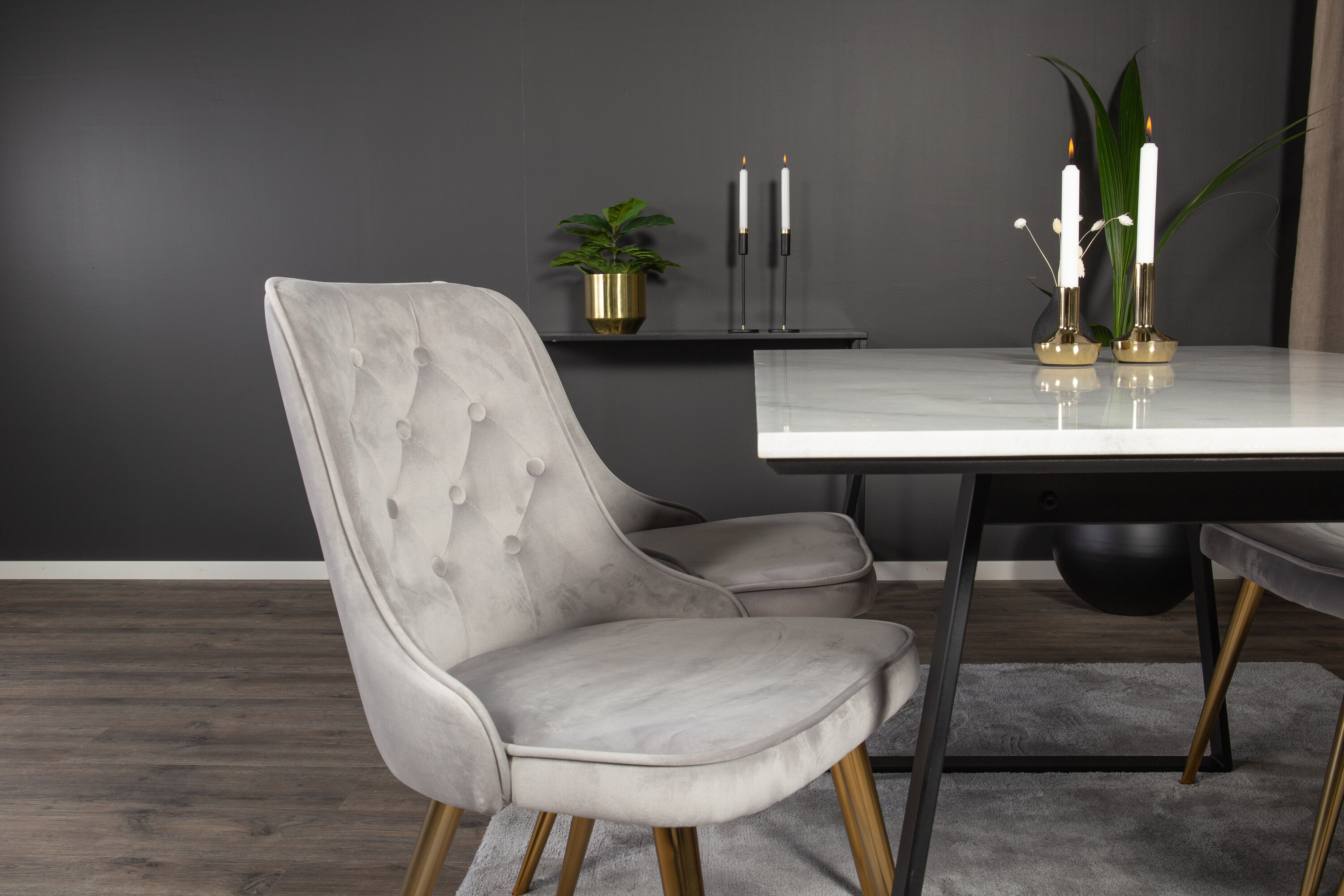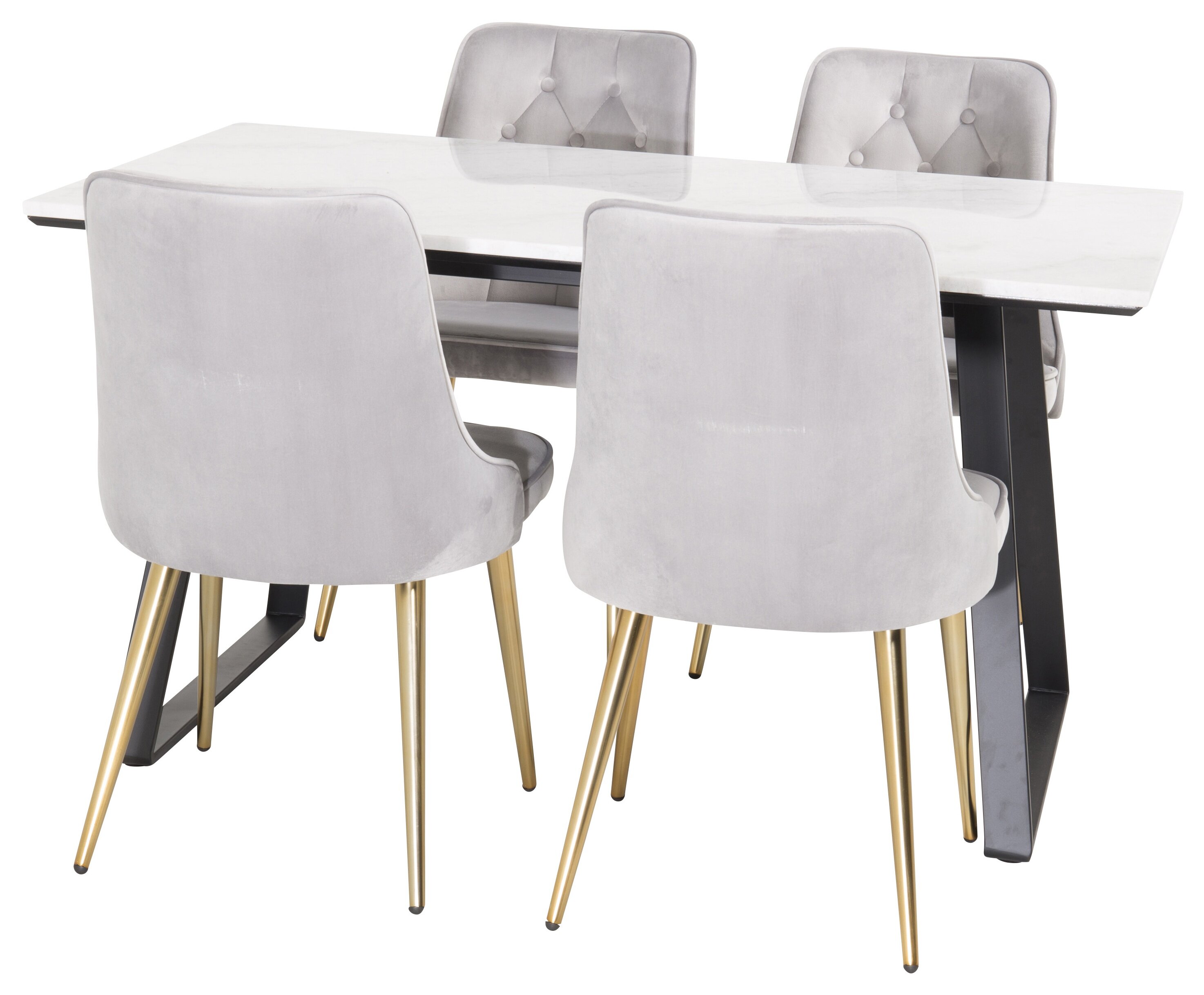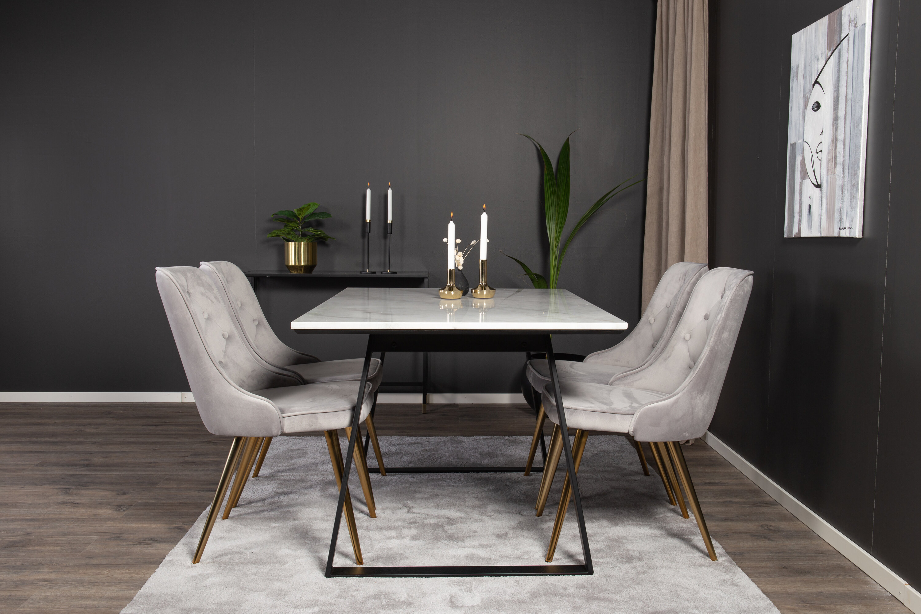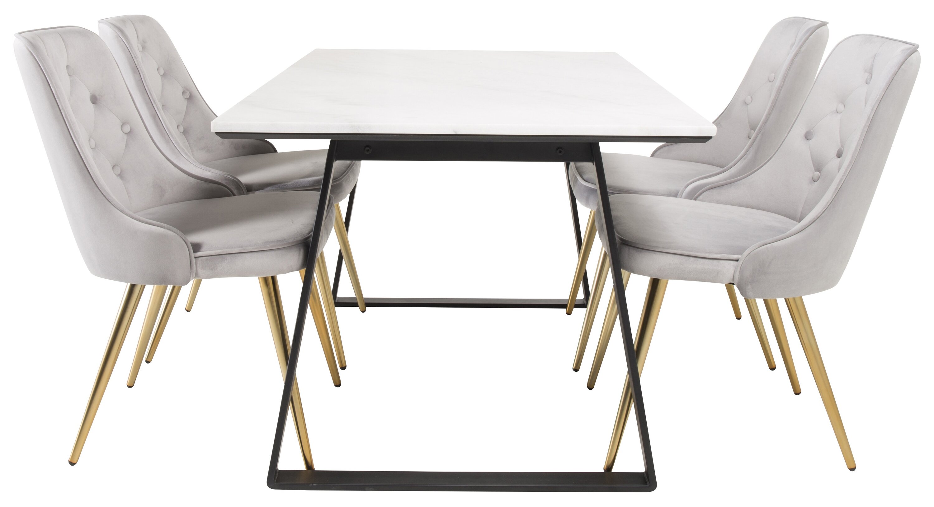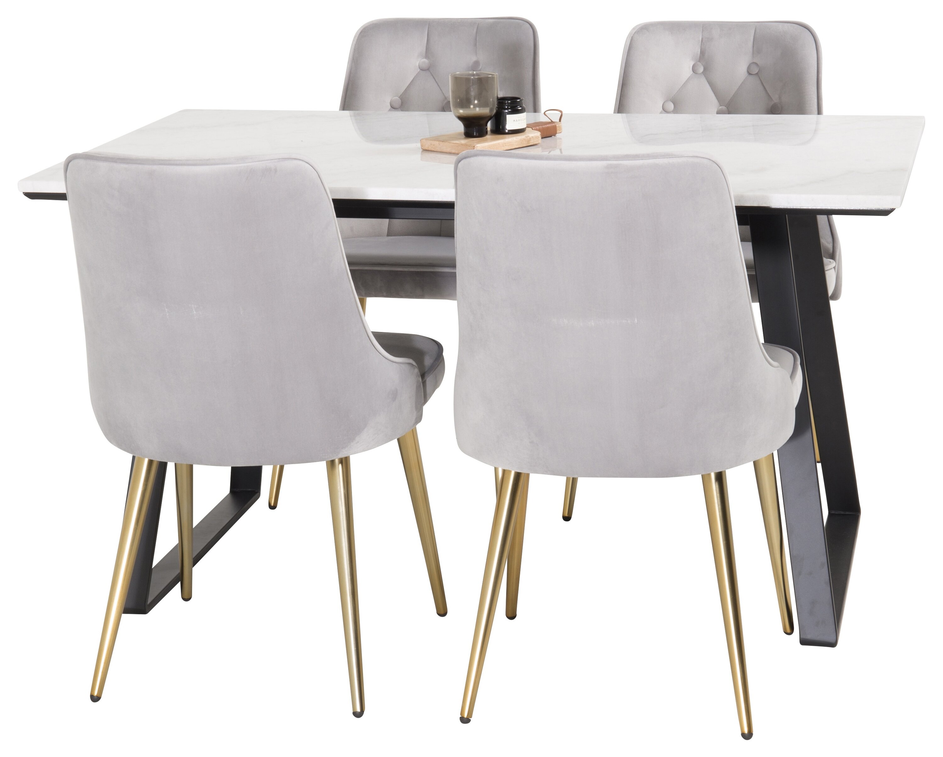 Valmistoidugrupi ostmine on ühtaegu trendikindel ja praktiline! Siin kombineerime oma söögilaua Estelle koos istmesõbralike söögitoolidega Velvet. Lase kodu südant iseloomustada teie uus pilkupüüdev toidugrupp.