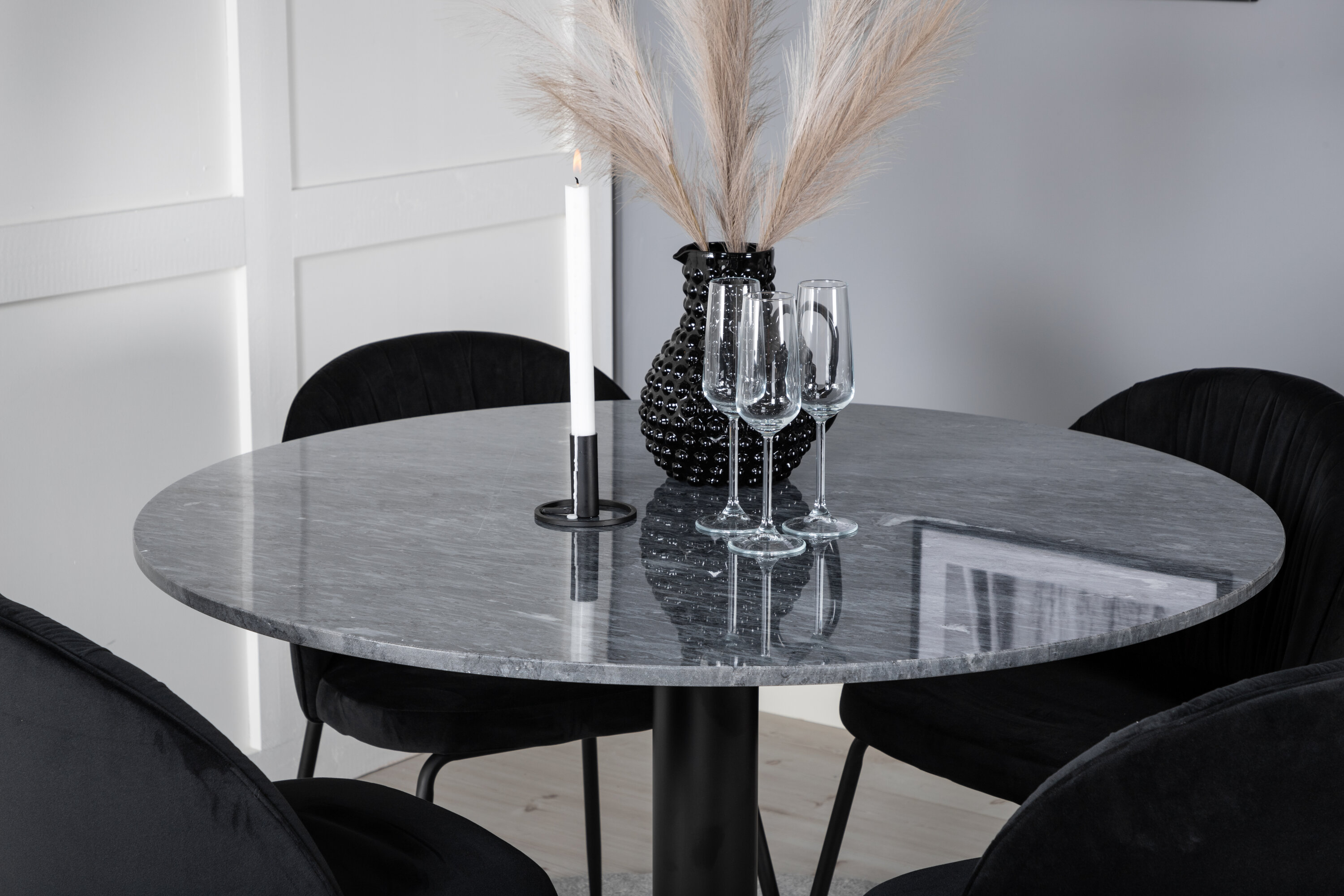Korralik marmorplaadiga söögilaud Estelle sarjast, siin koos kaunite söögitoolidega Wrinkles – ideaalne kombinatsioon neile, kes soovivad trendikat toidugruppi. Las söögilauas veedetud aeg saab üheks tänase päeva tipphetkeks!