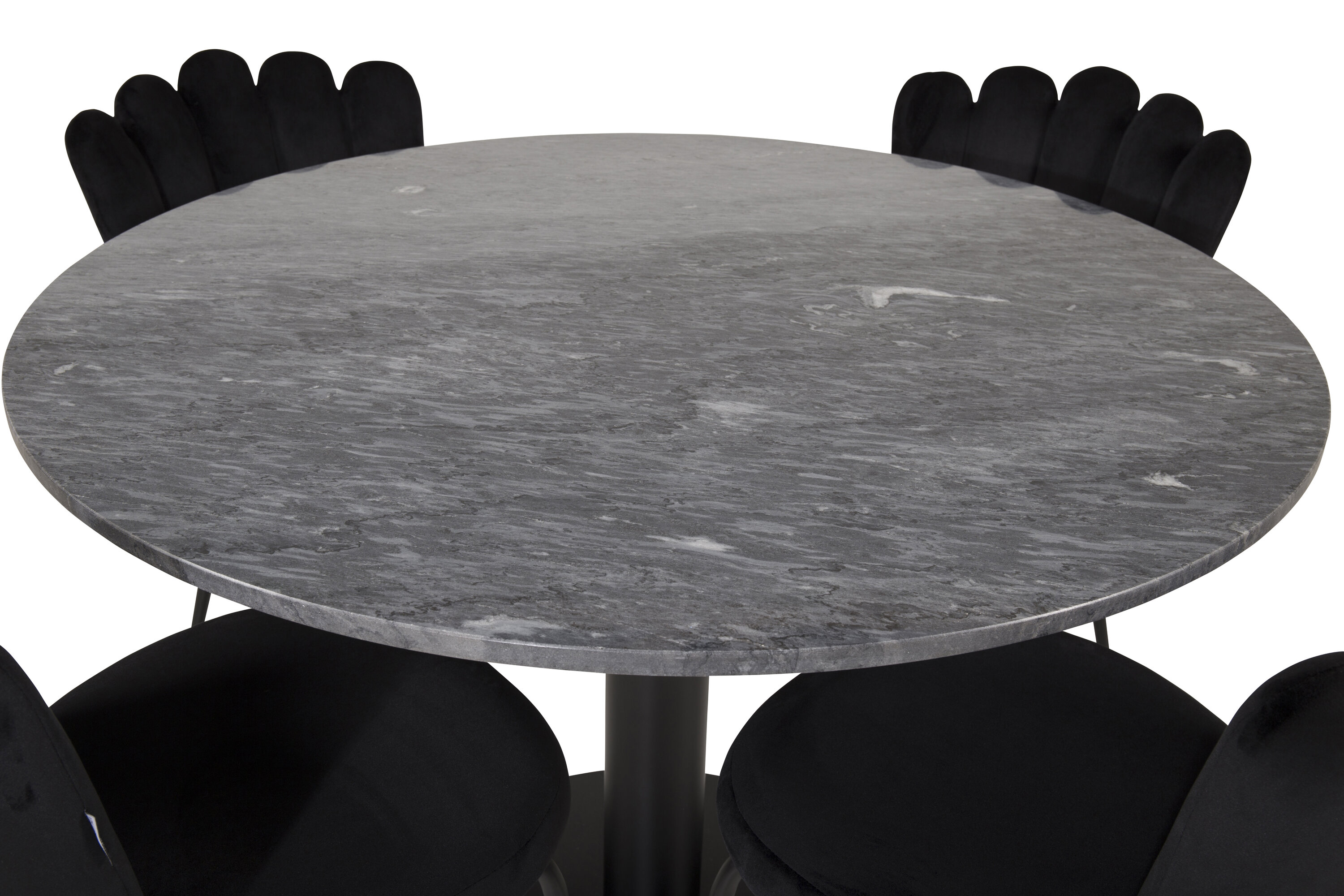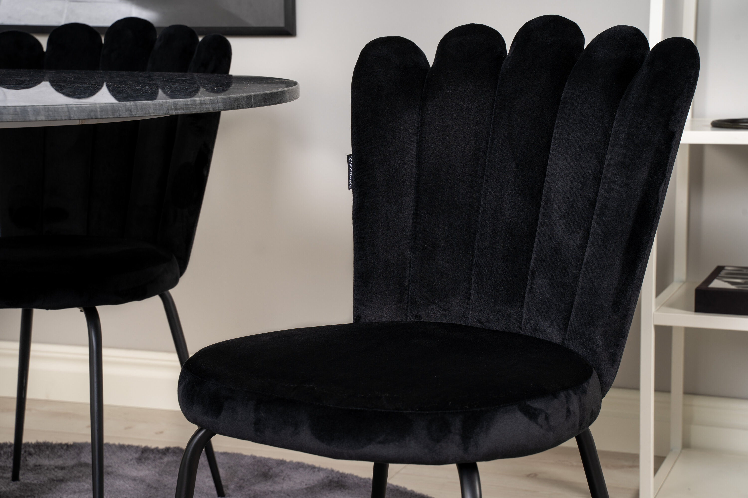 Moodsa ja stiilse disainiga toidugrupp. Söögilaud Estelle ja dekoratiivse seljatoega söögitoolid Limhamn sobivad ideaalselt kodu südamesse, mis sobib tõenäoliselt sama hästi teie vajadustega kui ka teie muu sisustusega.