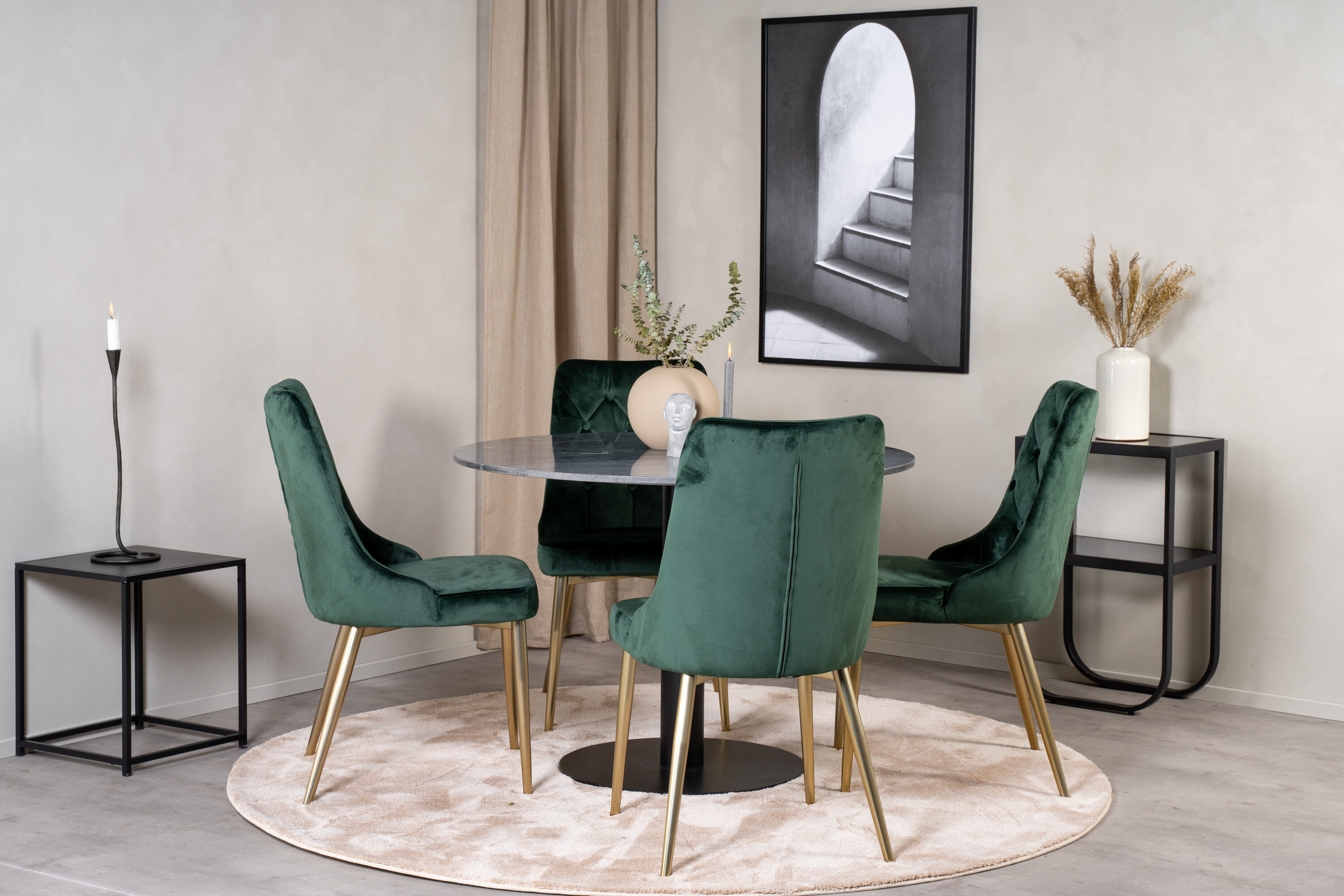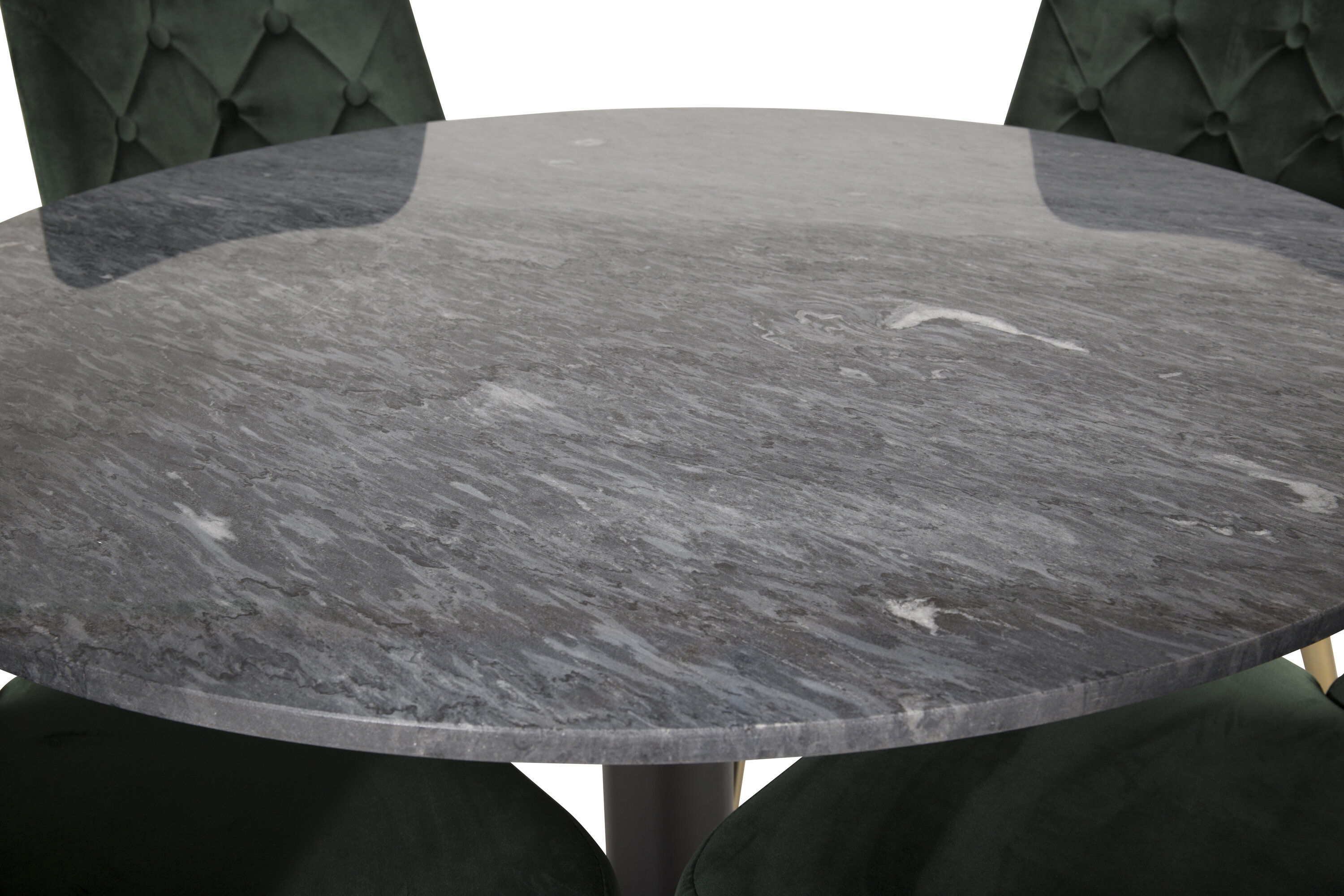 Siin on elegantne marmorist söögilaud Estelle sarjas kombineeritud Velvet sarja luksuslike toolidega.