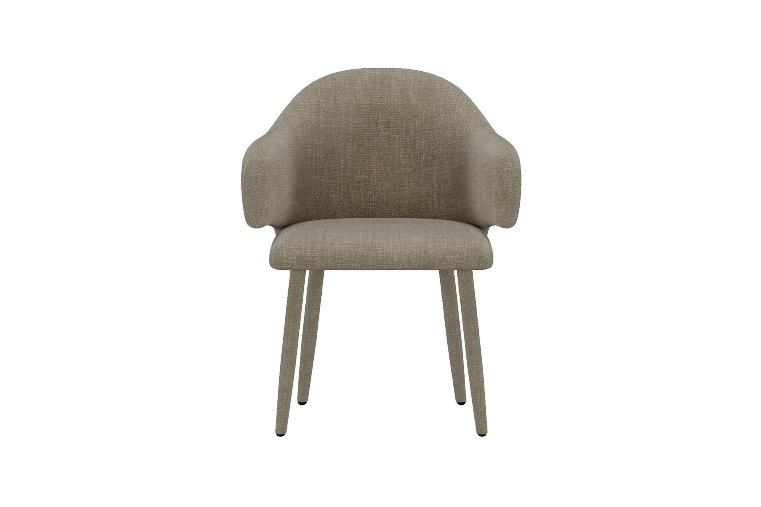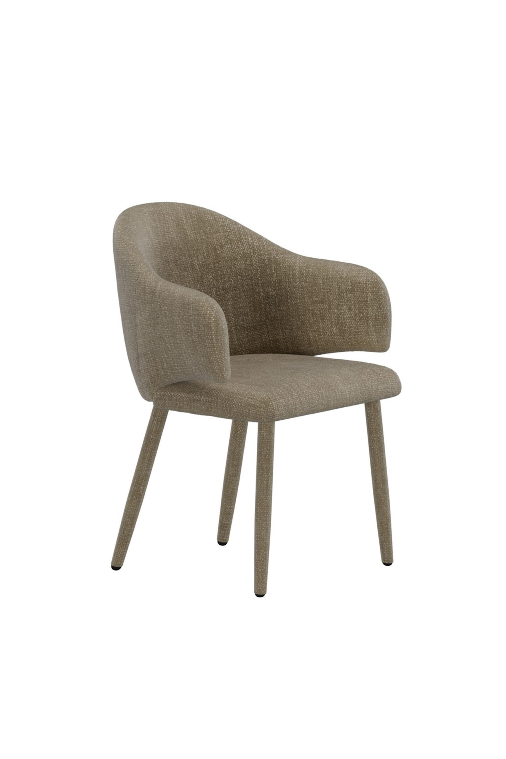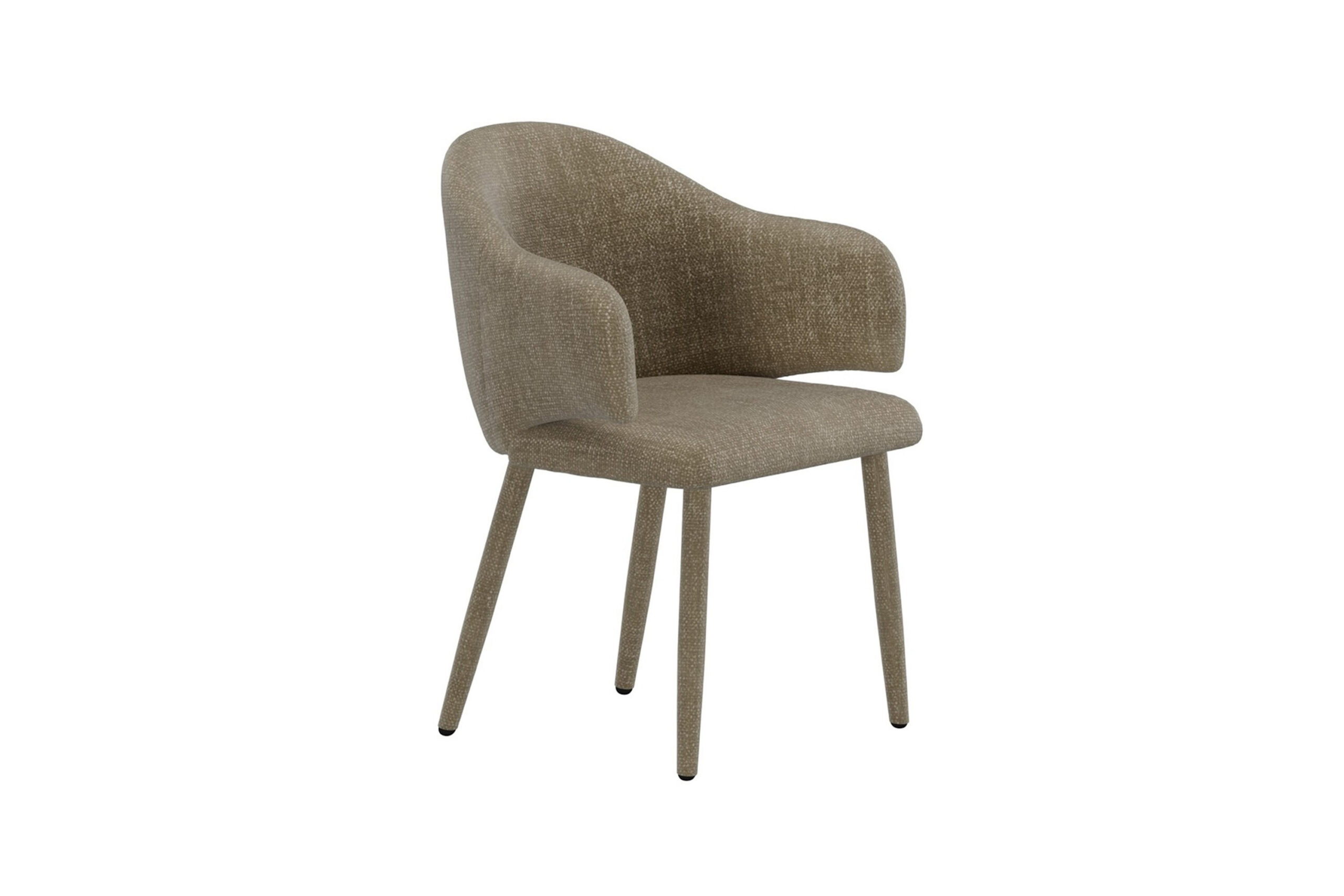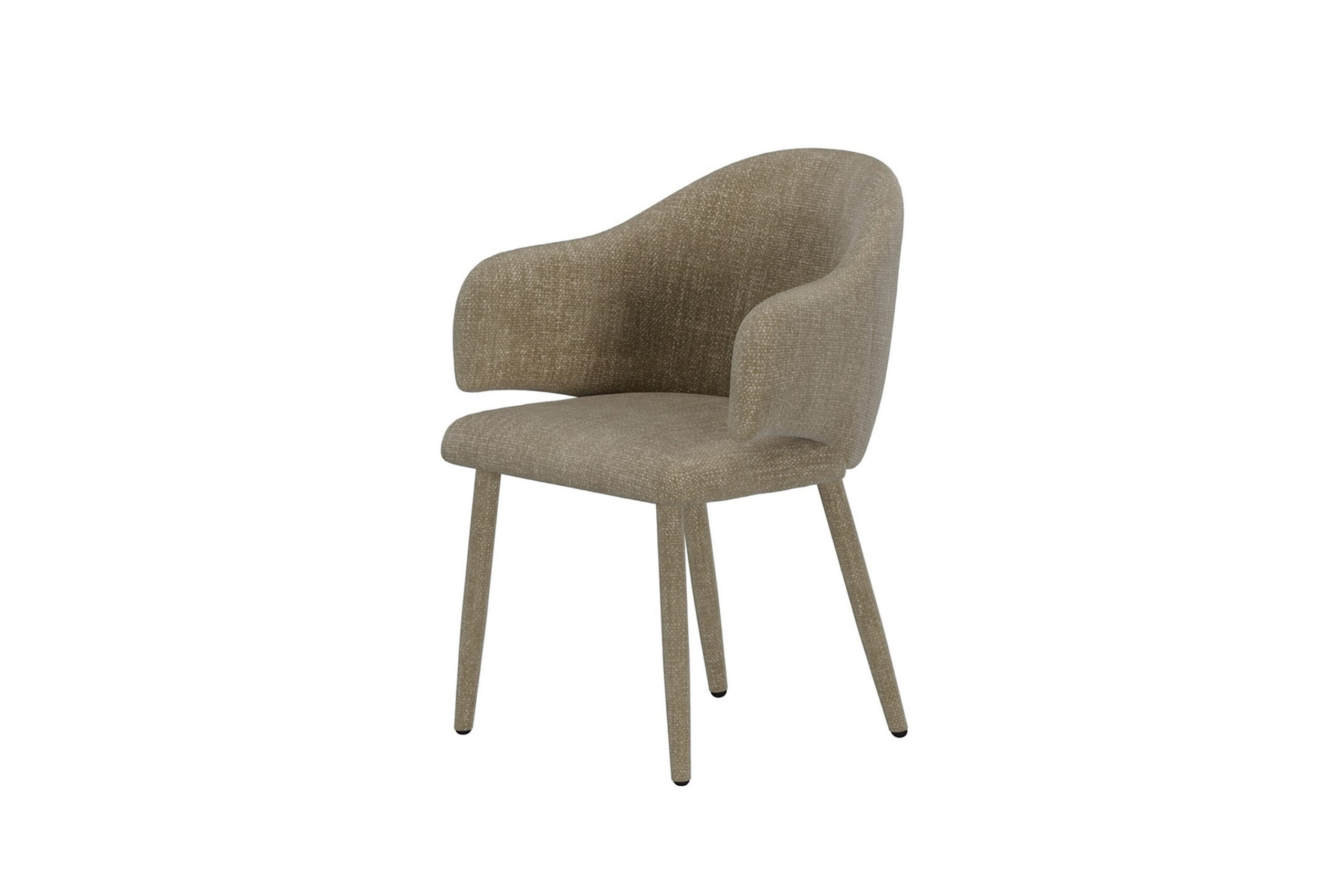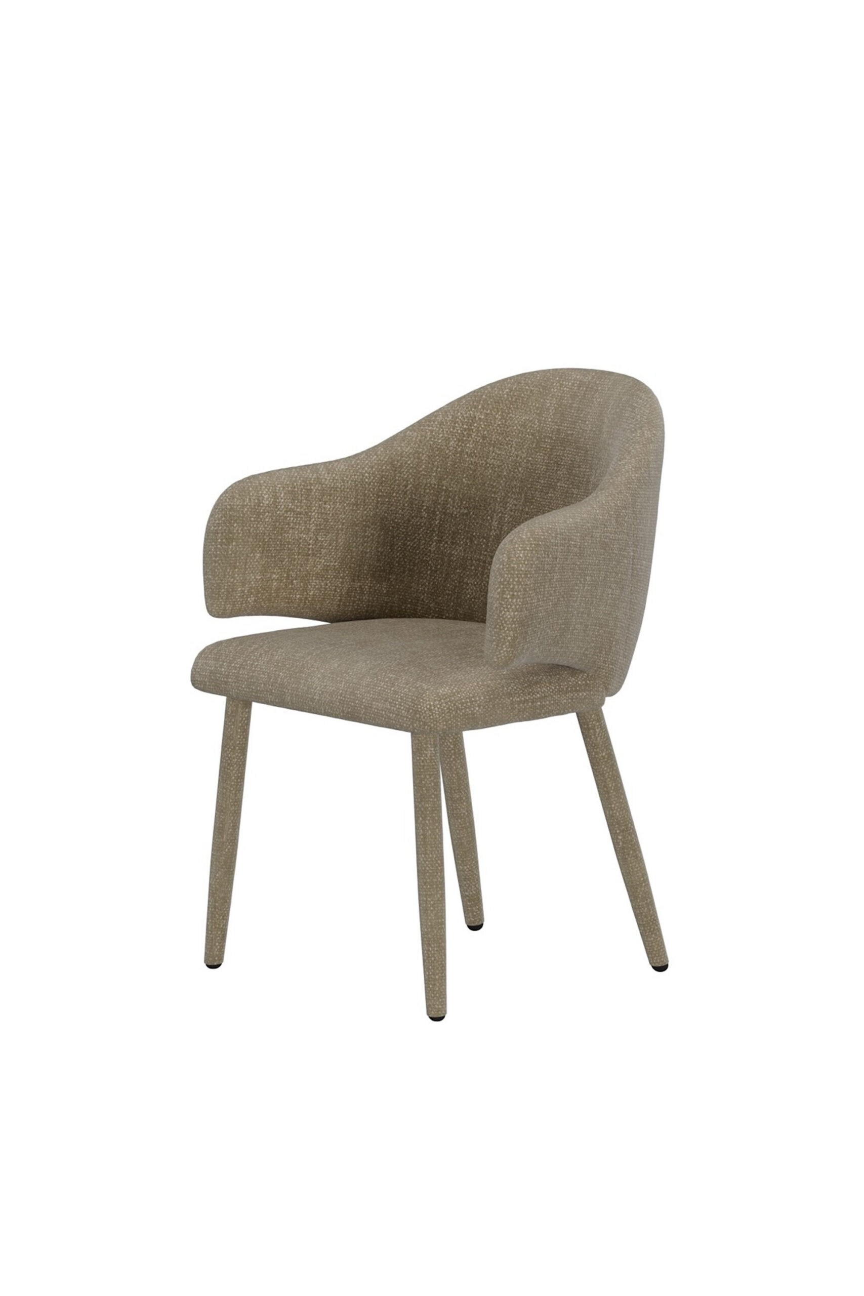 Evelin on pehmete vormide ja beeži sametpolstriga elegantne söögitool, mis jätab sooja ja eksklusiivse mulje. Ümar seljatugi ja ümbritsevad käetoed muudavad tooli nii mugavaks kui ka kutsuvaks.