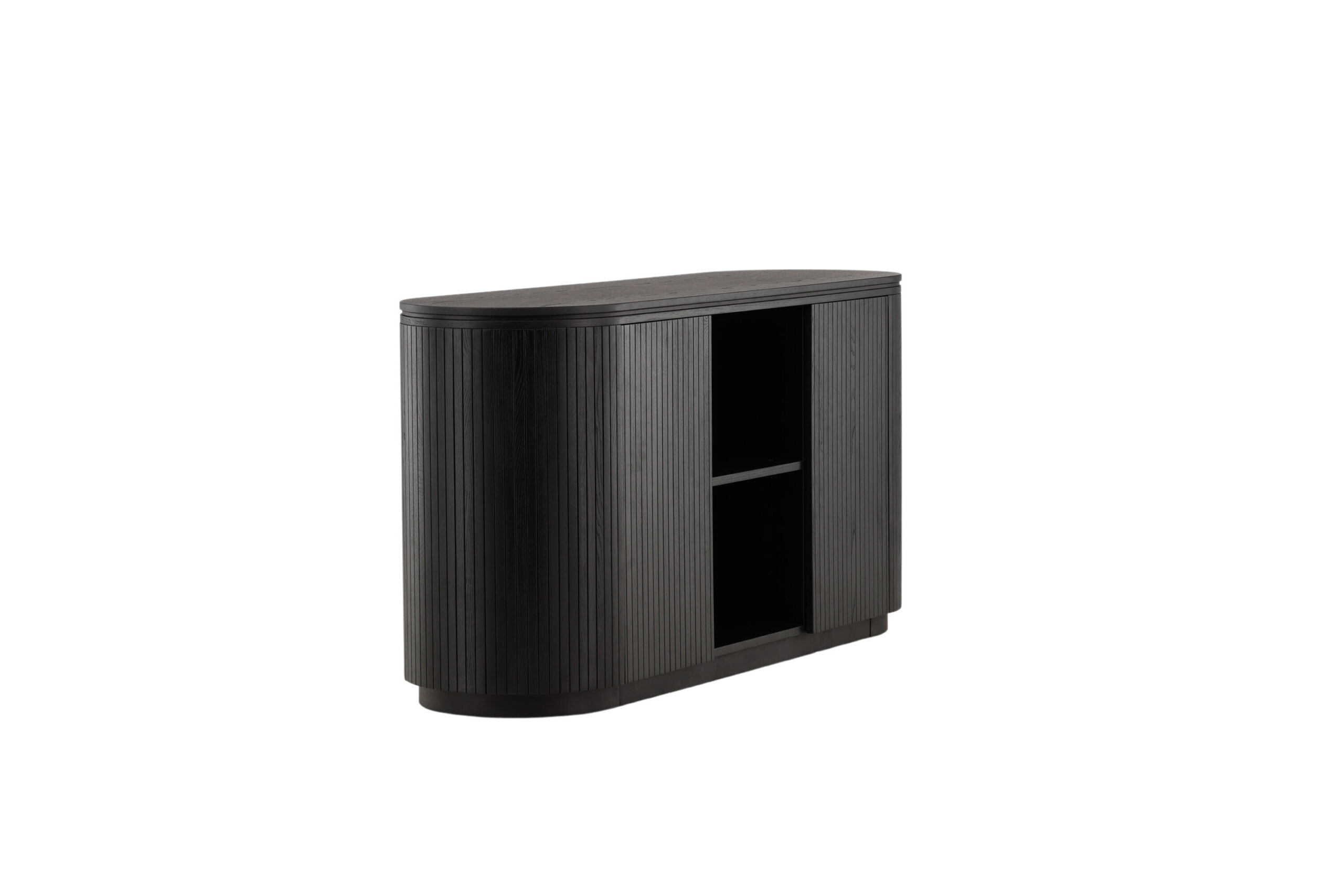 Ovaalne reljeefne kapp, mis võimaldab nii nähtavat kui ka peidetud hoiustamist! See Fjällbacka seeria puukindel kapp kuulub tuulekollektsiooni ja sellel on sihvakas skandinaavialik disain, mis tõmbab pilku! Valmistatud mustast spooniga tammest ja sellel on kapid peidetud hoiustamiseks ja kaks avatud riiulit, mis sobivad suurepäraselt mõne kauni sisustusdetaili või väikese küünla jaoks. Tõstke oma kodu stiili taset trendikindla hoiukapiga, mis püsib üle aja!