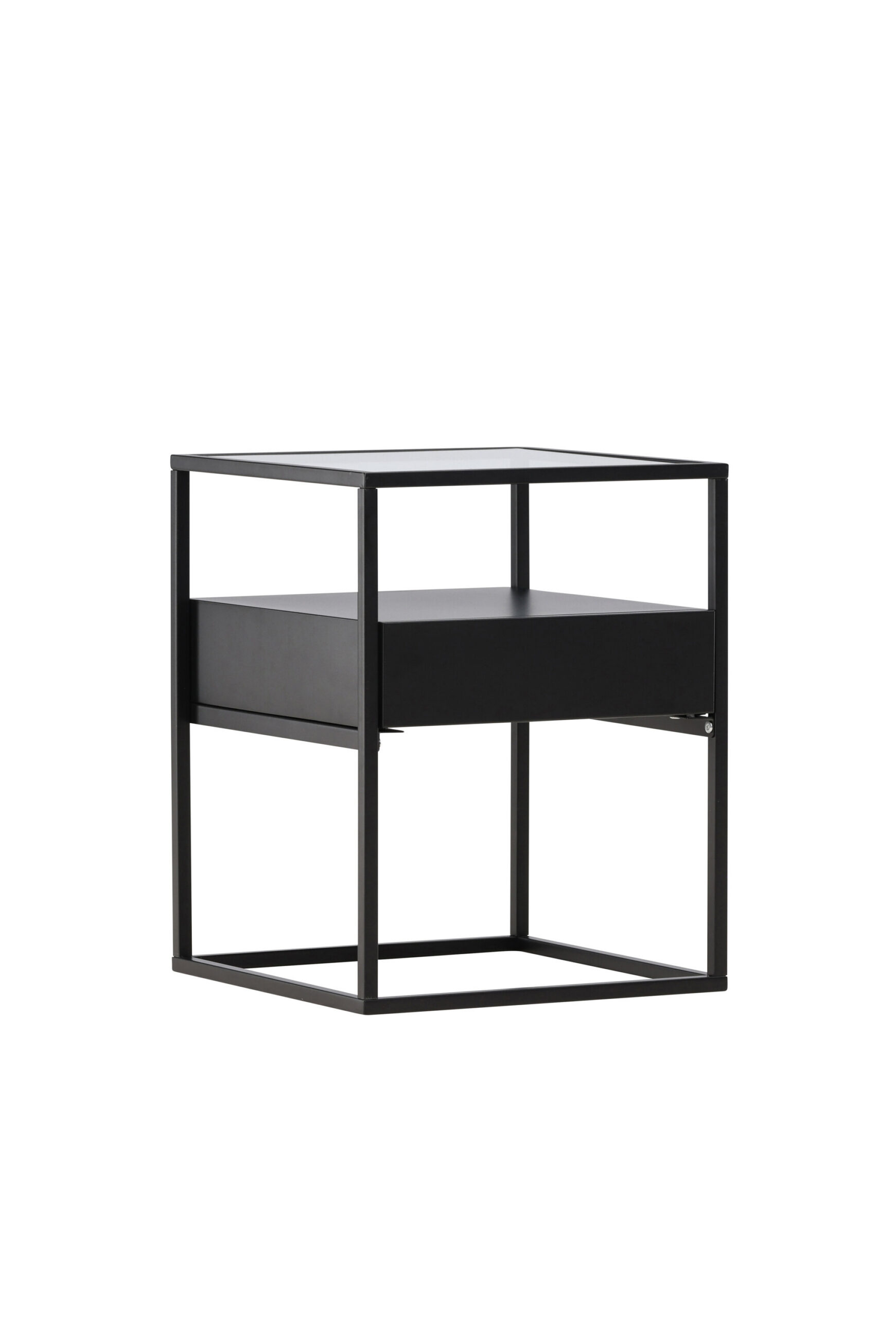 Sellel mustal külglaual on klaasplaat ja mustast terasest raam. Mugavaks hoiustamiseks on see külglaud varustatud ka diskreetse sahtli ja riiulitega, mis võimaldavad nii peidetud kui ka nähtavaid panipaiku. Ärge kunagi enam segadust – hoidke oma asjad korras ja kaunistage neid kauni küünlaaluse või lemmikraamatuga isikliku ja hubase puudutuse saamiseks.
