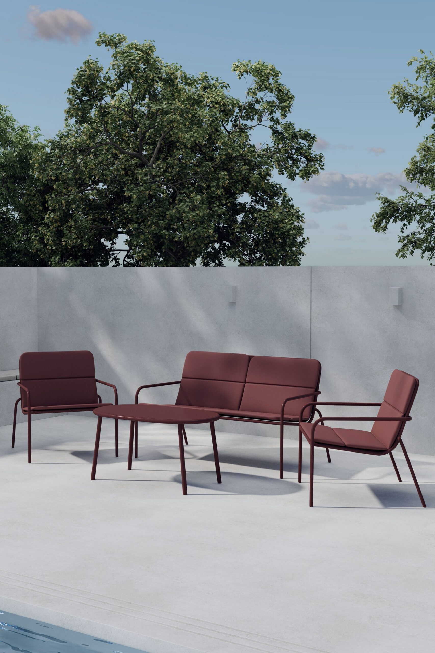 Diivanikomplekt Fourni on kaasaegne ja klanitud sügavas Burgundia toonis mööblikomplekt, mis annab terrassile elegantse ja ainulaadse iseloomu. Komplekt koosneb samas toonis diivanist, kahest tugitoolist ja kokkusobivast lauast, luues ühtse ja harmoonilise terviku. Mugavad pehmete patjadega istmed kutsuvad teid jääma pikkadeks hetkedeks, olgu selleks siis kohvi, vestluse või õdusate õhtute jaoks. Diivanikomplekt Fourni on ideaalne valik neile, kes soovivad ühendada mugavuse trendika ja ilmeka disainiga.