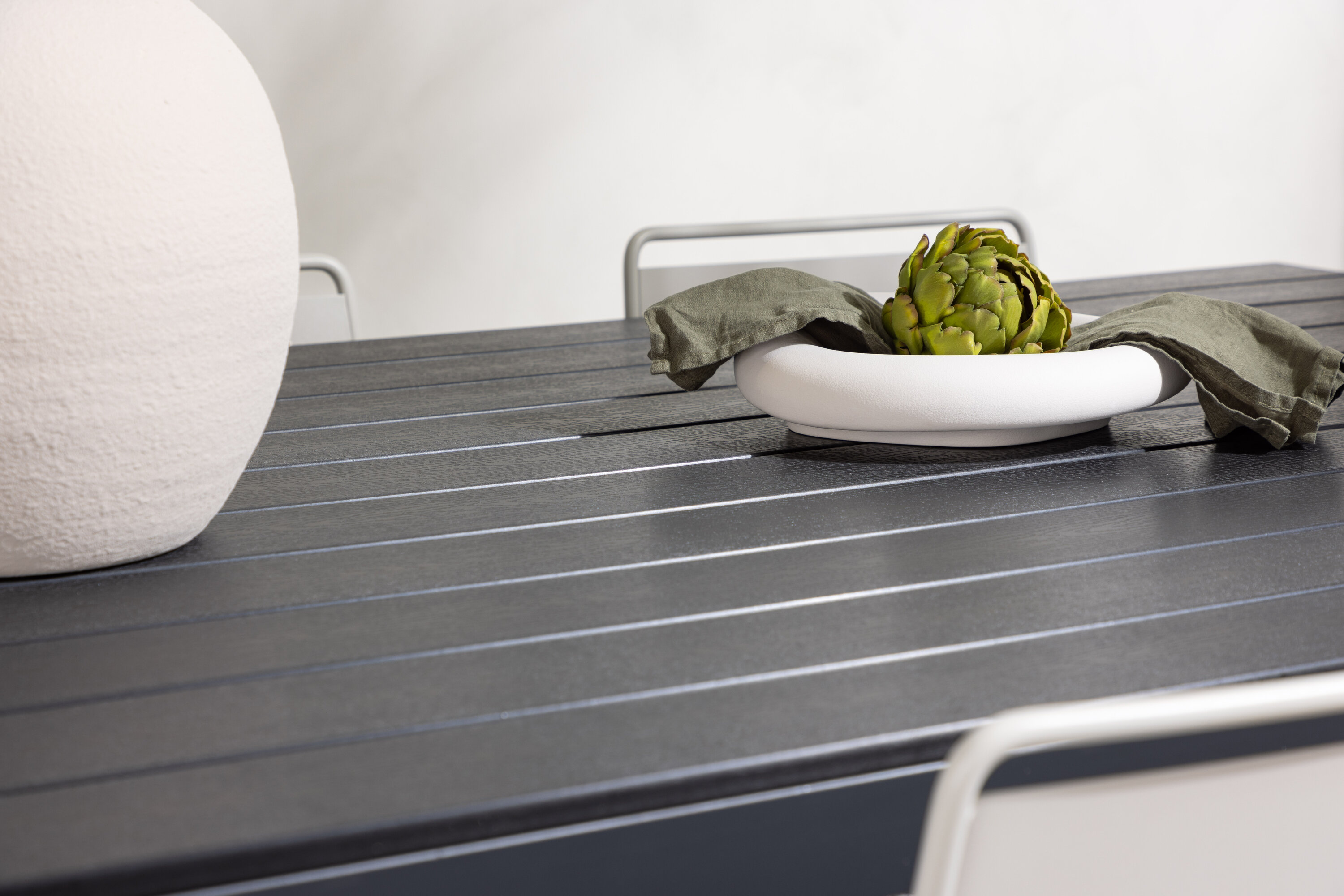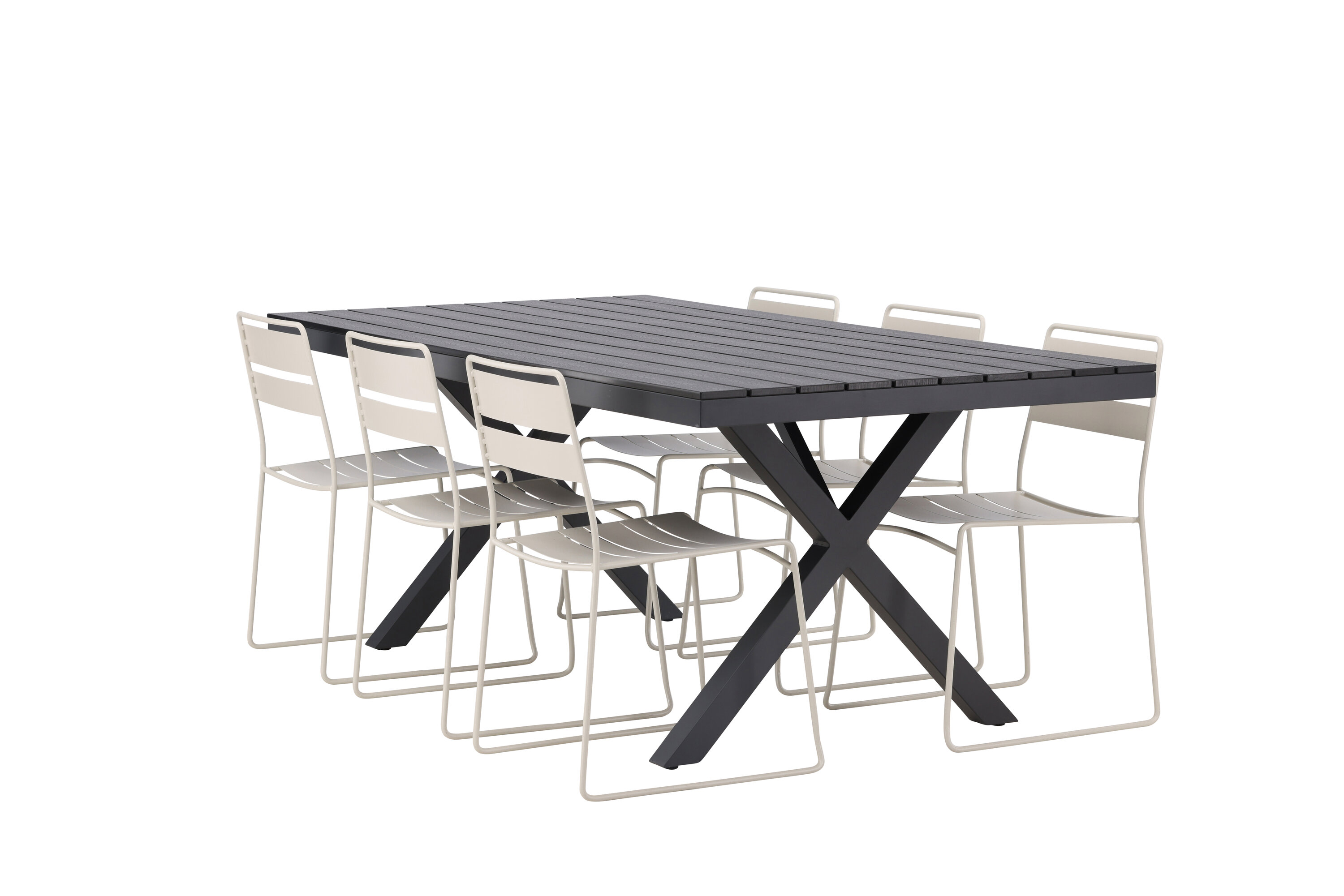 Stiilne kombinatsioon minimalismist ja jõulisest disainist! Meie ristkülikukujuline Garcia söögilaud on klassikalise disainiga, mille lauaplaat on mustast aintpuidust ja ristatud lauajalad mustast alumiiniumist. Siin võluvas kombinatsioonis Lina sarja beežide söögitoolidega. Tooli pehme beeži värv ja minimalistlik terasest disain jätab ajatu ja õhulise mulje. Sisusta terrassil või talveaeda ja kutsu lähedasi edaspidi imelistele einetele! Laua mõõdud: 200x100cm.