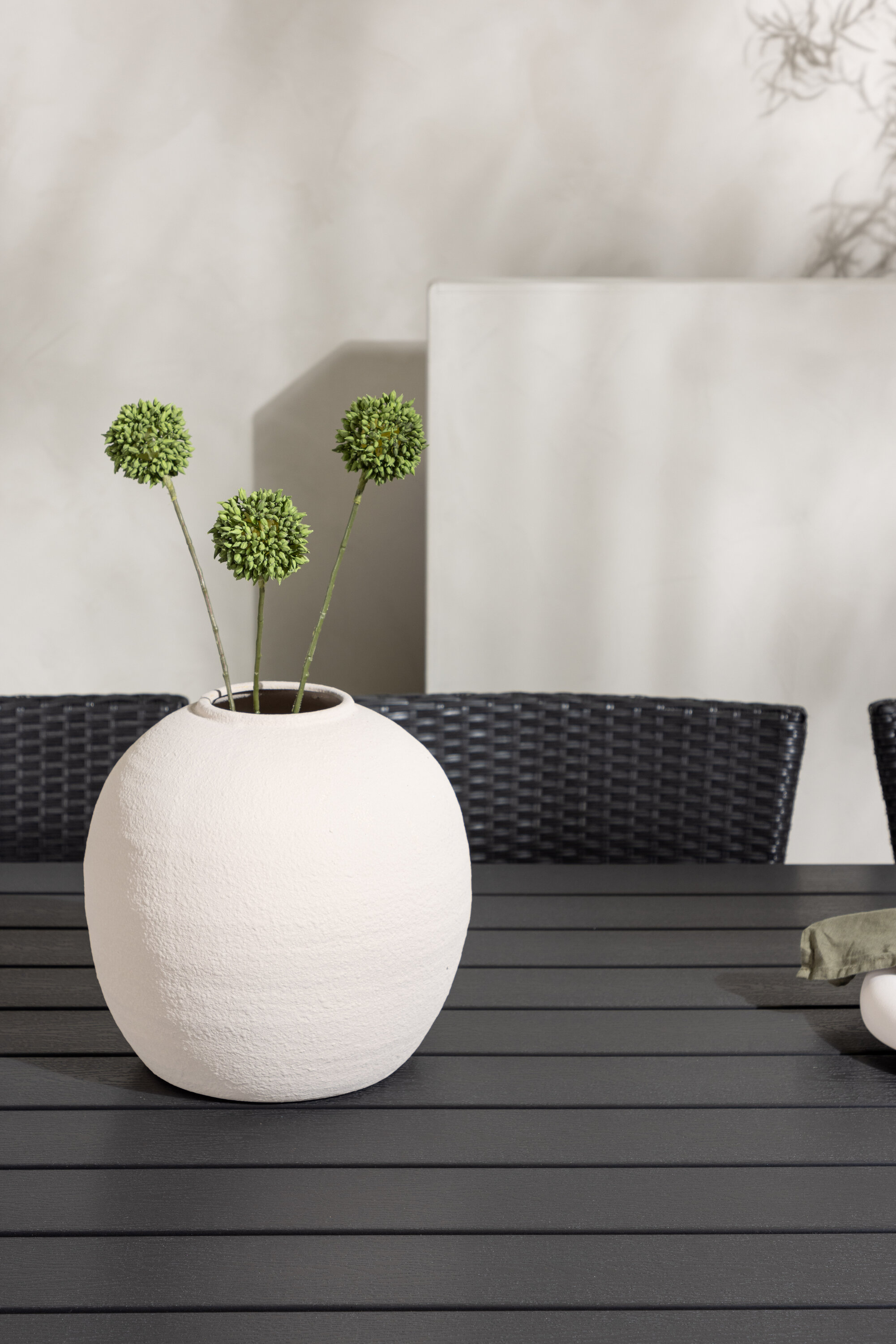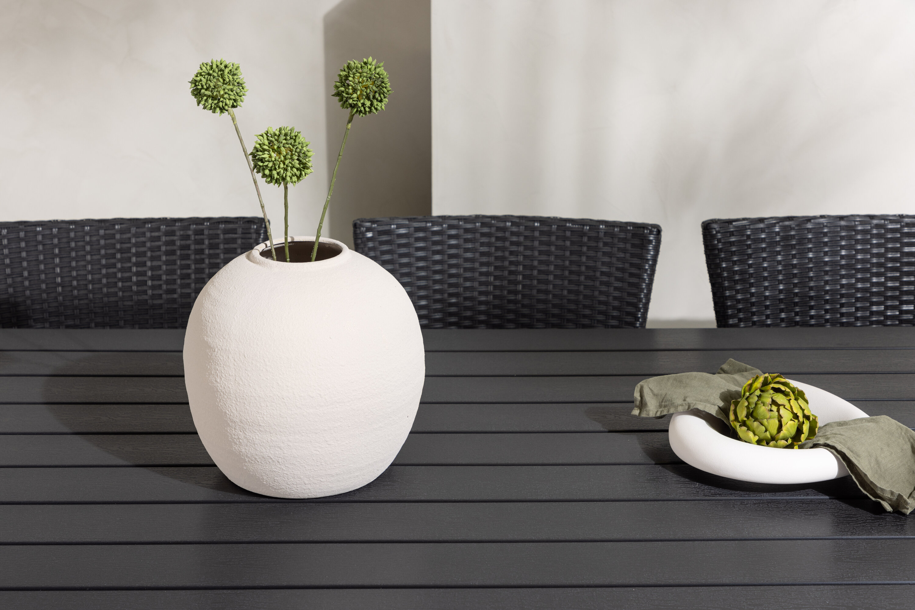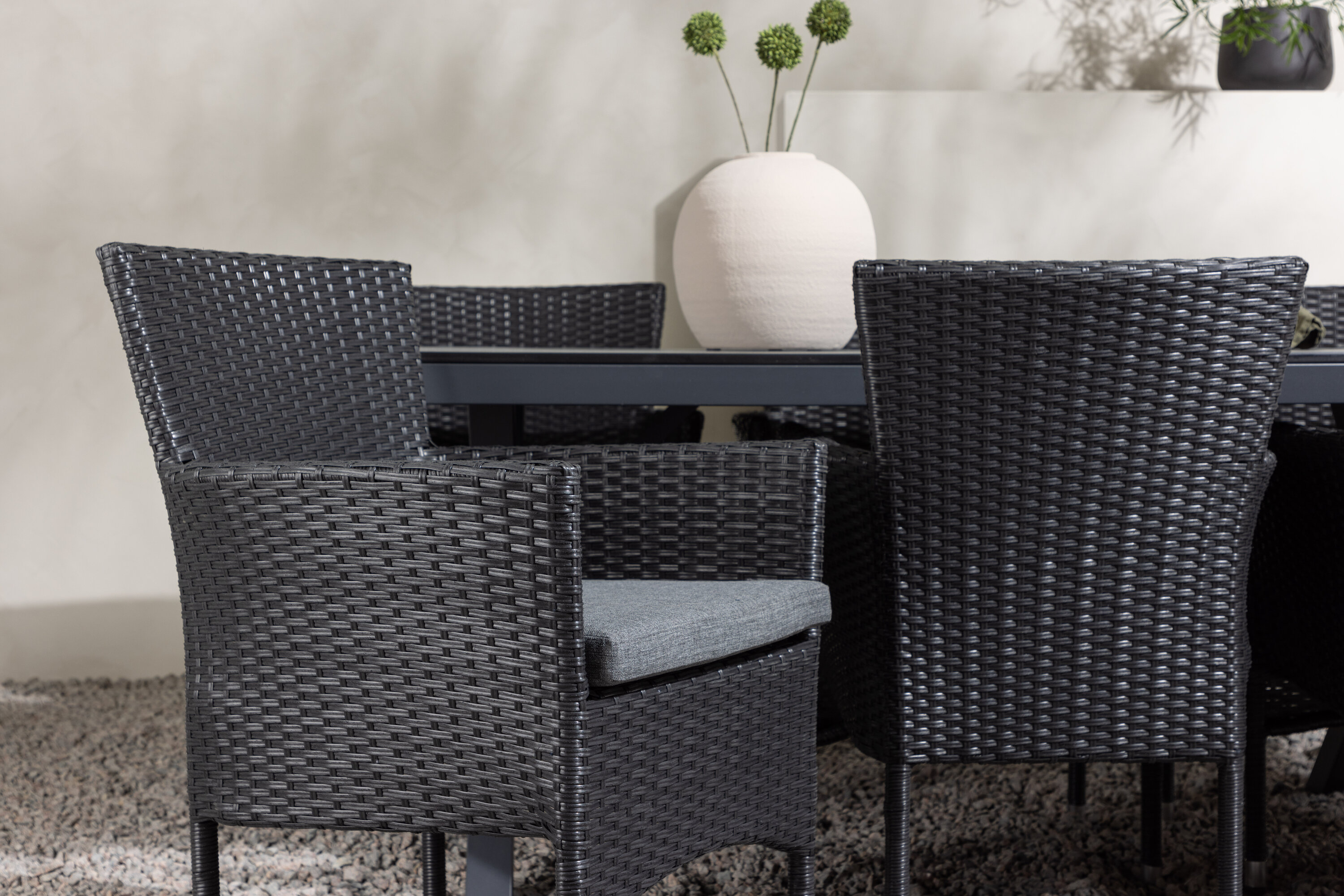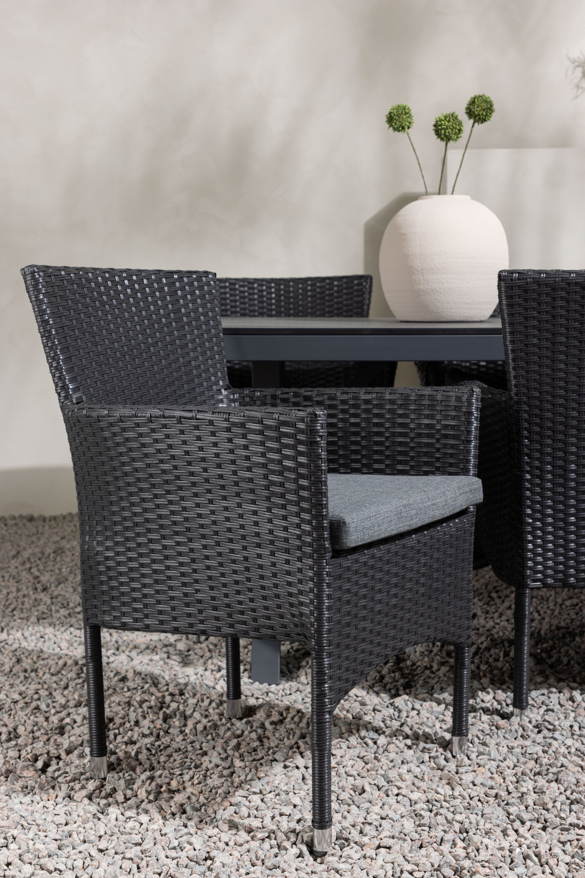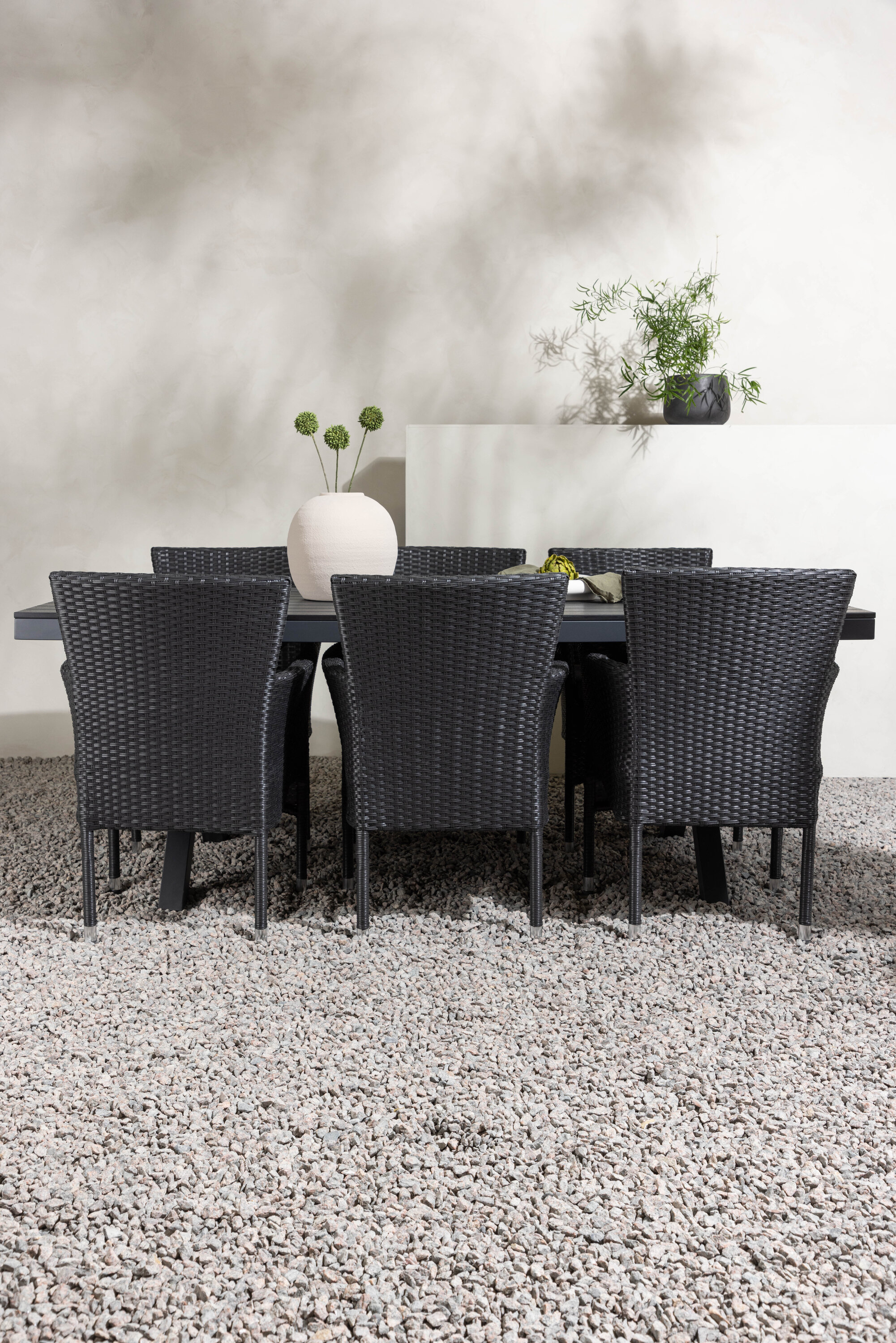 Selle söögigrupiga saate talveaeda või siseõue lihtsalt kaasaegselt ja mugavalt sisustada! Meie ristkülikukujuline Garcia söögilaud on klassikalise disainiga, mille lauaplaat on mustast aintpuidust ja ristatud lauajalad mustast alumiiniumist. Söögitoolid kuuluvad Malina sarja ja peavad kindlasti ajaproovile vastu. Toolil on alumiiniumraam ja see on kaetud põimitud musta kunstrotangiga. Kutsu oma sõpru tulevikus paljudele suurepärastele õuesöökidele! Laua mõõdud: 200x100cm.